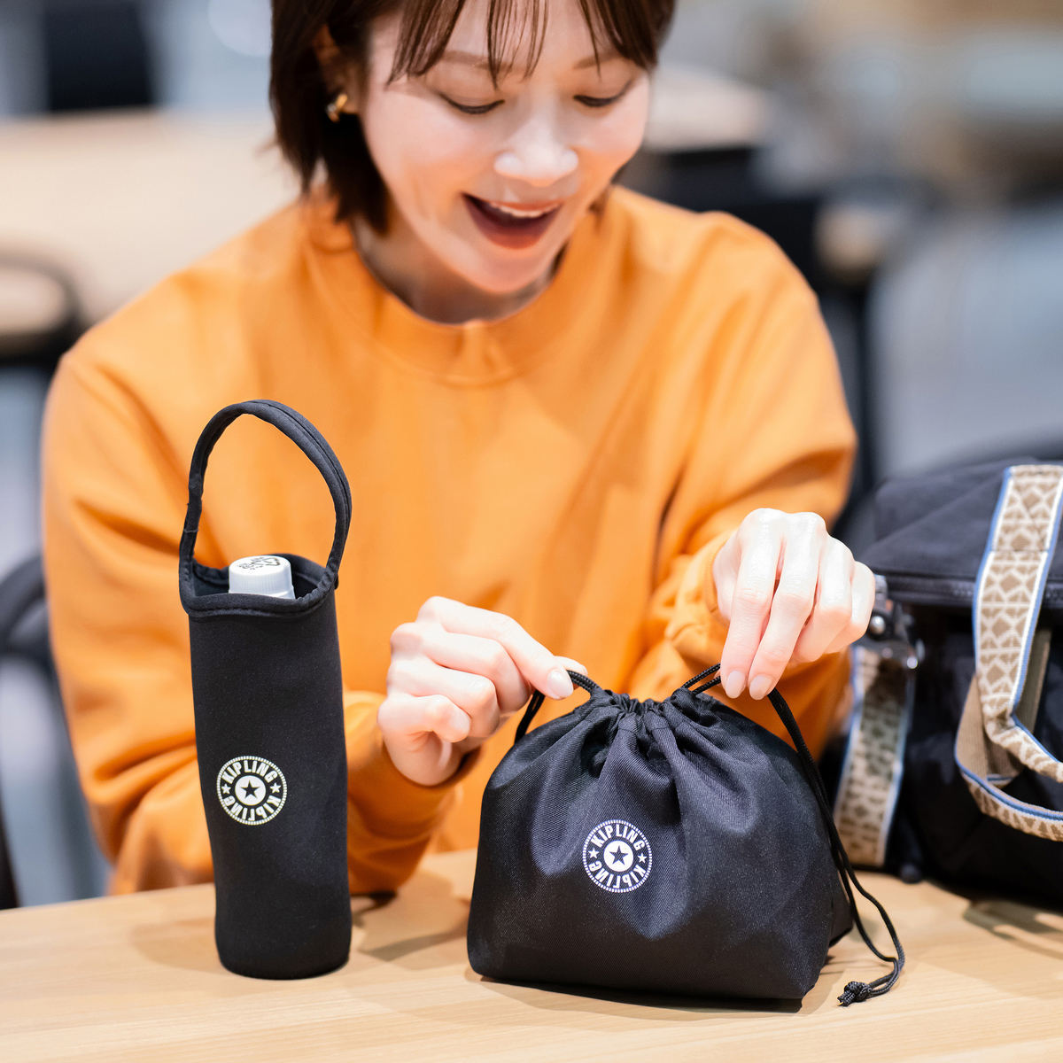 ボトルホルダーは500mlペットボトルや折り畳み傘の収納にぴったりです。巾着ポーチはメイク道具やお弁当入れなど多用途に活躍します