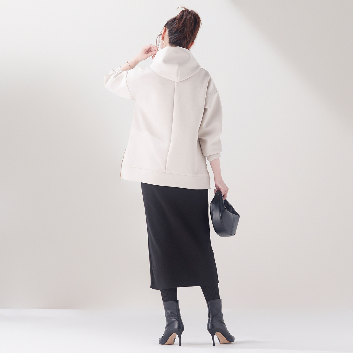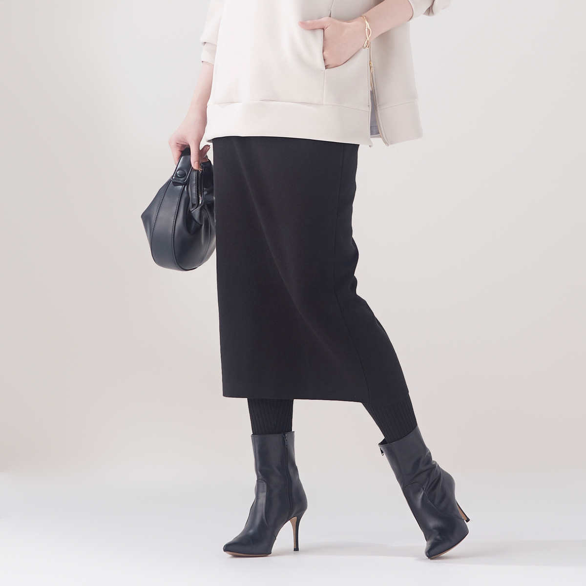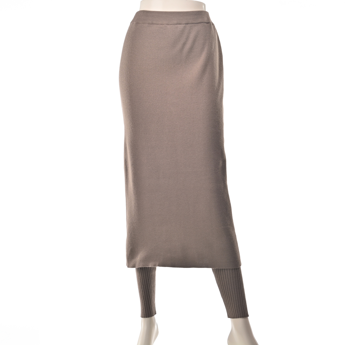レギンスをドッキングしたニットスカート。寒い季節に重宝するあったかボトムです