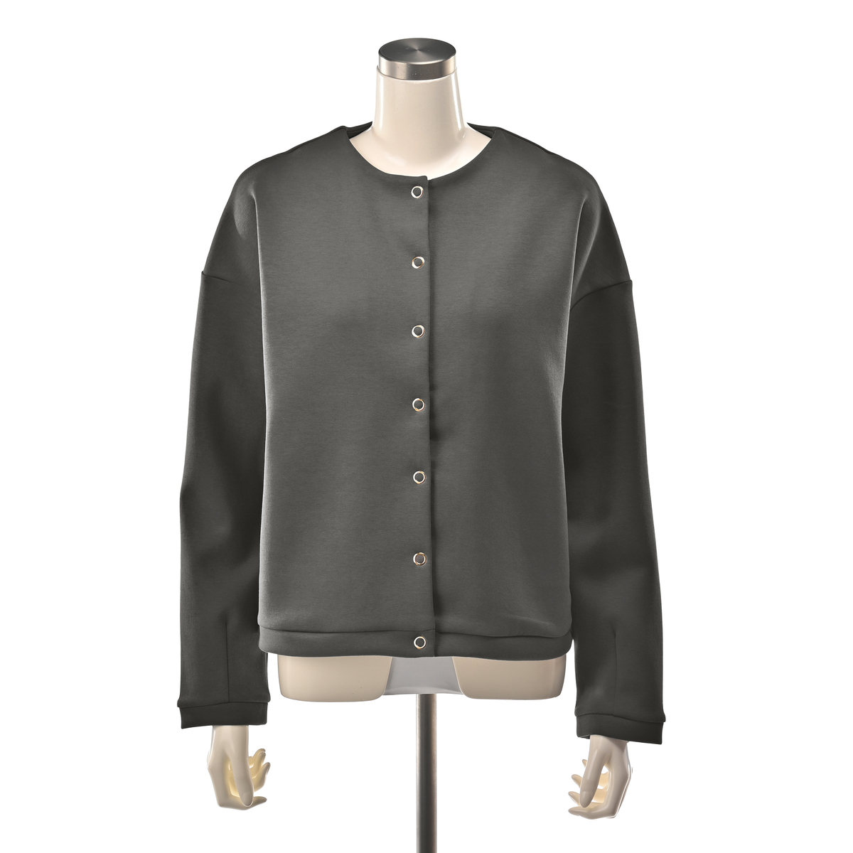 生地は適度な厚みがあり滑らかでとても気に入りました。縫製もよくデザインもシンプルで合わせやすいです。しかし残念ながらスナップボタンが何だか頼りないです。留まっているのかいないのか、パチンという手応えがありません。一瞬不良品かな、とも考えましたが、こんなもんです、と言われるかなと思い着払いには致しませんでした。