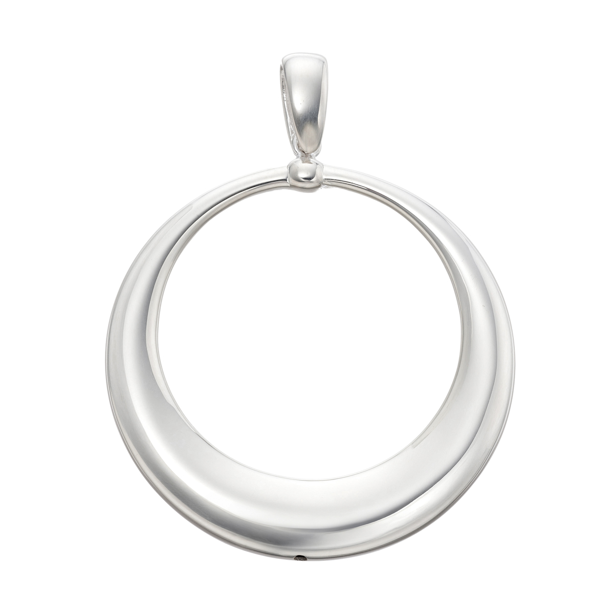 太陽を思わせるようなサークルのモチーフが印象的なペンダントヘッド。磨き上げられた鏡面が艶やかな煌めきを放ち、胸元を華やかに飾ります
