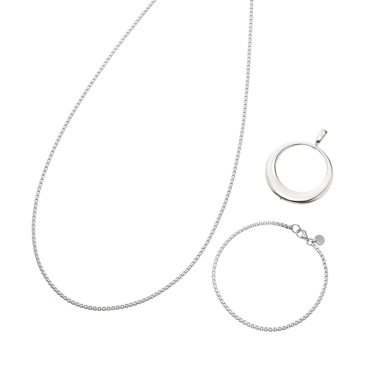 しなやかさが魅力のチェーンブレスレット。流れるような連続した煌めきが動きに合わせて揺れながら、お手元を美しく演出します。シルバー925を使ったシンプルなデザインです