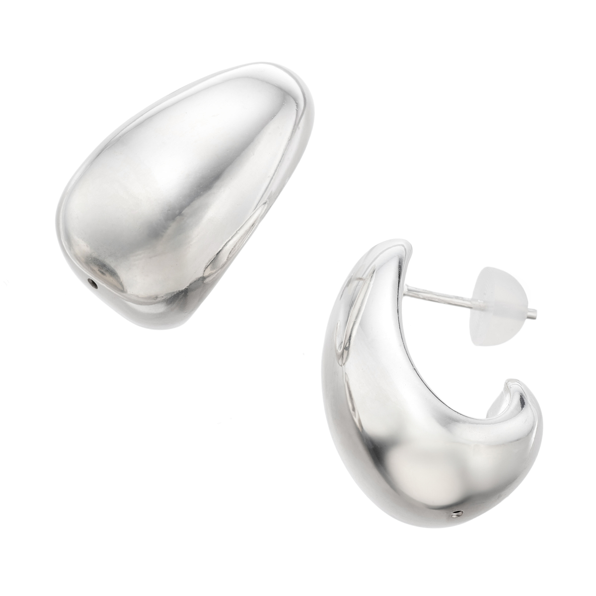 丸みを帯びたフォルムが印象的なピアス。磨き上げられた鏡面が艶やかに輝きます。シンプルなデザインで様々な装いに合わせやすく、耳元をスタイリッシュに彩ります