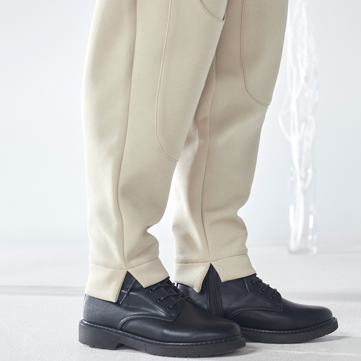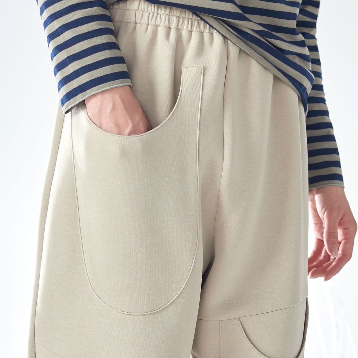 ポケットが目を惹くゆったりシルエットのパンツ。柔らかな綿混のオリジナルジャージ素材を使用しました。同素材のパーカーやプルオーバーとセットアップで楽しめます