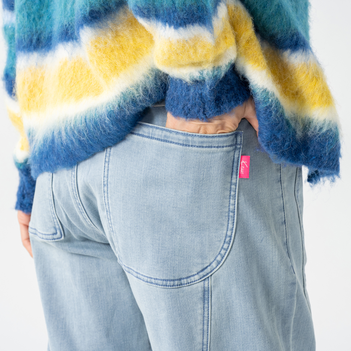 同色ステッチを施した、KiKKiらしいカジュアル感のあるデザイン。普段使いはもちろん、トップスを選ばずコーディネートしやすいのも魅力です