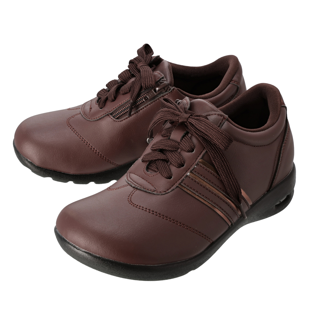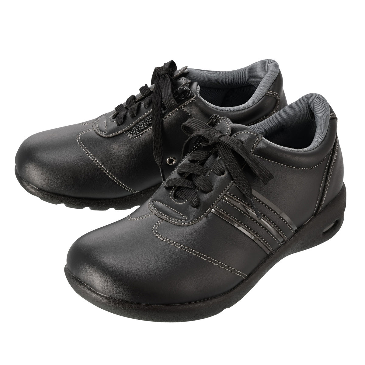 インソール表面に制菌加工生地を使用し、生地上での菌の繁殖を抑制。汗臭(アンモニア、酢酸、イソ吉草酸)に対する消臭機能もあります*。また、内側はファスナー付き。紐をほどかずに脱ぎ履きも楽々です