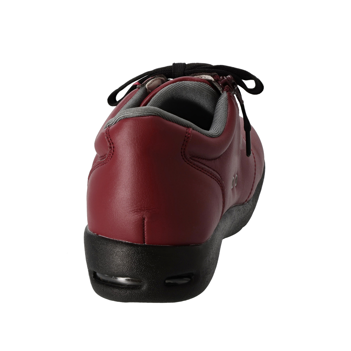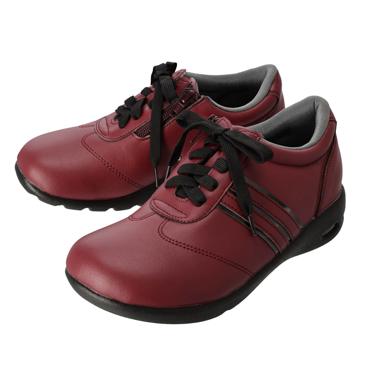 ソール底面のローリング構造で転がり方向をサポートし、ヒザと足首の進行方向を近づけようとすることで足運びがスムーズになり、ヒザのねじれ負担を軽減。内側重心設計のサポート形状は、着用時のO脚を補正することで、美脚効果も期待できます