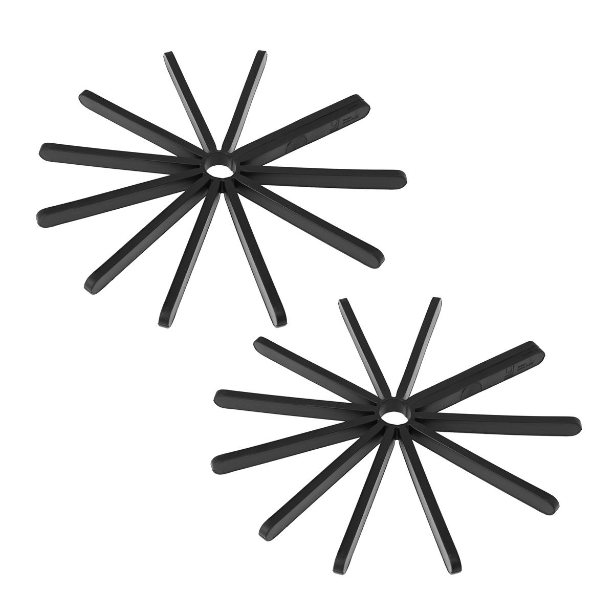コンパクトでスタイリッシュな鍋敷きです。ブラックカラーが際立ち、テーブルやキッチンに馴染みやすいシルエットです。使わない時は小さく折り畳めるので、省スペースで収納できます。埋め込まれたマグネットで円形をキープでき、2個セットで便利です