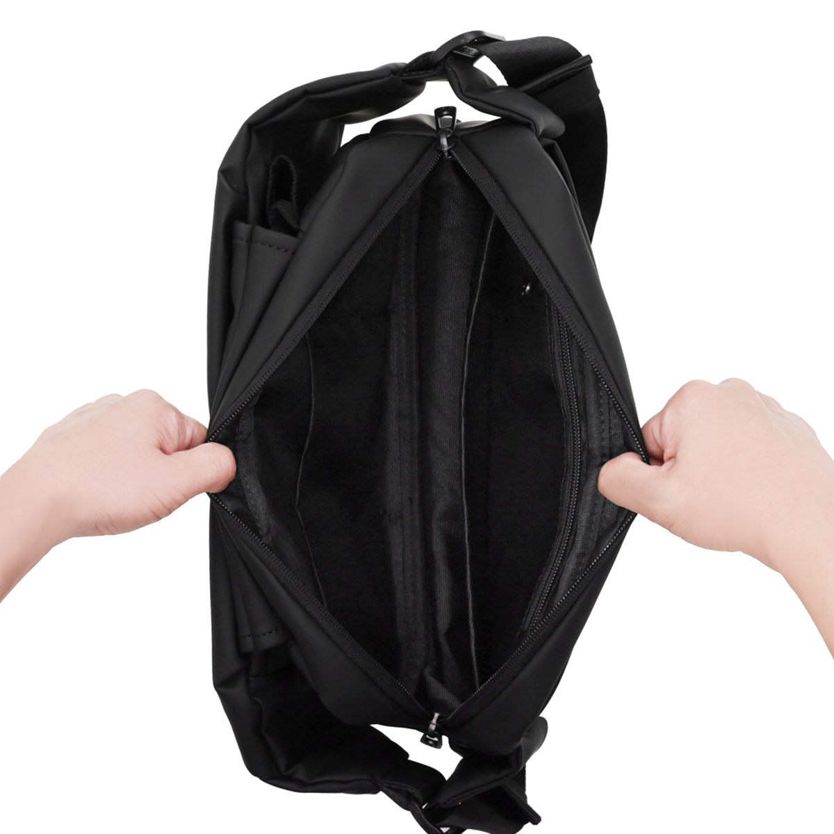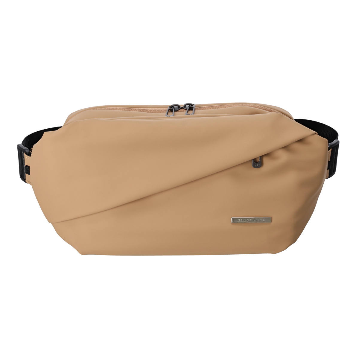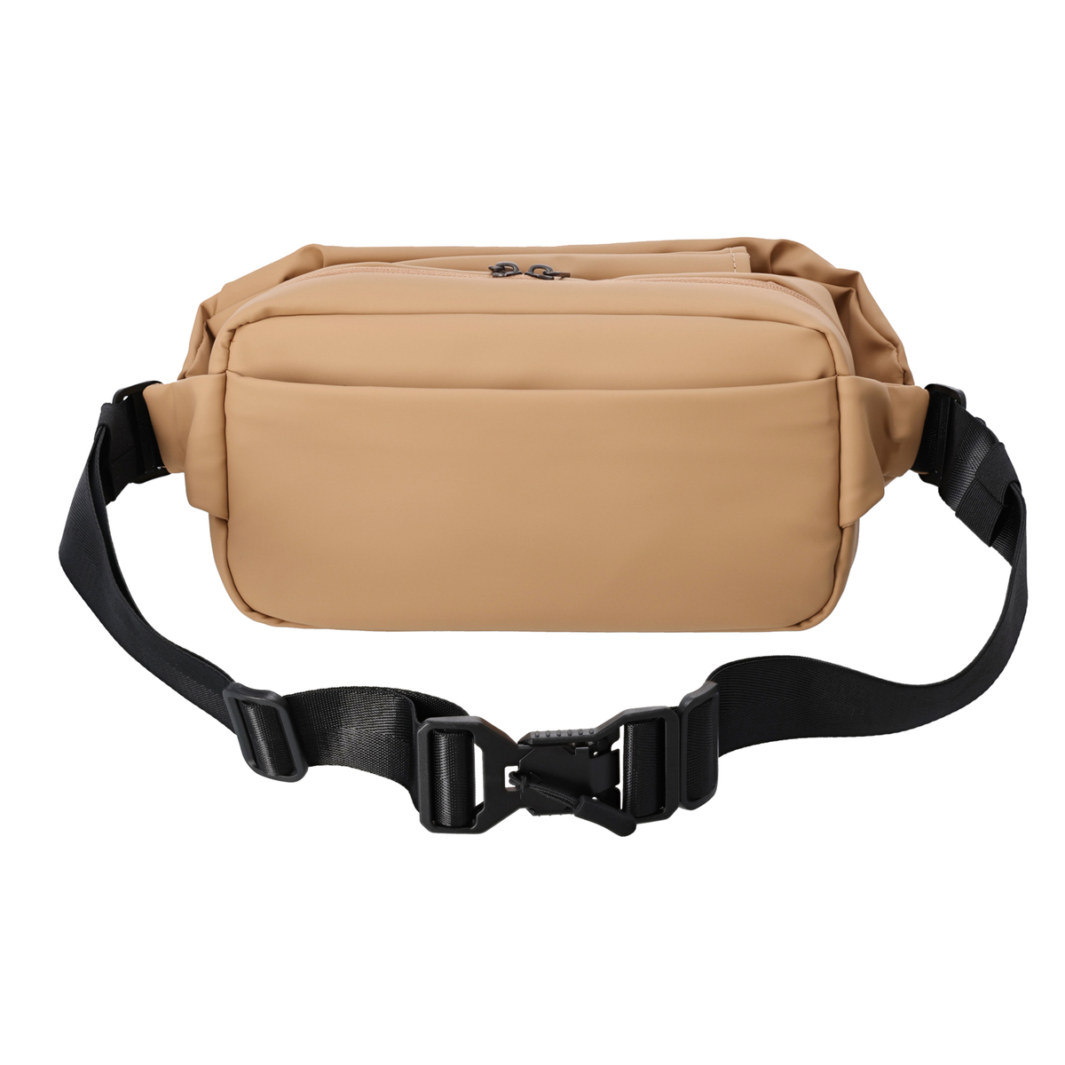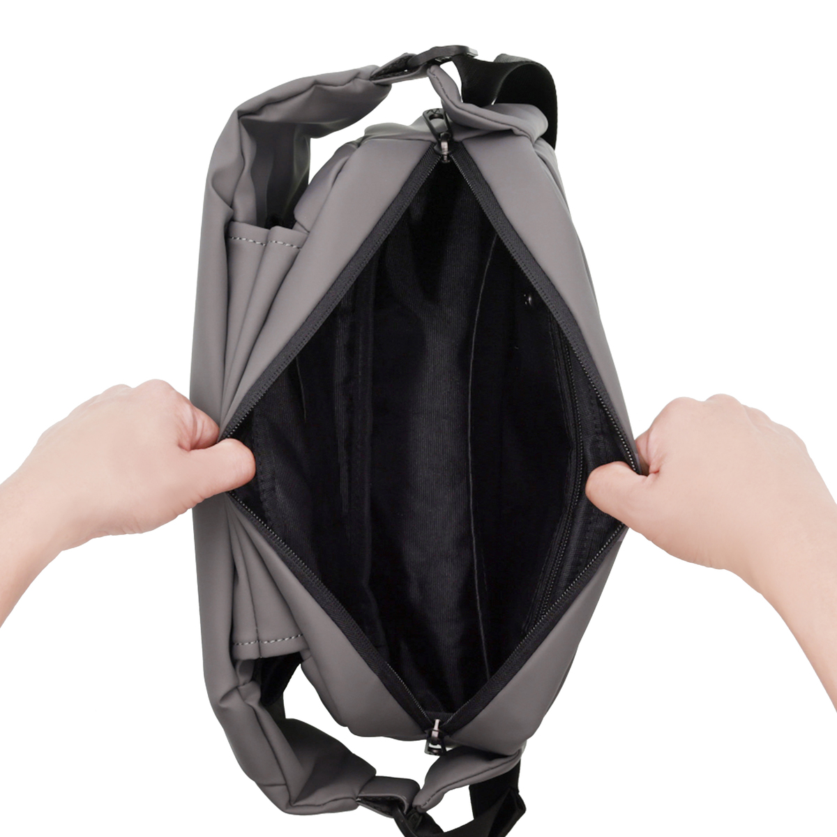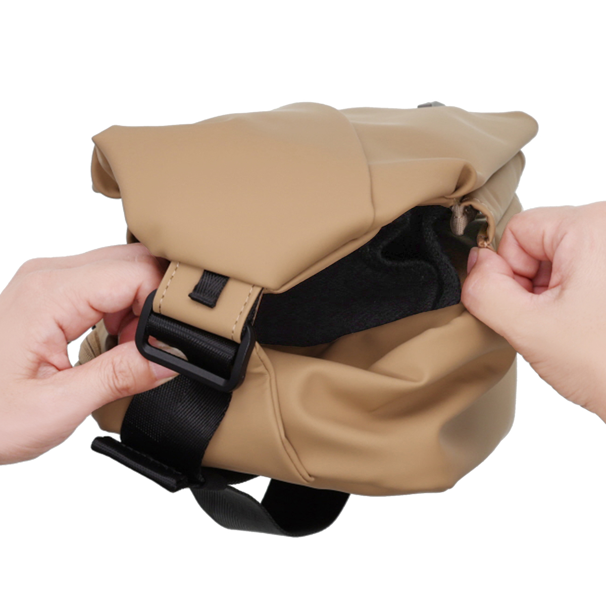 6つのポケットと5つの収納スペースですっきり整頓できるボディバッグ。ペットボトル3本分を収納でき、必要なものを持ち歩くのにちょうど良いサイズ(*1)。サイドクロス構造を採用したドリンクポケットが付いています