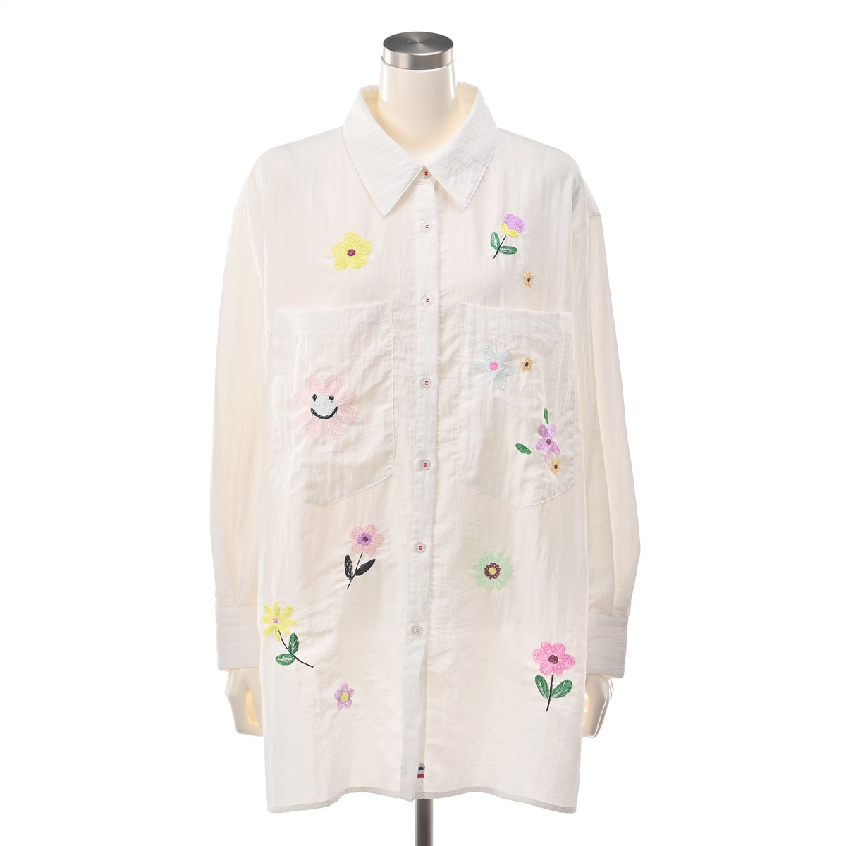 No. 746888 PERSONS フラワーエンブロイダリーロングシャツ