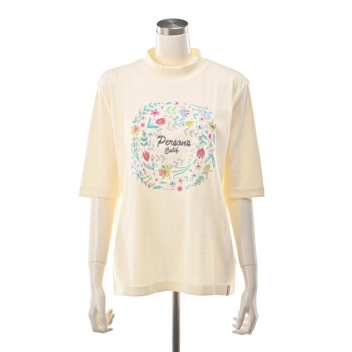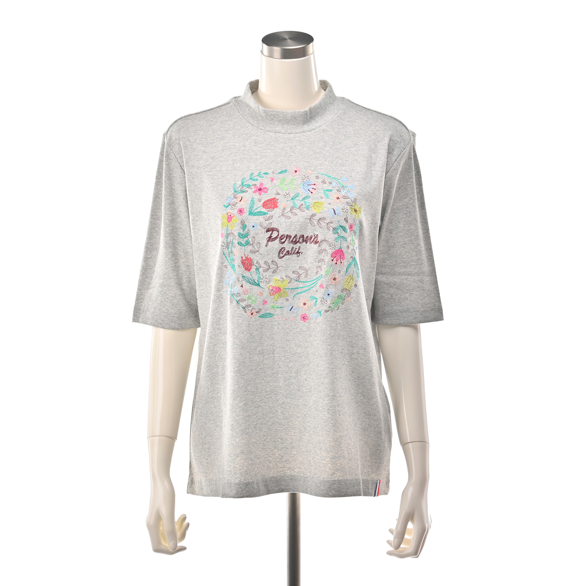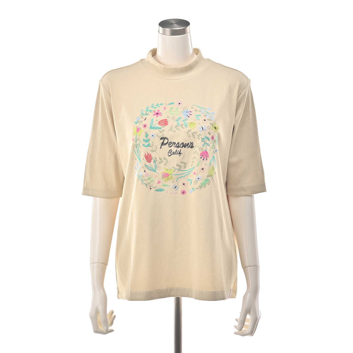 No. 746893 PERSONS フラワーリース刺繍モックネックTシャツ