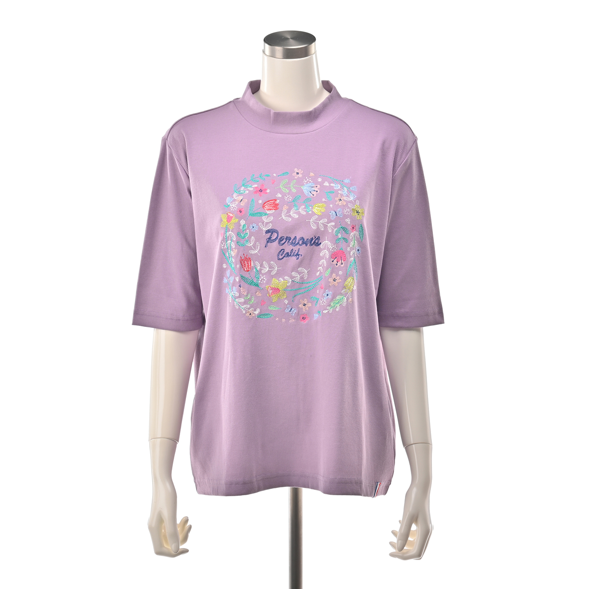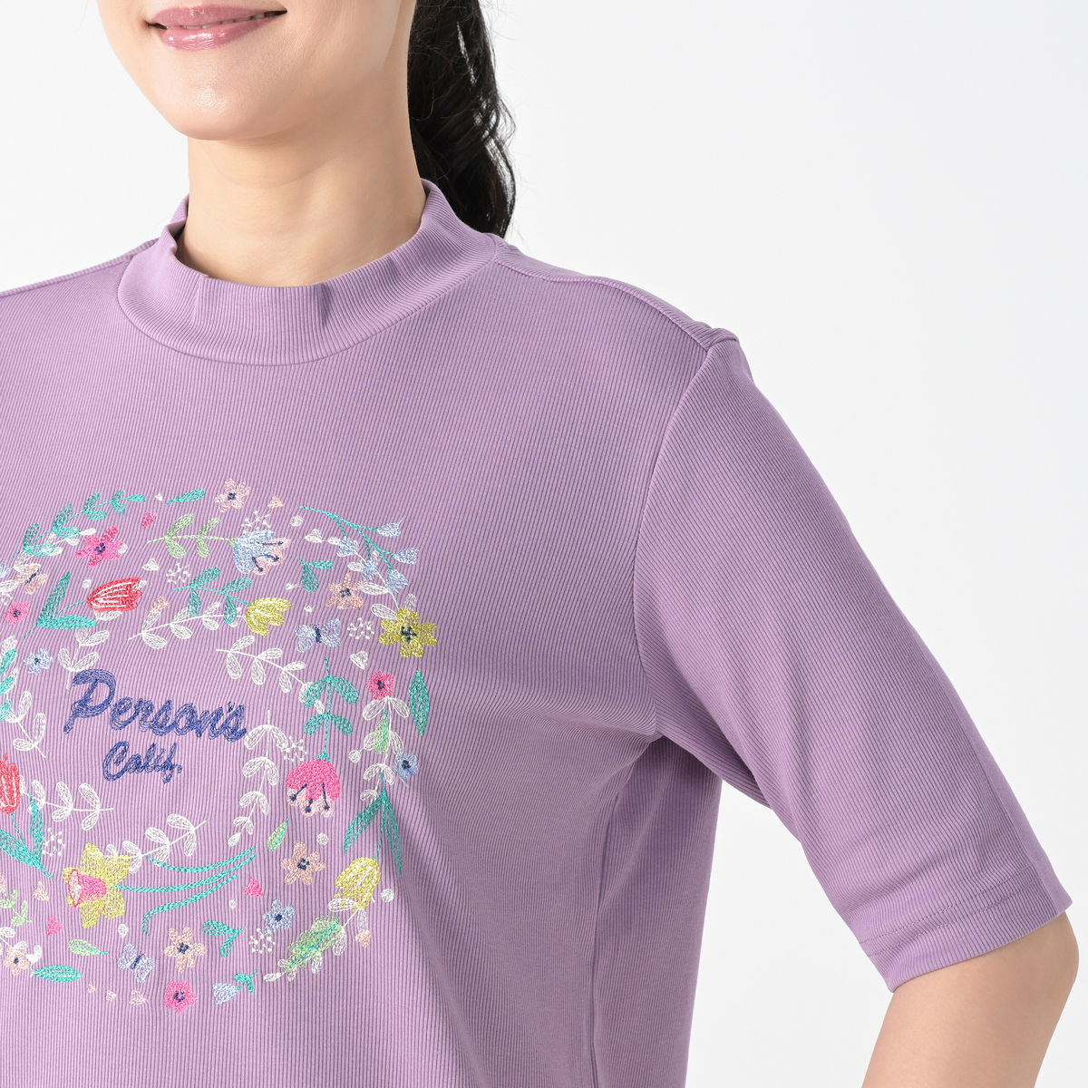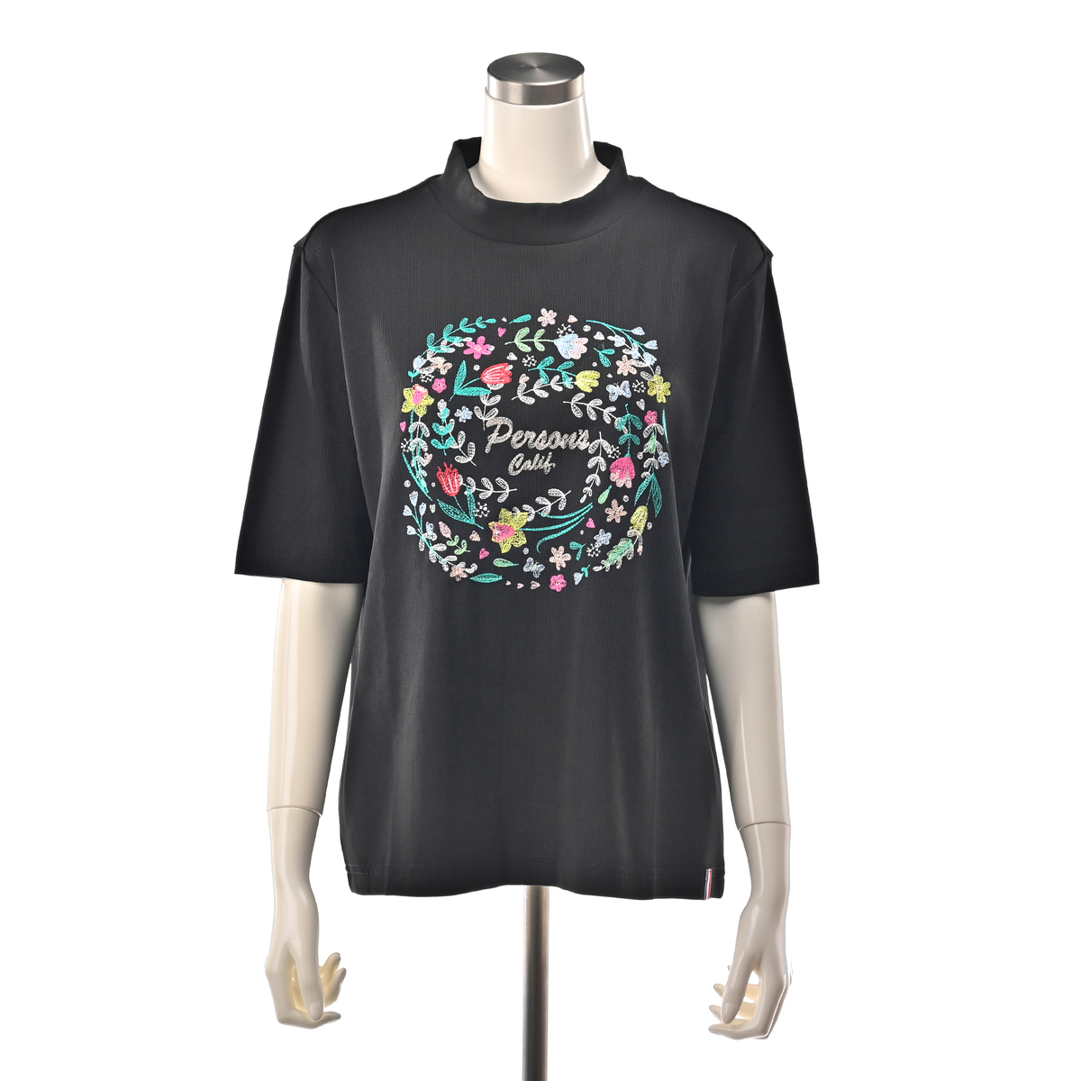 No. 746893 PERSONS フラワーリース刺繍モックネックTシャツ