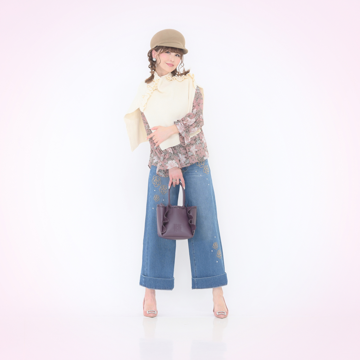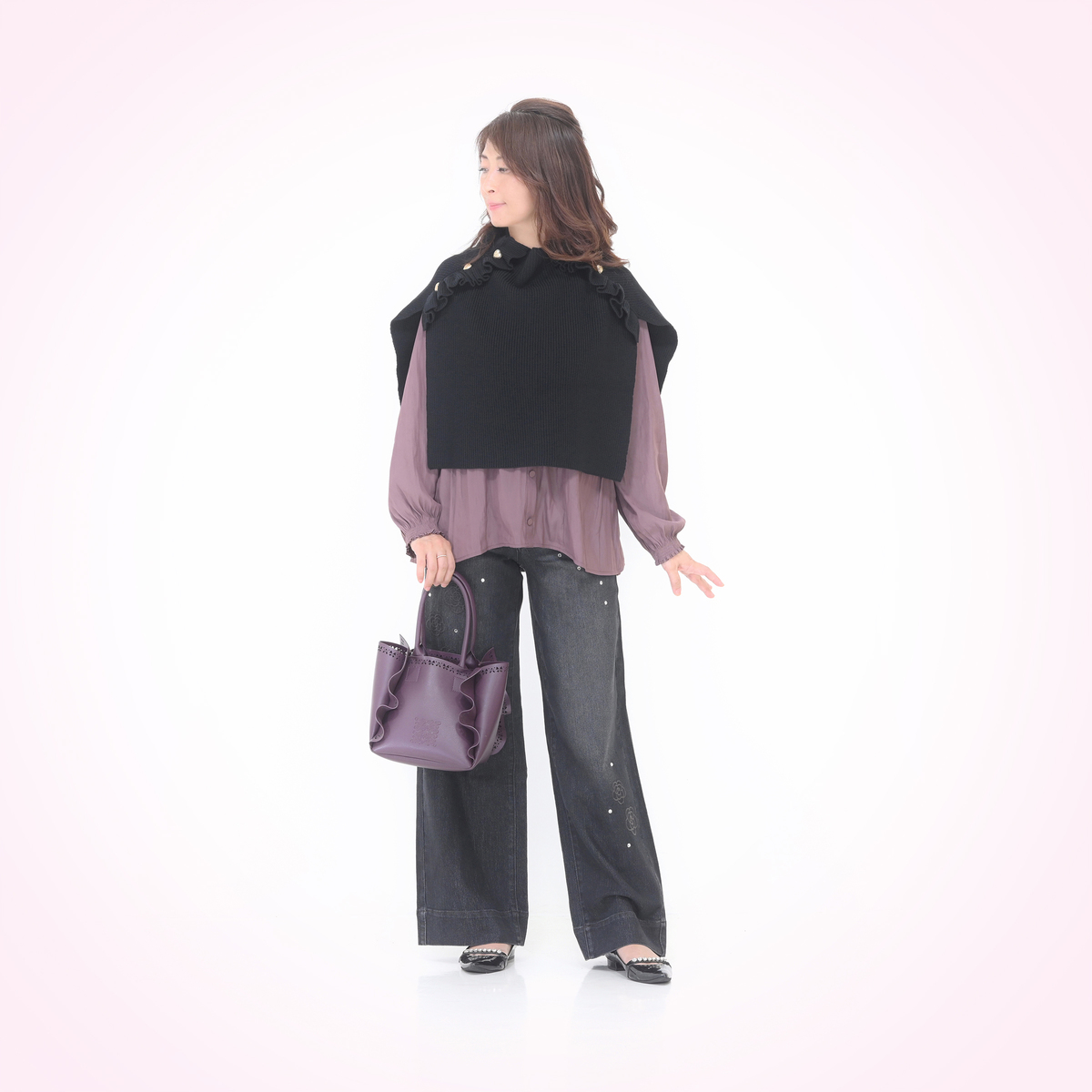 肩幅が広く二の腕も太いので大きく見えないか不安でしたがスッキリ見えます。フリルも派手悪目立ちせず 大人可愛いです。