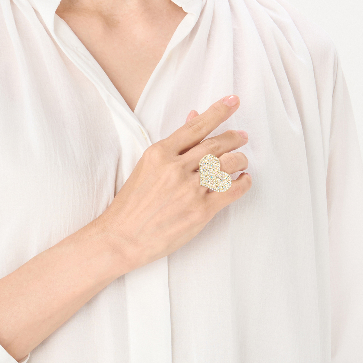 キラキラ☆おおぶりが大好きです リング部分が細いので幅広リングより、太めの指にもはいりやすいです。 ハートが大きくて気に入ってます!