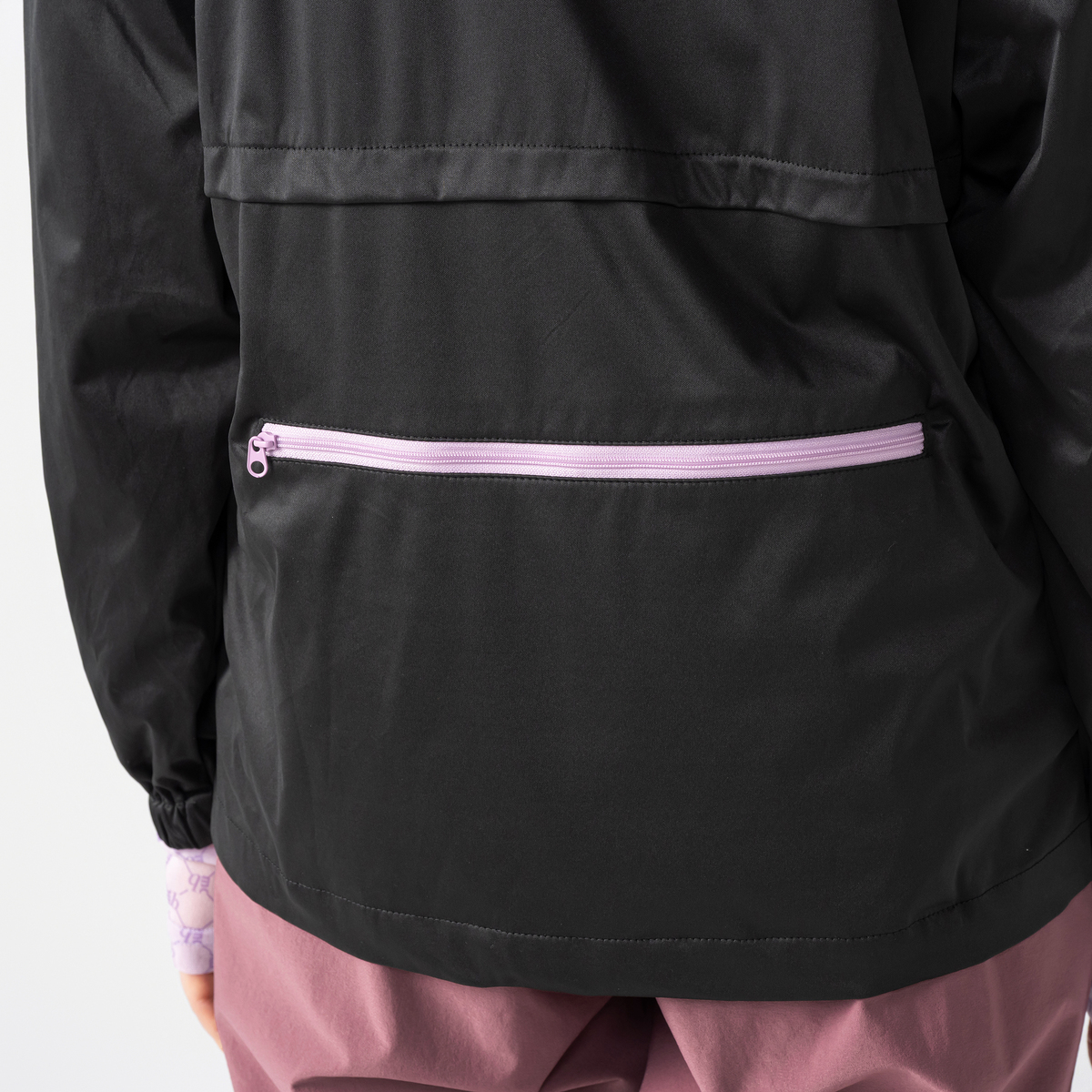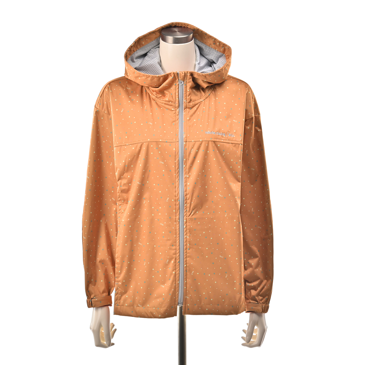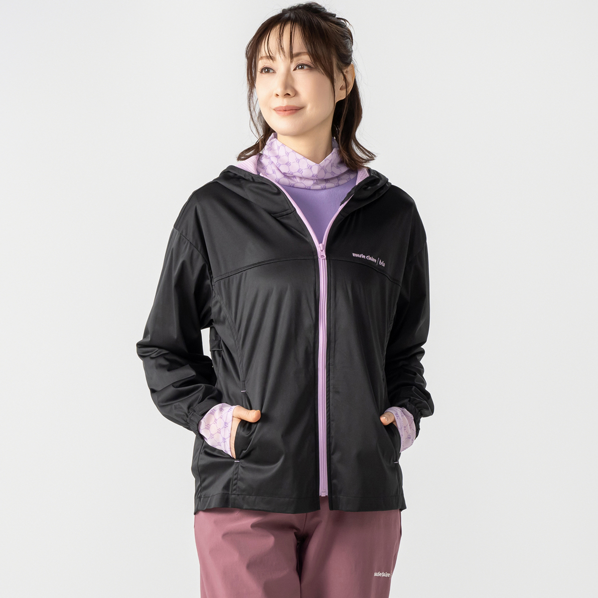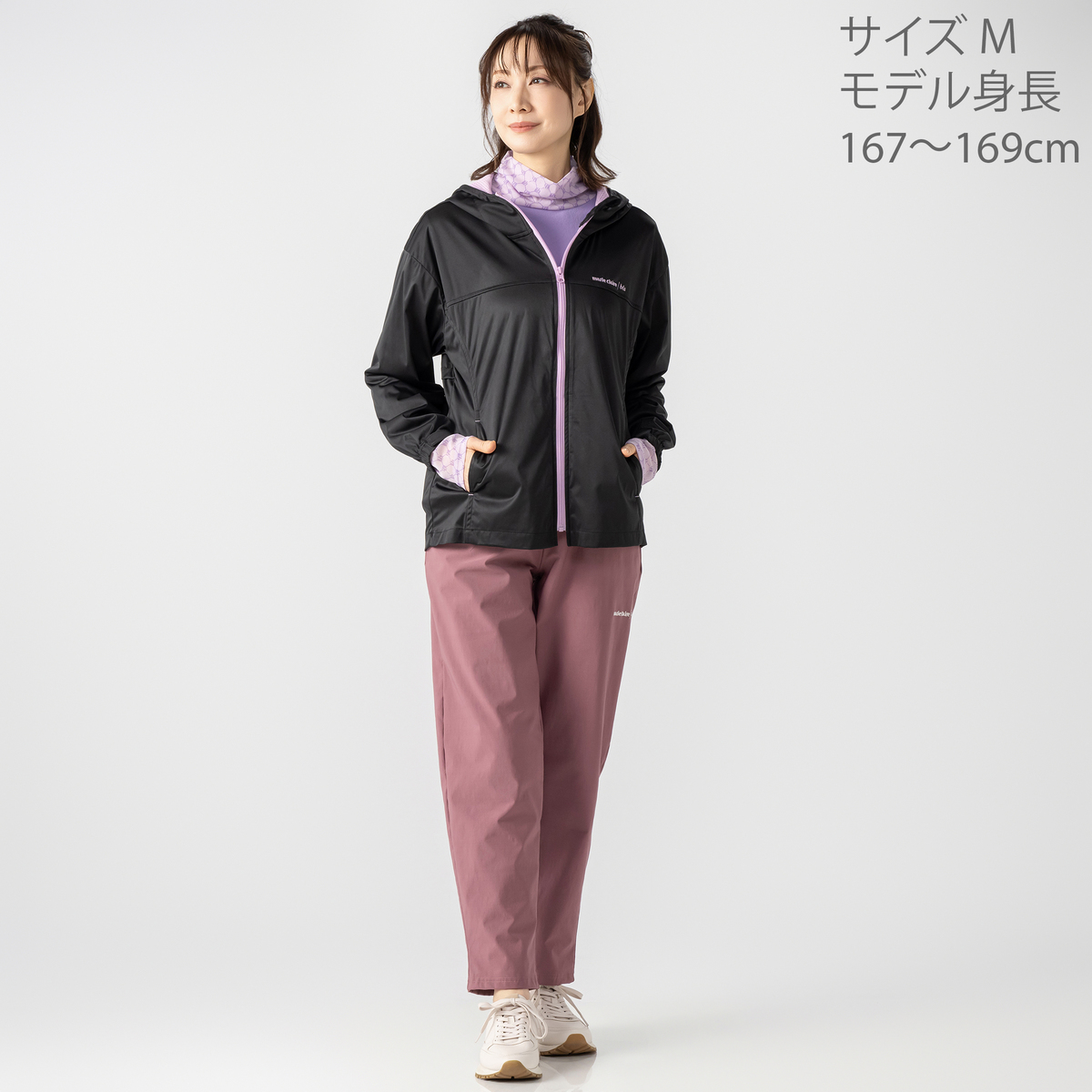 marie claire/bisの透湿防風パーカー。防風フィルムを挟んだ三層構造のボンディング生地で風を通さず、蒸気や湿気を外へ逃がします