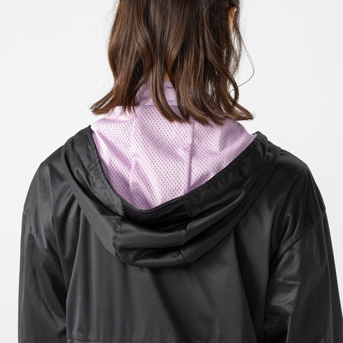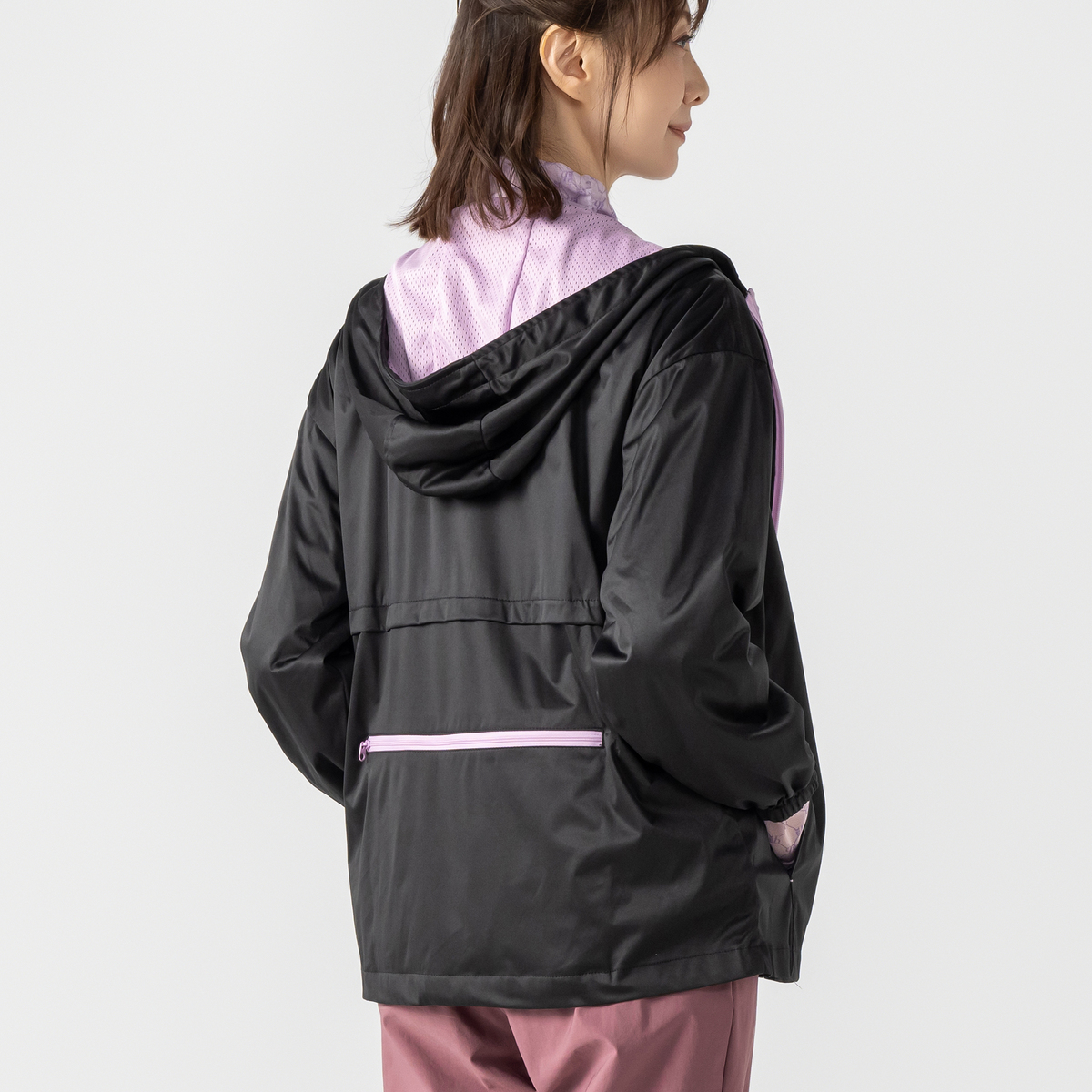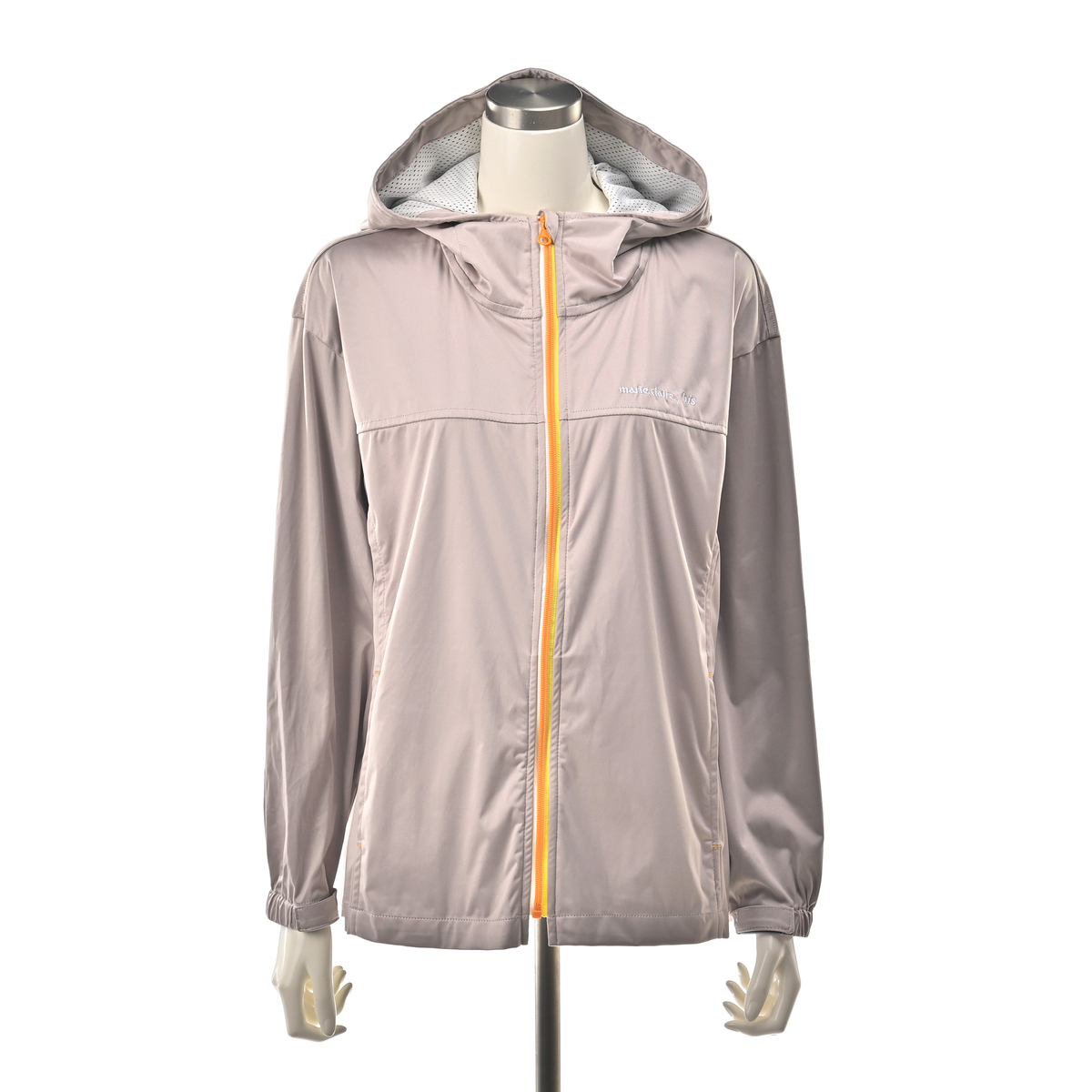 表面はスムース素材を使い、サラサラとした肌触り。フード裏側はスポーティーで通気性のあるメッシュ素材です。さらに、生地にはUVカット機能を備えています