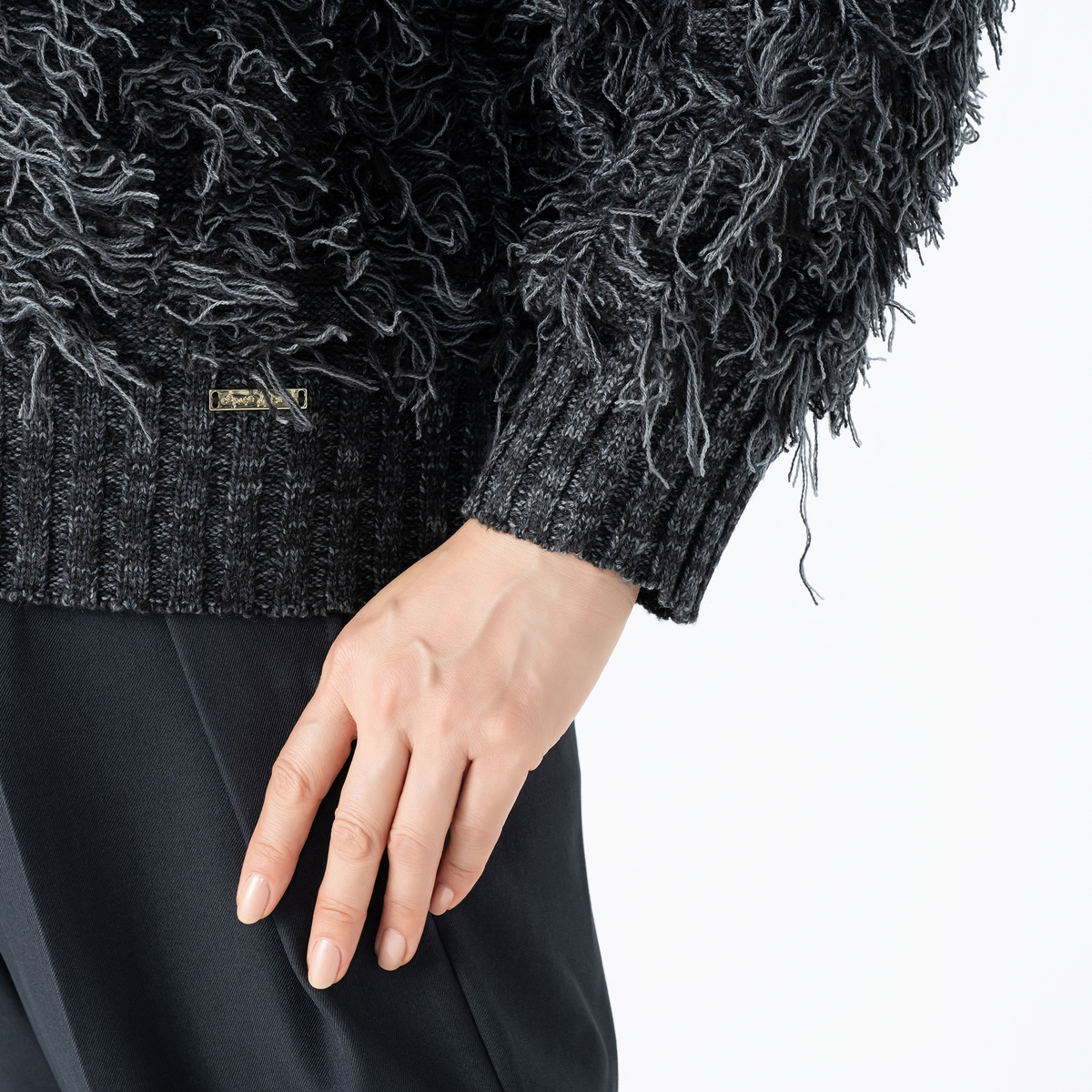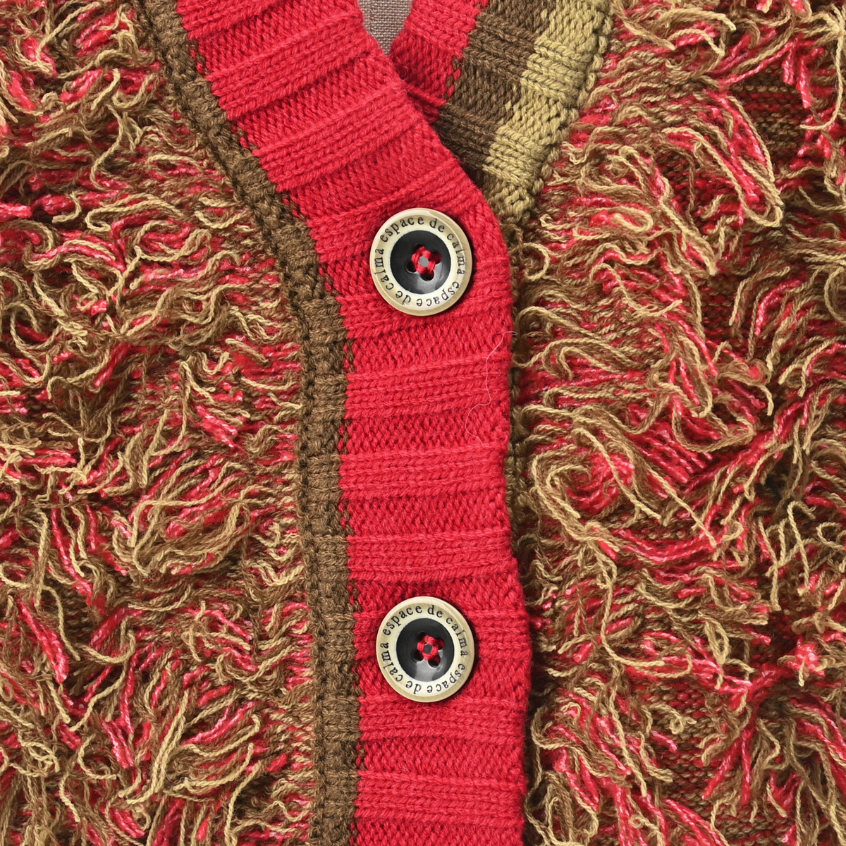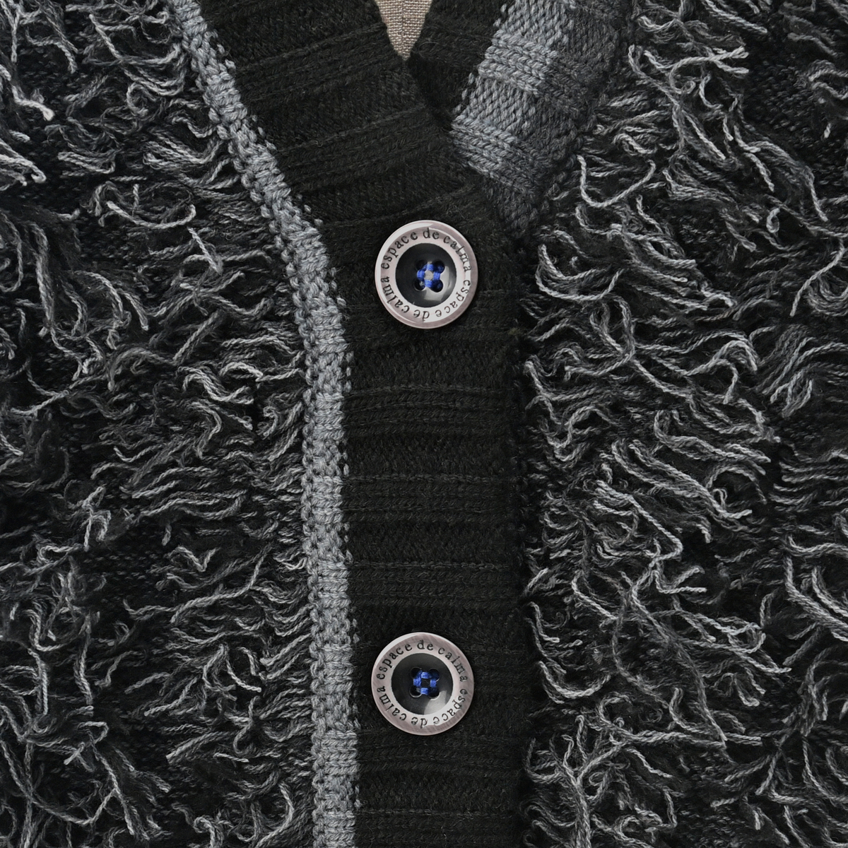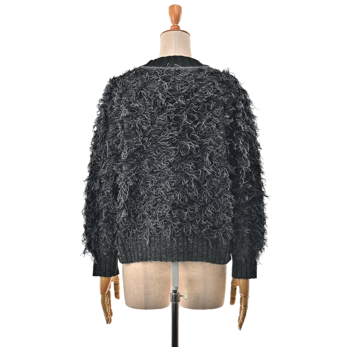 3色使いのMIXカラーフリンジが目を惹くニットカーディガン。起毛ヤーンを入れる事でふんわり仕上げています