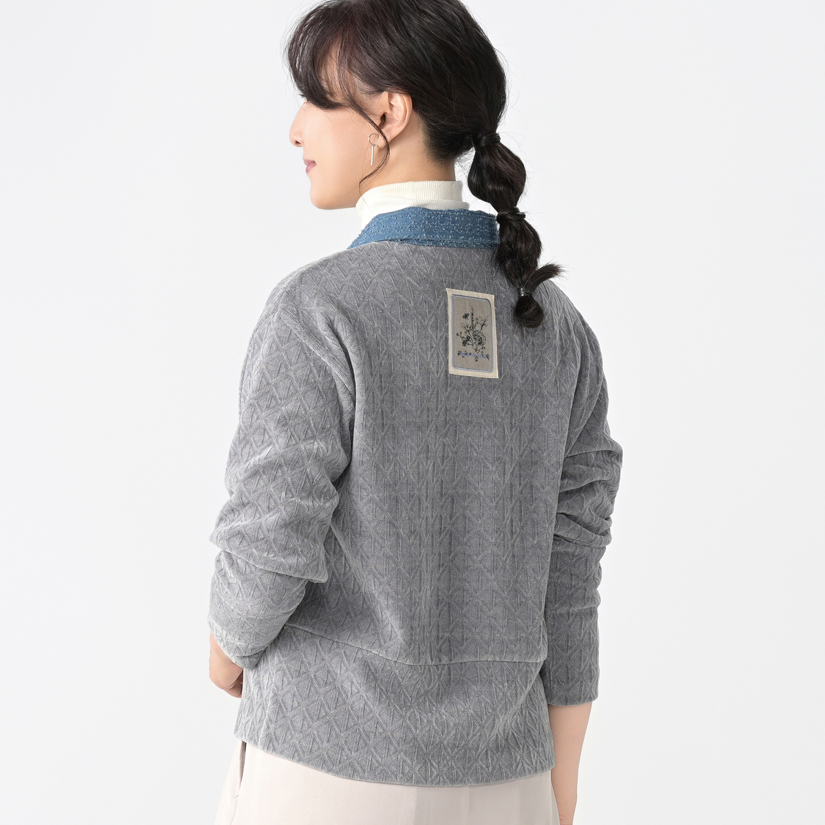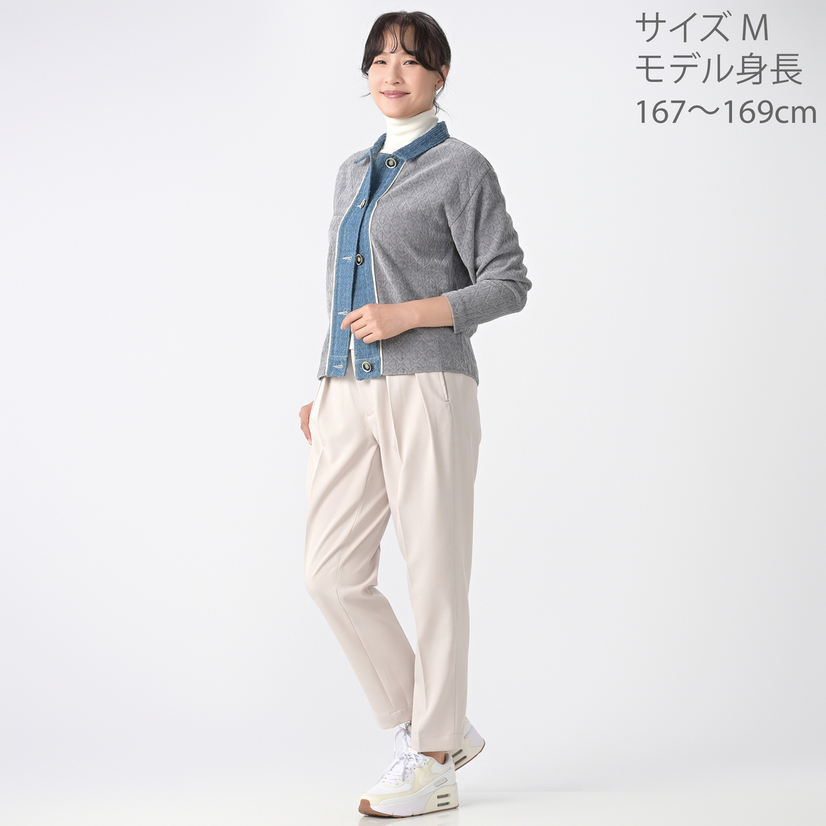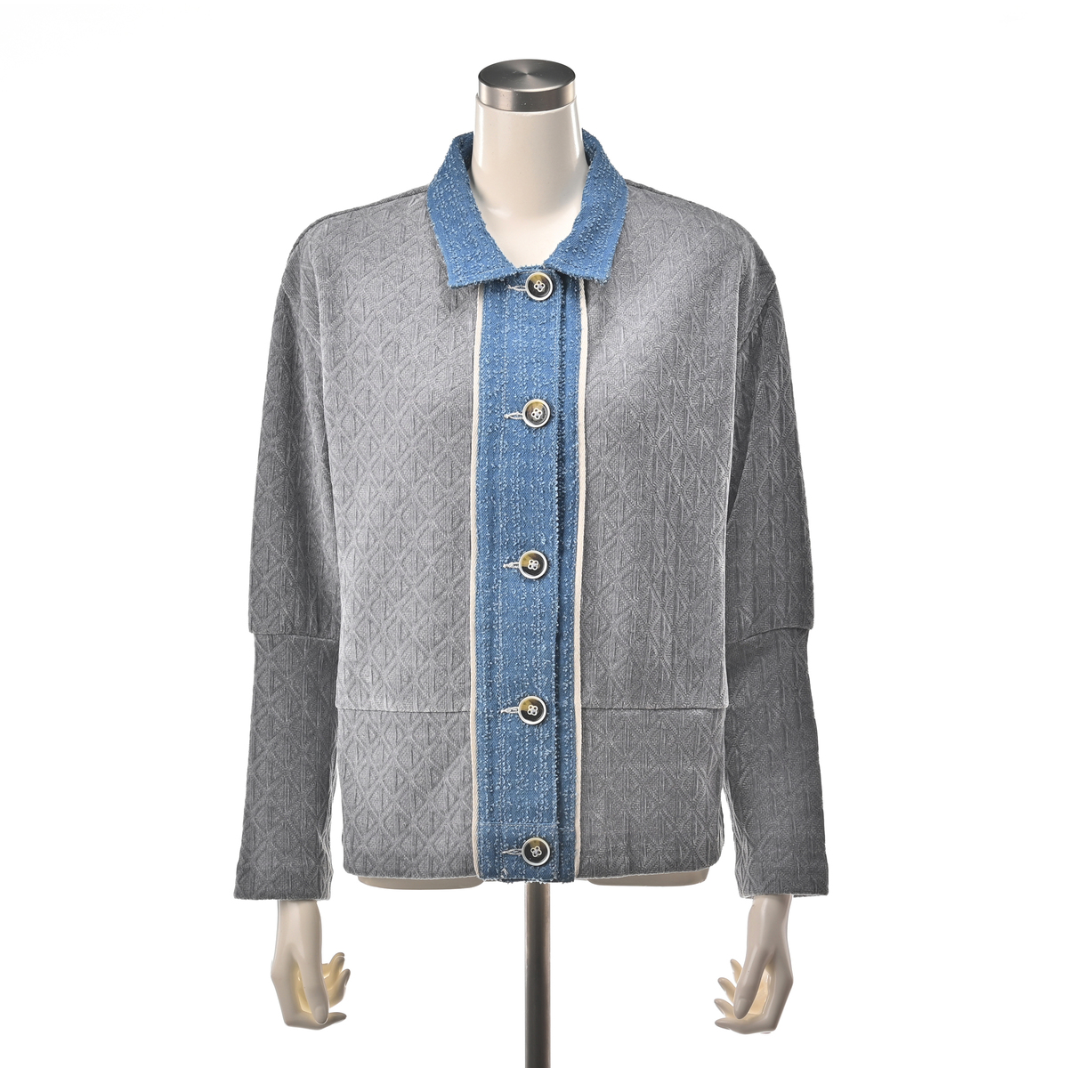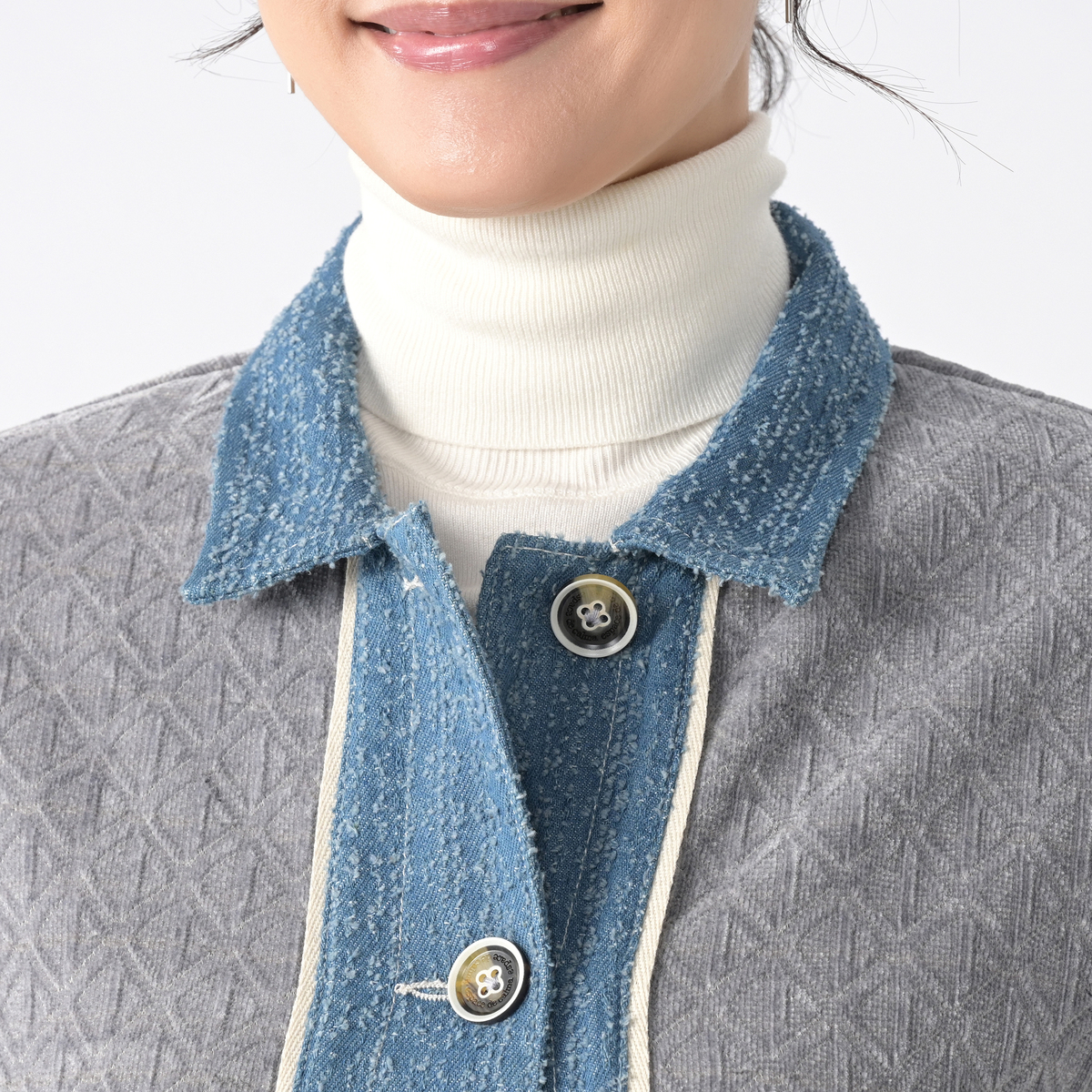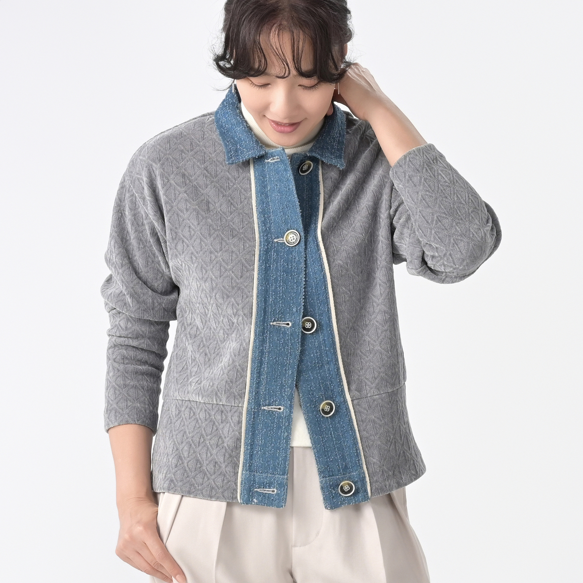 No. 746944 calma デニムドッキングシャツデザインカーディガン