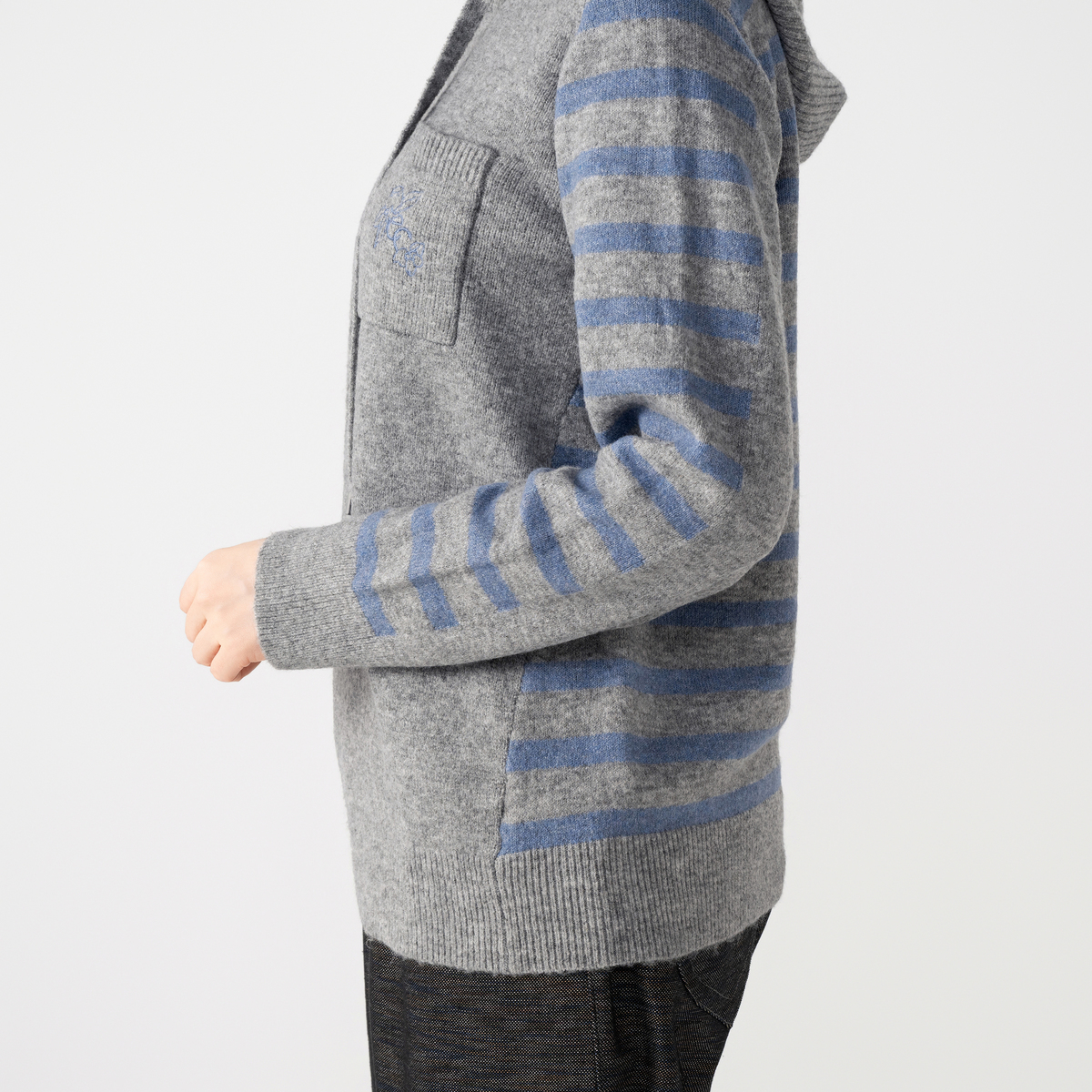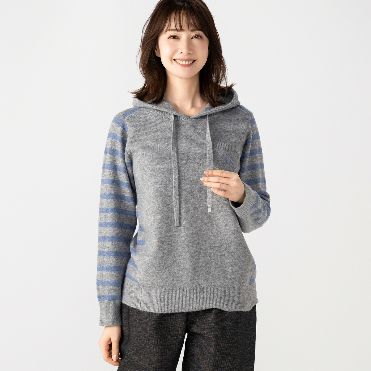 No. 746945 calma ふわりニット ボーダーフーディープルオーバー