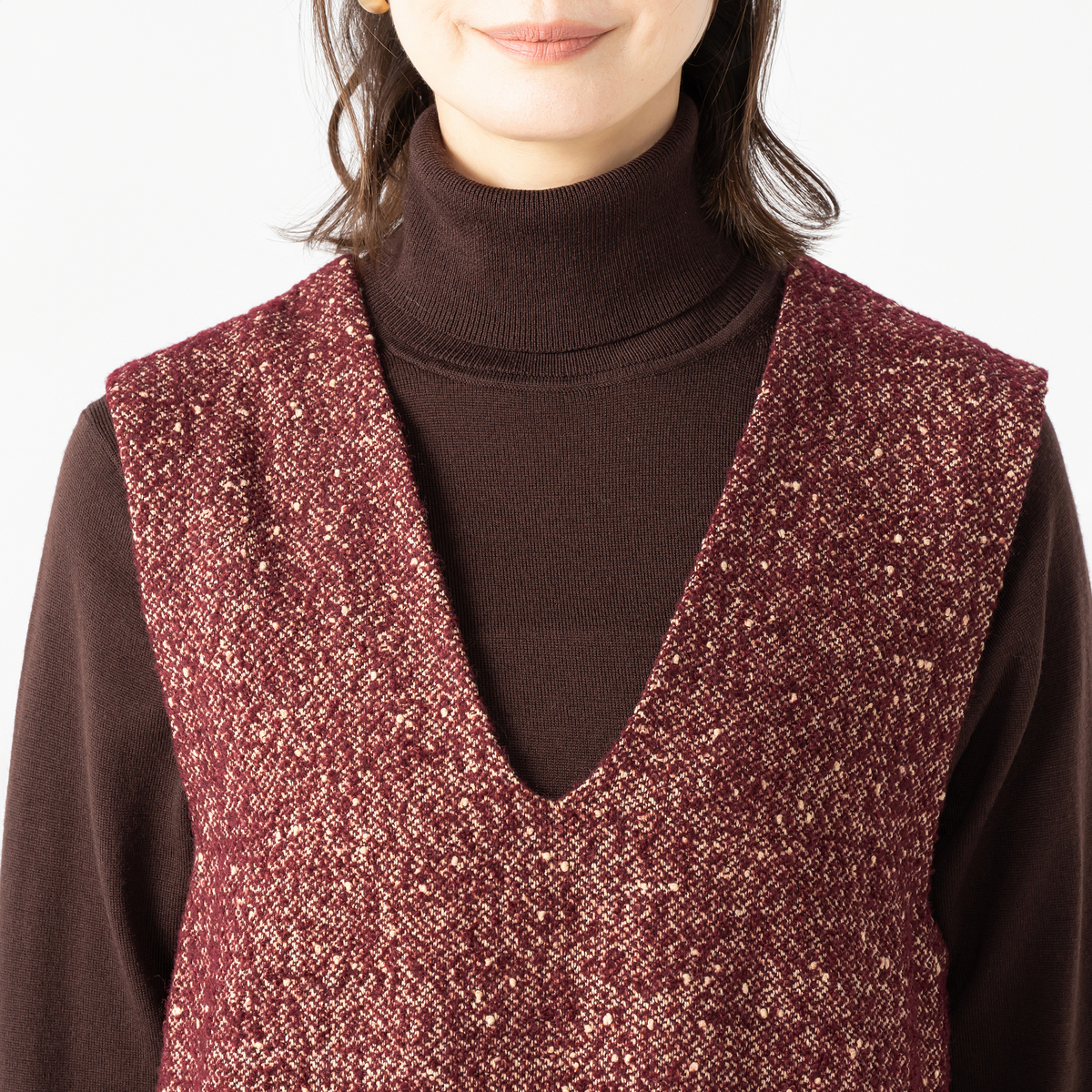 [商品寸法(ヌード)cm] サイズ バスト 身丈 S: 91(72〜80) 118 M: 95(79〜87) 118 L: 100(86〜94) 120 LL: 105(93〜101) 120 3L: 111(100〜108) 120 サイズ 肩幅 ウエスト ヒップ S: 38 (58〜64) (82〜90) M: 39 (64〜70) (87〜95) L: 40 (69〜77) (92〜100) LL: 41 (77〜85) (97〜105) 3L: 42 (85〜93) (102〜110) [素材] 前側:ポリエステル76% 毛15% アクリル6% ナイロン2% レーヨン1% 後ろ側・見返し:ポリエステル100% 裏地:ポリエステル100% [お手入れ] 洗濯機洗い可 [注意事項] ※商品寸法の誤差は多少発生します。ご了承下さい ※淡色製品には蛍光増白剤入り洗剤を使用しないで下さい ※洗濯後はすぐに脱水し、形を整えて干して下さい。長時間、水につけたままにしないで下さい ※洗濯・クリーニングの際、色落ちすることがありますので他の物と分けて洗って下さい ※ドライクリーニングの際は洗濯ネットを使用して下さい ※濃色製品は着用中の摩擦により色移りすることがあります。また、雨や汗等で濡れた状態で着用すると色移りすることがあります。その際はお早めに洗濯をして下さい ※アイロン時にはあて布を使用して下さい ※装飾部分にはアイロンを当てないで下さい ※洗濯ネットを必ず使用して下さい ※この製品は、光により退色しやすいので太陽光や蛍光灯等が長時間当たる所で保管しないで下さい ※着用時にベルトやバッグ、周囲の壁など、表面の粗いものとの摩擦や引っかかりに注意して下さい ※素材の特性上、過度な力が加わると縫い目が開いたり、生地が破れる場合がございます。お取り扱いには十分ご注意下さい 【中国製】