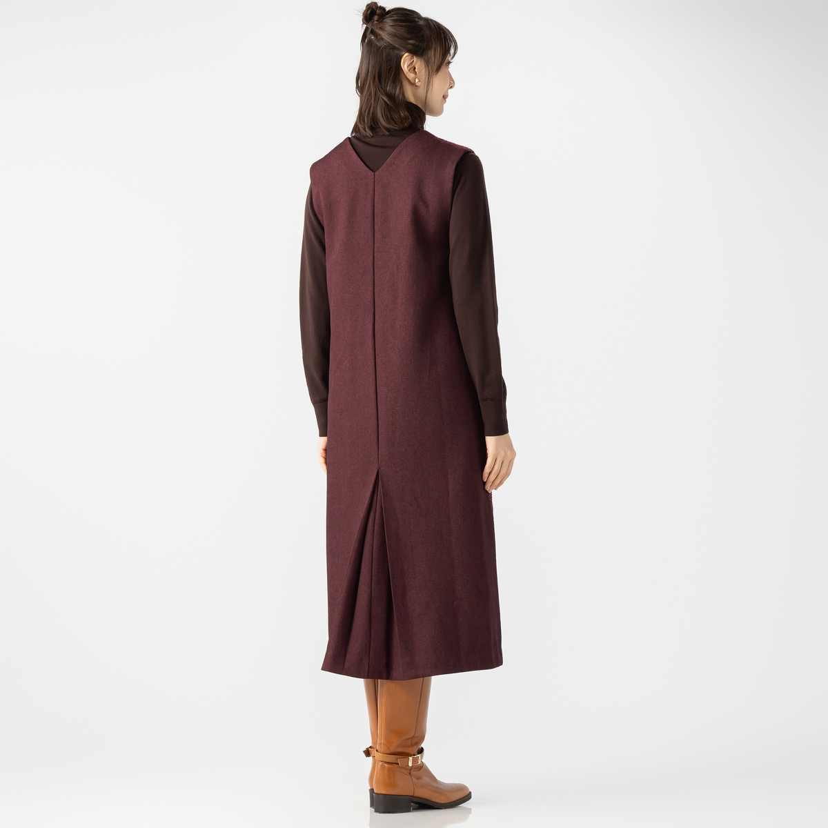 バックスリットが開いていなく、脚が見えないタイプのジャンパースカートを探してて、まさに!と思ったのですが、意外と生地が硬く、窮屈感が。 デザイナーさんが、素敵な着こなしをしていたので2色頂きましたが、着心地重視なので残念ですが返品します