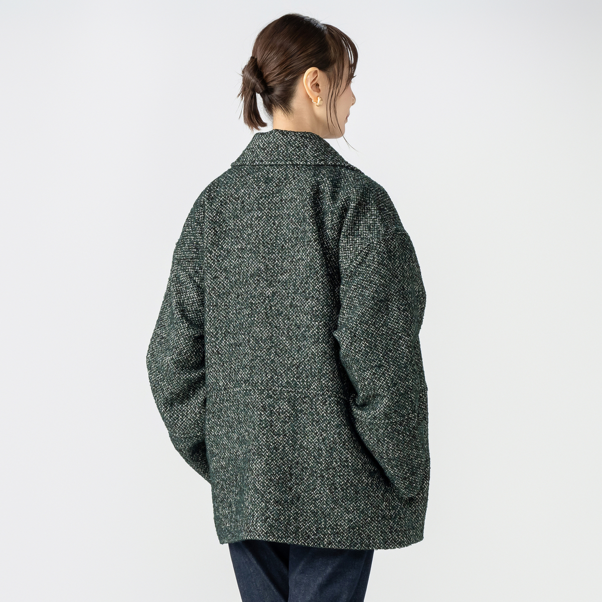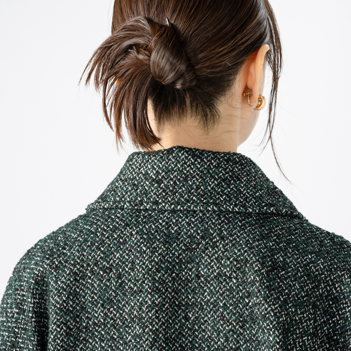 リングヤーンと甘撚りの糸を使用し、ふくらみ感のあるツイード素材に。軽やかであたたかみがあります。裏地には、なめらかな質感のツイル素材をセレクトしました