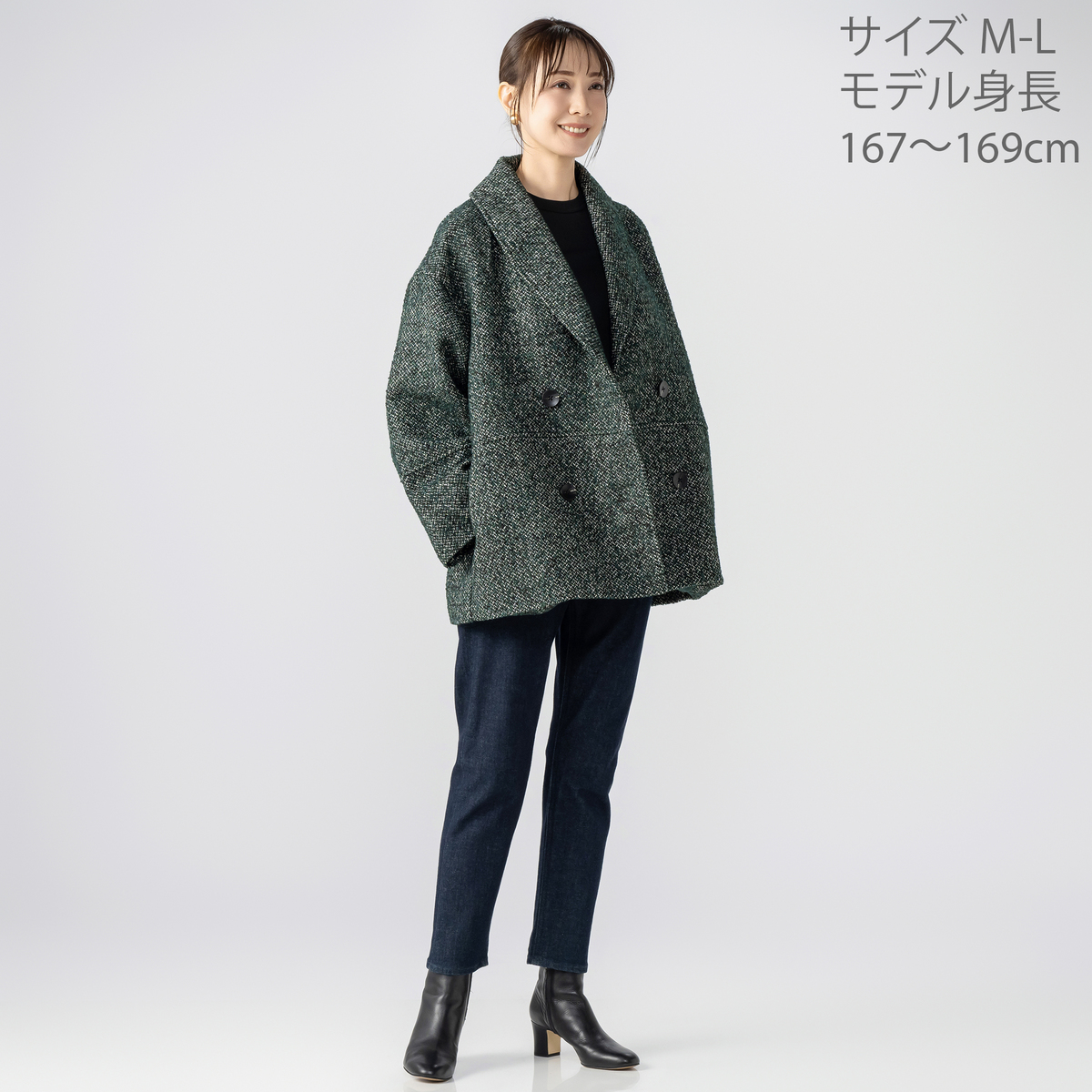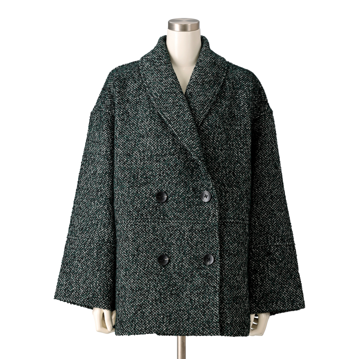 No. 746959 Abanicos ショールカラー ダブルブレスト ツイードコート