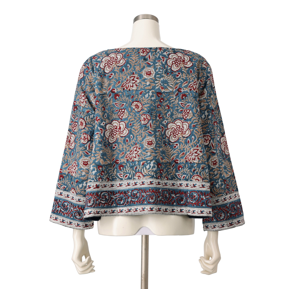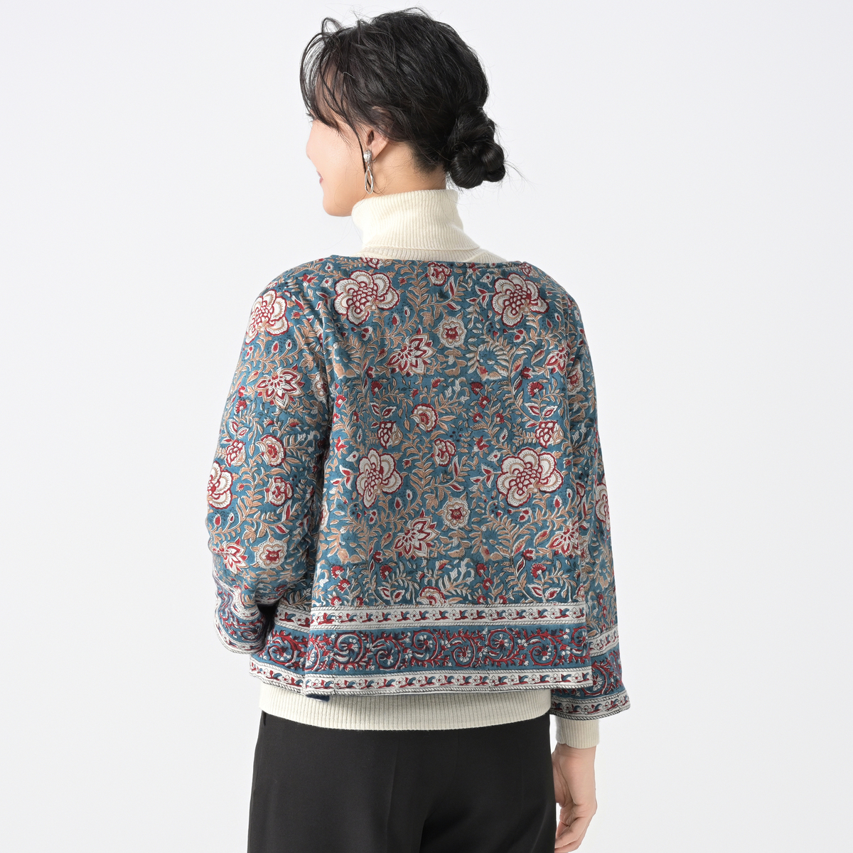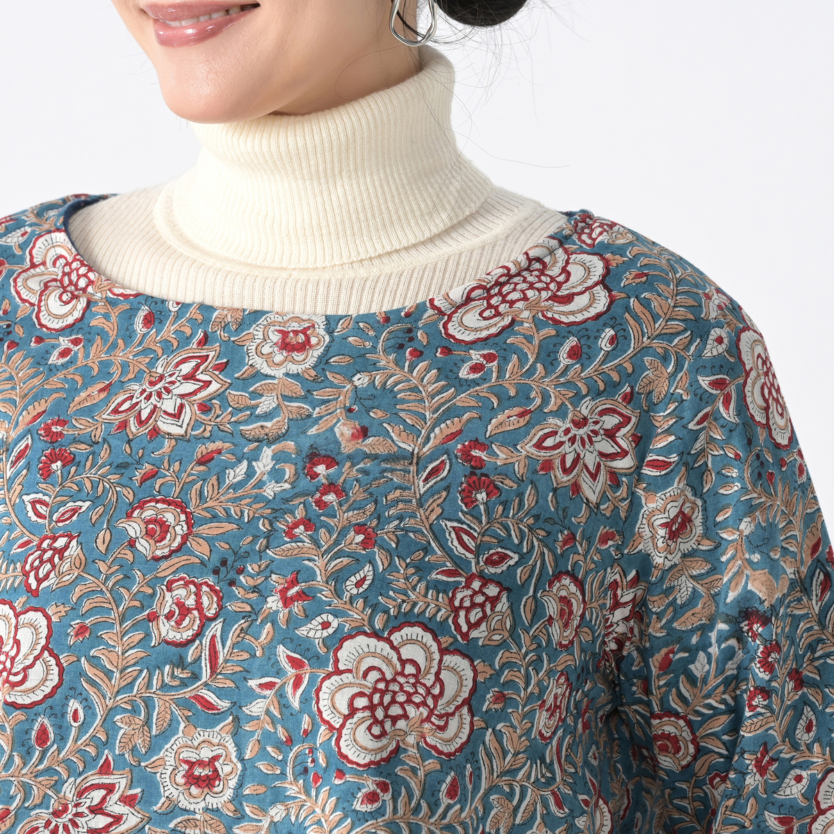 [商品寸法(ヌード)cm] サイズ バスト 着丈 MーL: 110(79〜94) 53 LLー3L:122(93〜108) 54 サイズ 肩幅 袖丈 MーL: 40 50 LLー3L:42 50 [素材] 表地:綿 100% 裏地:ポリエステル 100% [お手入れ] 洗濯機洗い可 [注意事項] ※商品寸法の誤差は多少発生します。ご了承下さい ※アイロンは当て布使用 ※この製品はインド製の生地を使用しています。染め、織りむら等による粗野感と着心地を特徴とし、独特な(製品は1点1点多少表情が違います)色目、風合いを持っています ※水洗いにより多少色落ちする場合がありますので白物と分けてお洗い下さい。一度お洗い頂いてからのご使用をお薦め致します ※濡れたまま他の物と重ねておくと移染しますので洗濯後は形を整えて早めに干して下さい ※乾燥機のご使用はお避け下さい ※生成、染色商品には無蛍光洗剤をご使用下さい ※性質上、摩擦により毛羽立ち、毛玉が出来やすい商品です ※お洗濯により多少縮む場合があります。ご了承下さい ※この商品は自然の風合を求めた特別な製品の為色むら織りむら等が製品の特性です ※生地の特性により縫い目の部分をご注意の上お取扱いください ※この製品は素材の特性上水分や汗、摩擦などにより色落ちすることがありますのでご着用の際は十分ご注意ください ※木型で一つ一つ手作業で染めていくブロックプリントという手法のプリントのため、染料特有の匂いがする場合があります。気になる方は一度お洗濯してからの着用をお勧めします 【インド製】