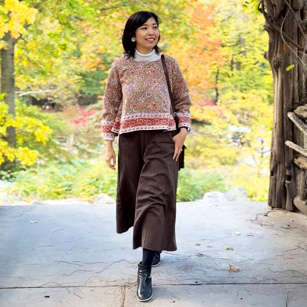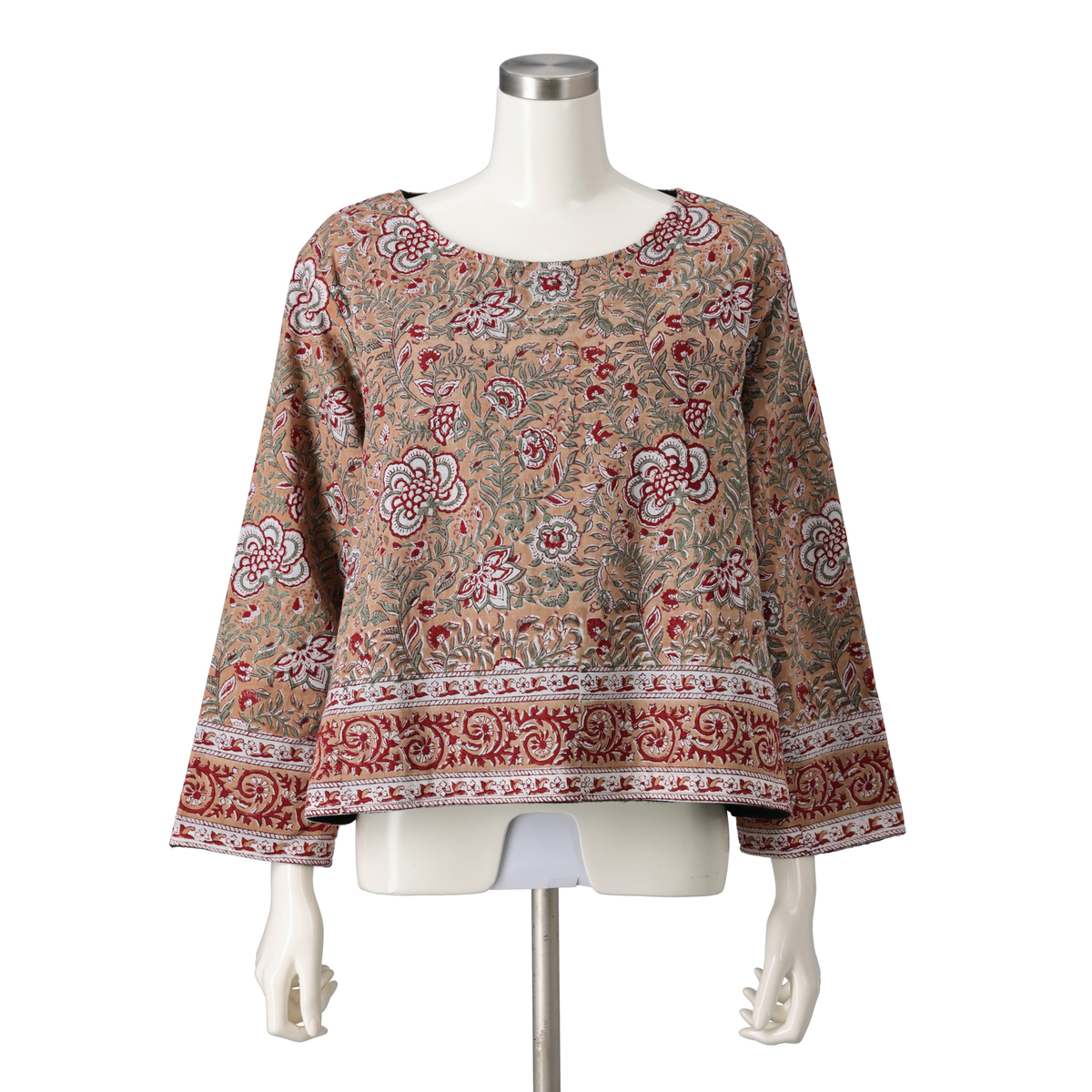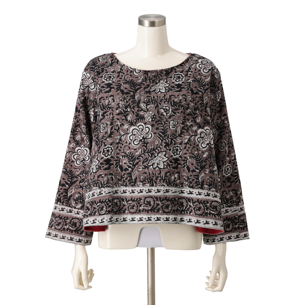 [商品寸法(ヌード)cm] サイズ バスト 着丈 MーL: 110(79〜94) 53 LLー3L:122(93〜108) 54 サイズ 肩幅 袖丈 MーL: 40 50 LLー3L:42 50 [素材] 表地:綿 100% 裏地:ポリエステル 100% [お手入れ] 洗濯機洗い可 [注意事項] ※商品寸法の誤差は多少発生します。ご了承下さい ※アイロンは当て布使用 ※この製品はインド製の生地を使用しています。染め、織りむら等による粗野感と着心地を特徴とし、独特な(製品は1点1点多少表情が違います)色目、風合いを持っています ※水洗いにより多少色落ちする場合がありますので白物と分けてお洗い下さい。一度お洗い頂いてからのご使用をお薦め致します ※濡れたまま他の物と重ねておくと移染しますので洗濯後は形を整えて早めに干して下さい ※乾燥機のご使用はお避け下さい ※生成、染色商品には無蛍光洗剤をご使用下さい ※性質上、摩擦により毛羽立ち、毛玉が出来やすい商品です ※お洗濯により多少縮む場合があります。ご了承下さい ※この商品は自然の風合を求めた特別な製品の為色むら織りむら等が製品の特性です ※生地の特性により縫い目の部分をご注意の上お取扱いください ※この製品は素材の特性上水分や汗、摩擦などにより色落ちすることがありますのでご着用の際は十分ご注意ください ※木型で一つ一つ手作業で染めていくブロックプリントという手法のプリントのため、染料特有の匂いがする場合があります。気になる方は一度お洗濯してからの着用をお勧めします 【インド製】