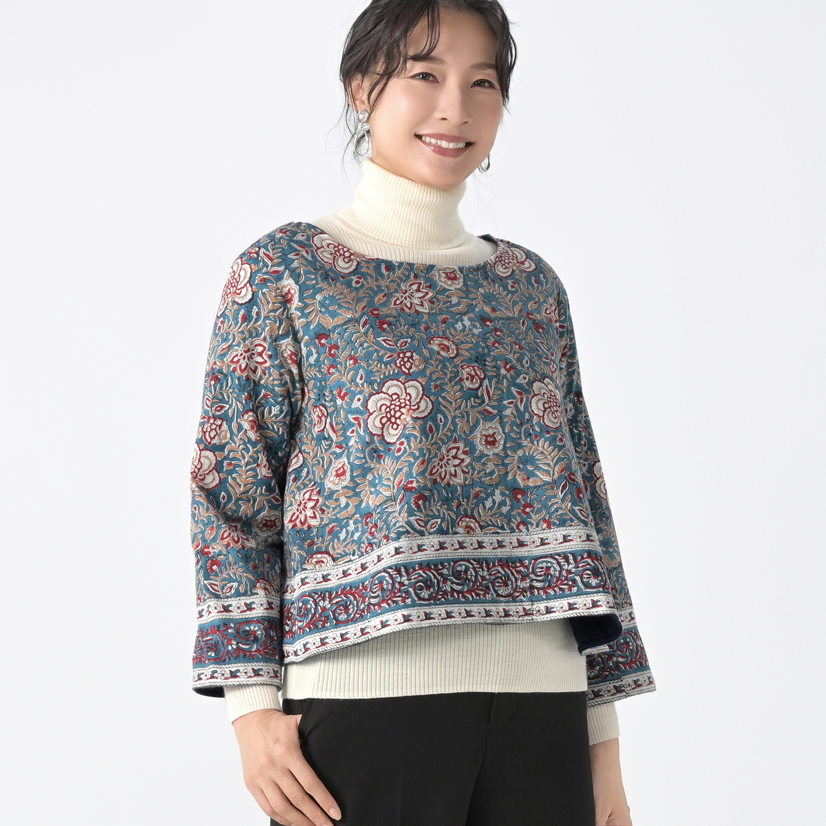 No. 746961 myM フリース裏地付ブロックプリント暖かプルオーバー