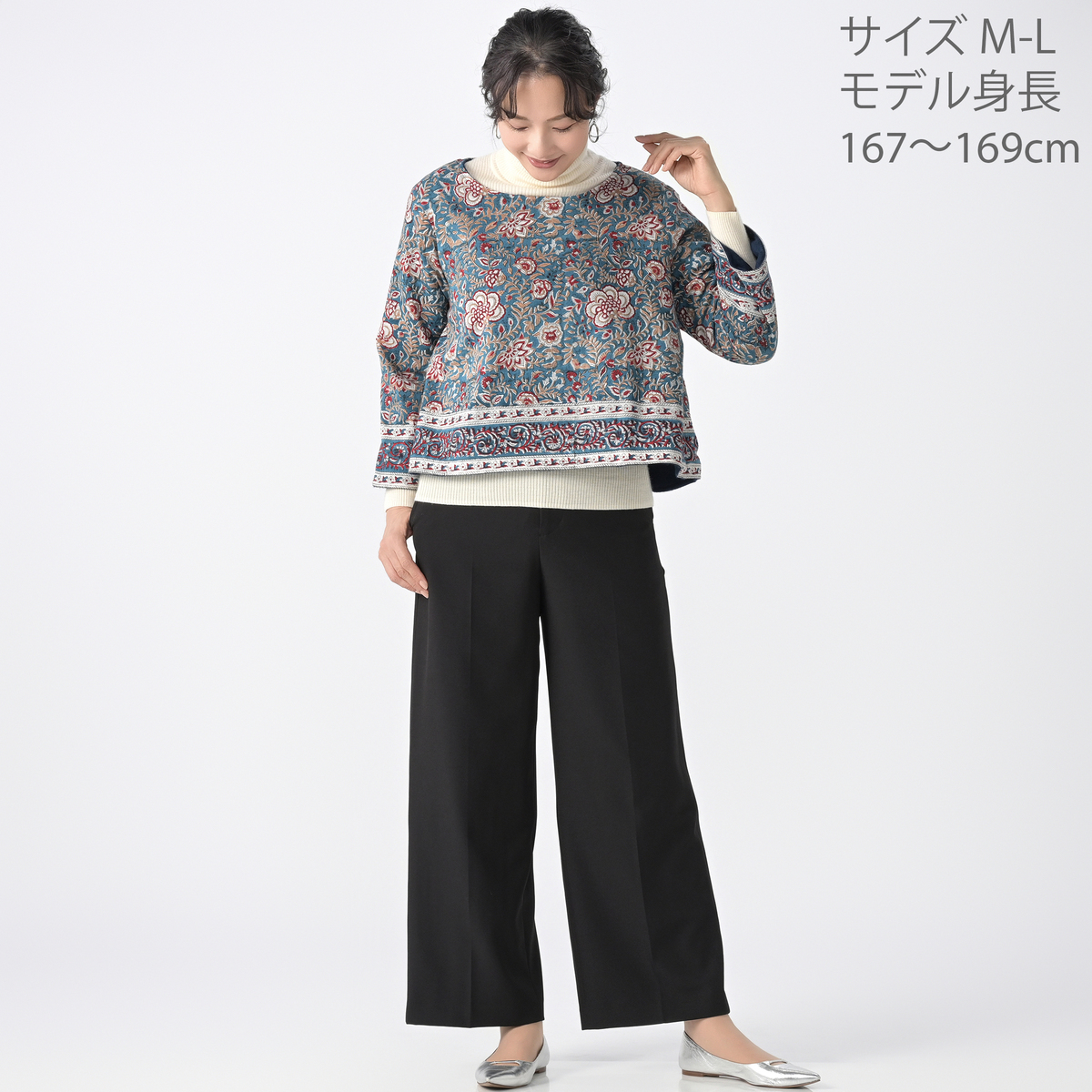 アームホールをたっぷり取って、腕まわりを楽に仕上げたワイドなプルオーバー。ふわっと着られて、重ね着もしやすいです