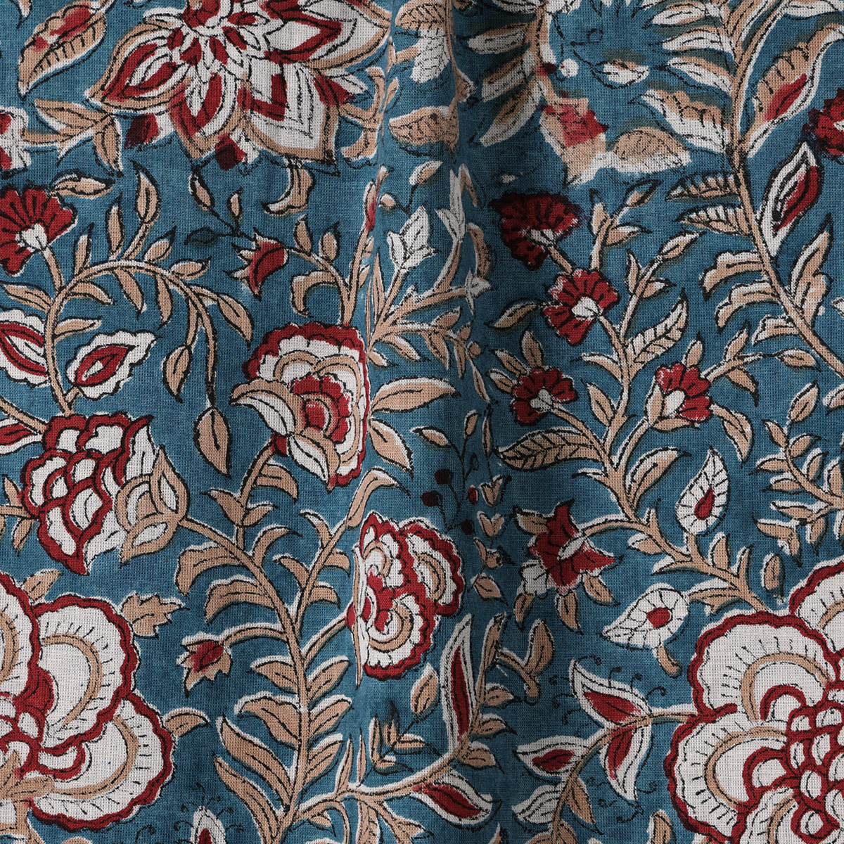 木型を使い、一つひとつ手作業で染め上げるブロックプリント。手染めならではの風合いで、色柄の濃淡が一点一点微妙に異なるのが魅力です