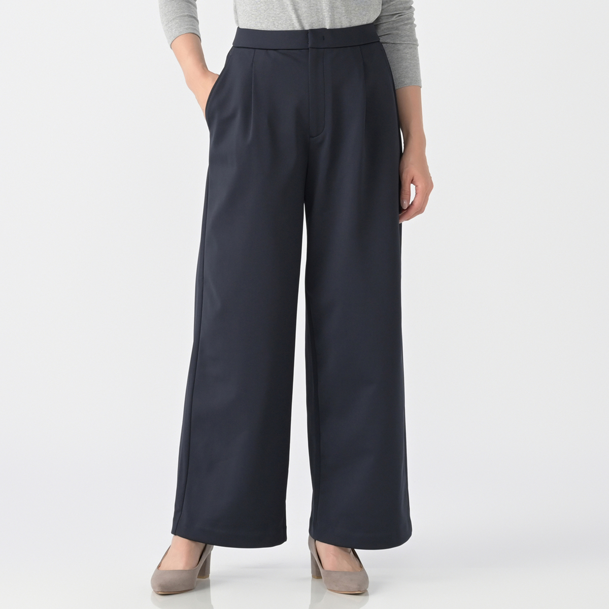 前ウエストから流れるように入ったタックが、脚のラインをスッキリ見せ、動きに合わせてふんわりとした立体感を演出。足さばきを妨げにくいよう裾幅のバランスにこだわり、歩くたびに優雅な揺れ感が生まれるタックワイドパンツです