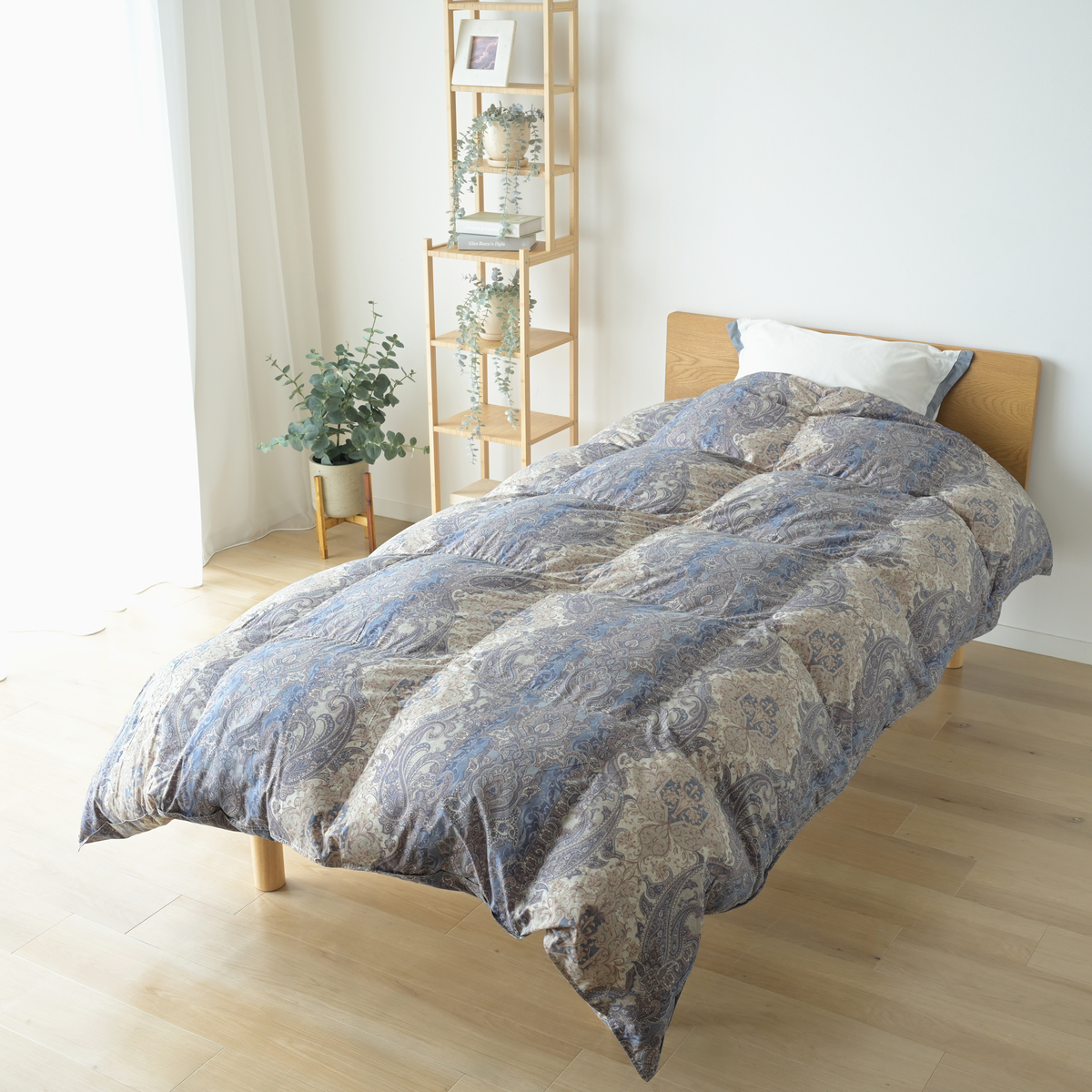ポリエステル85%、綿15%の側生地を採用。軽くて体沿いの良い生地です。また側生地には抗菌防臭加工が施されています。さらに8ヶ所のループが付き、お手持ちのふとんカバーに付帯している紐等とループをでつないだり、結ぶことでズレ難くなります
