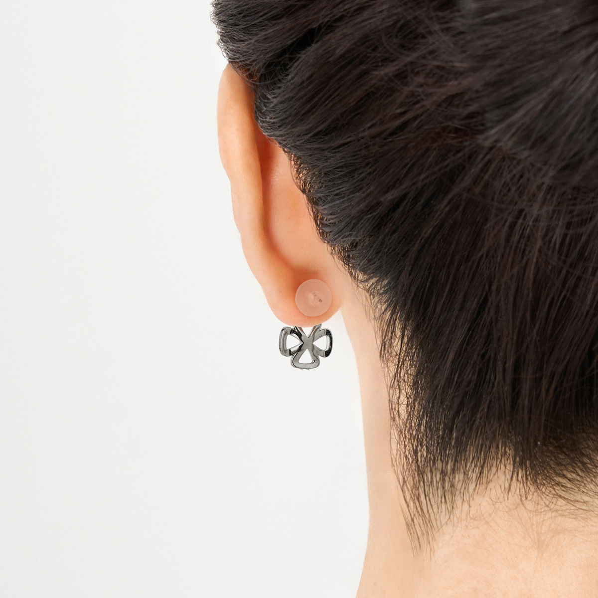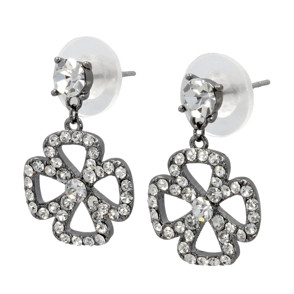 軽やかなお花が耳元で咲き誇るイヤリングまたはピアス。ブラックカラーの本体にクリスタルガラスをあしらい、可愛いながらもクールな印象のデザインが魅力です