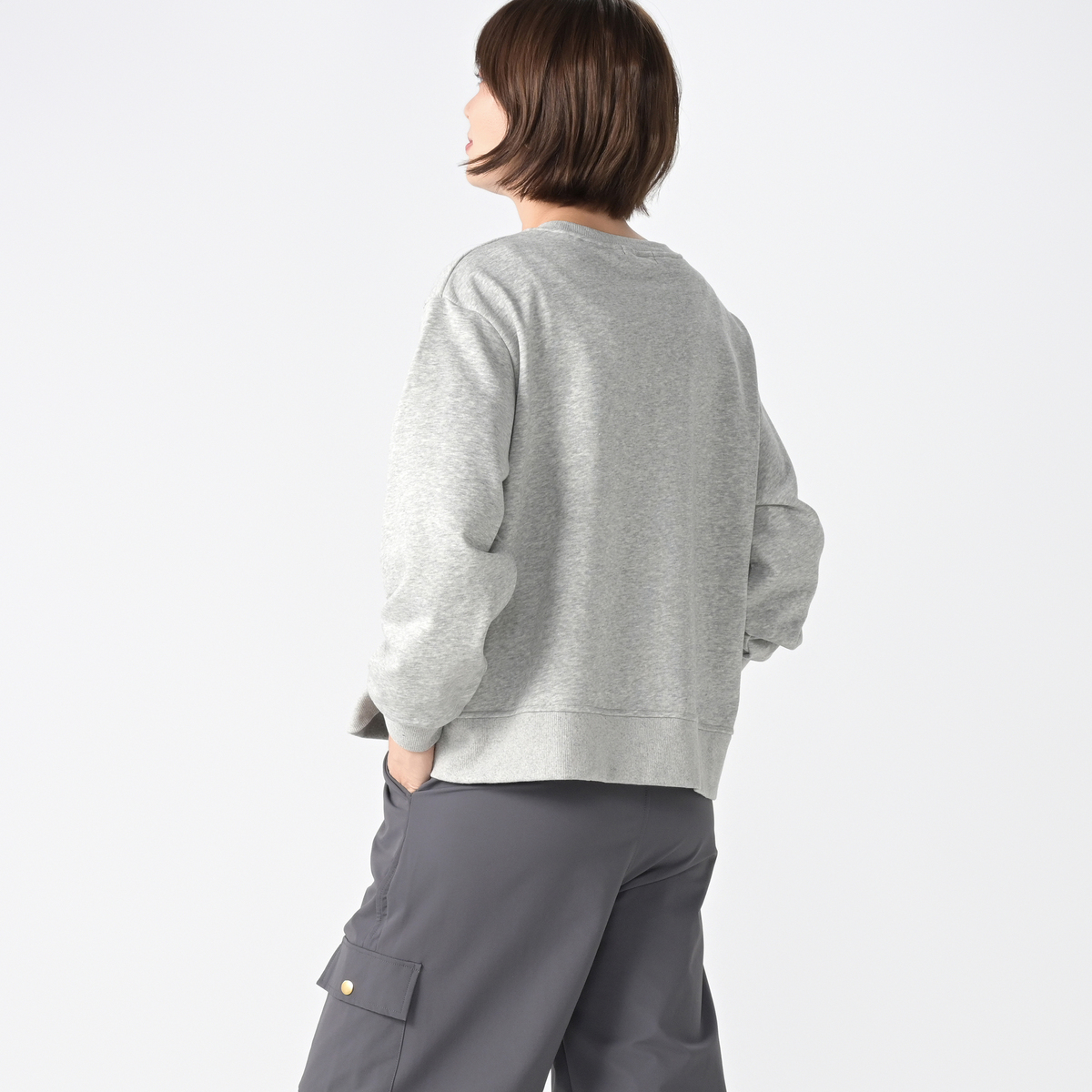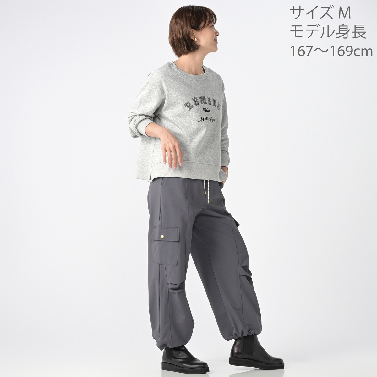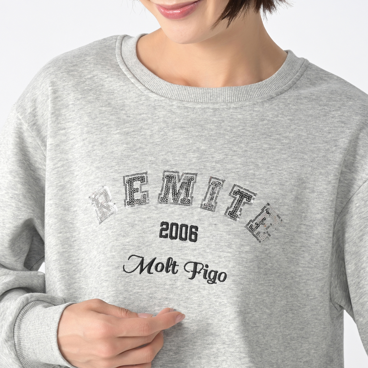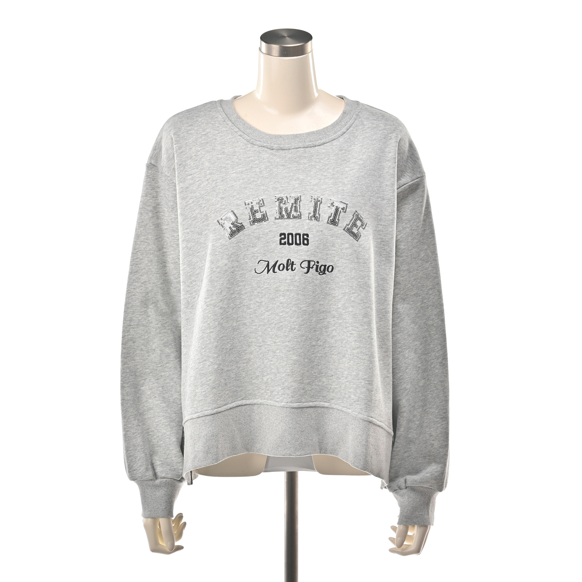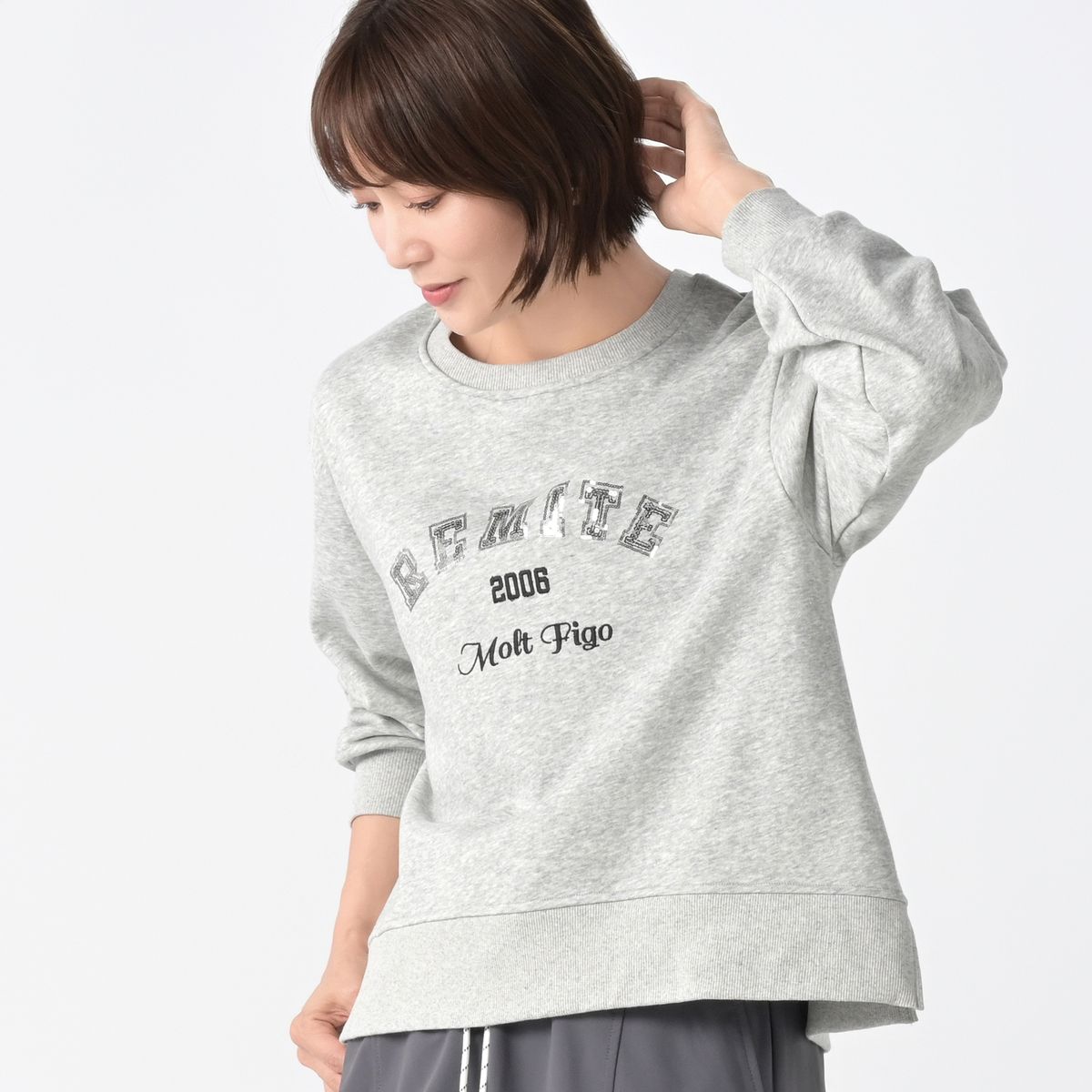 厚すぎず薄すぎず 本当に丁度良い生地感でストレスフリーです。 リミーテファンとしてはロゴ入りアイテムは ポチらずにはいられません!色はグレーを選びました。キラリと光る細かいスパンコールは滑らかで指が引っかかる事もなく快適です。 一見普通のトレーナーの様に見えますが、裾のラウンド具合やサイドのスリットとにくいテクニック満載のお洒落なシルエットが大変気に入りました。ゆったりシルエットなのでレイヤードスタイルも楽しめそうです。
