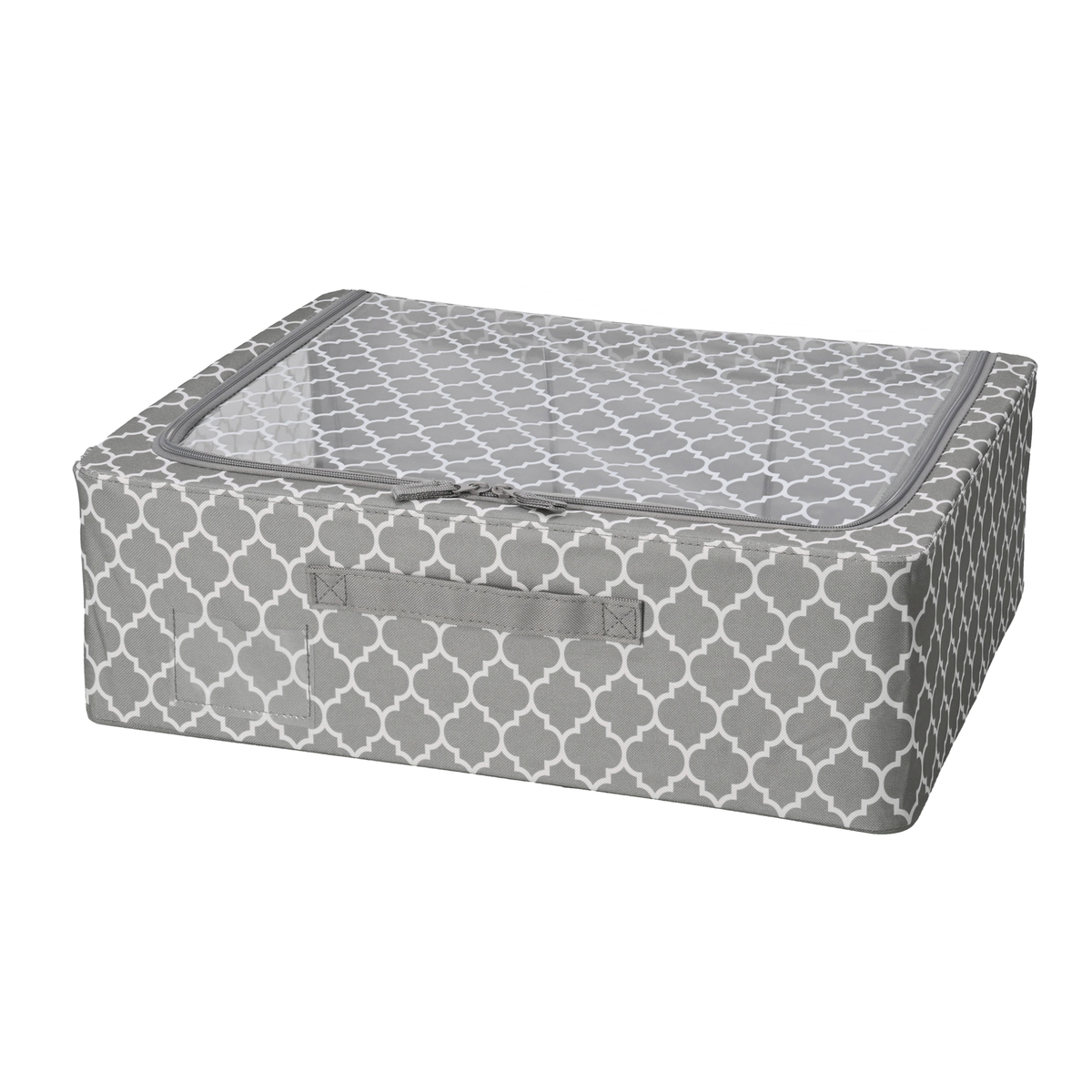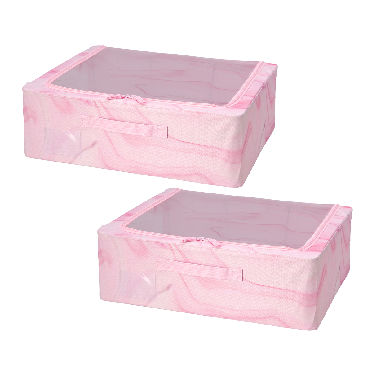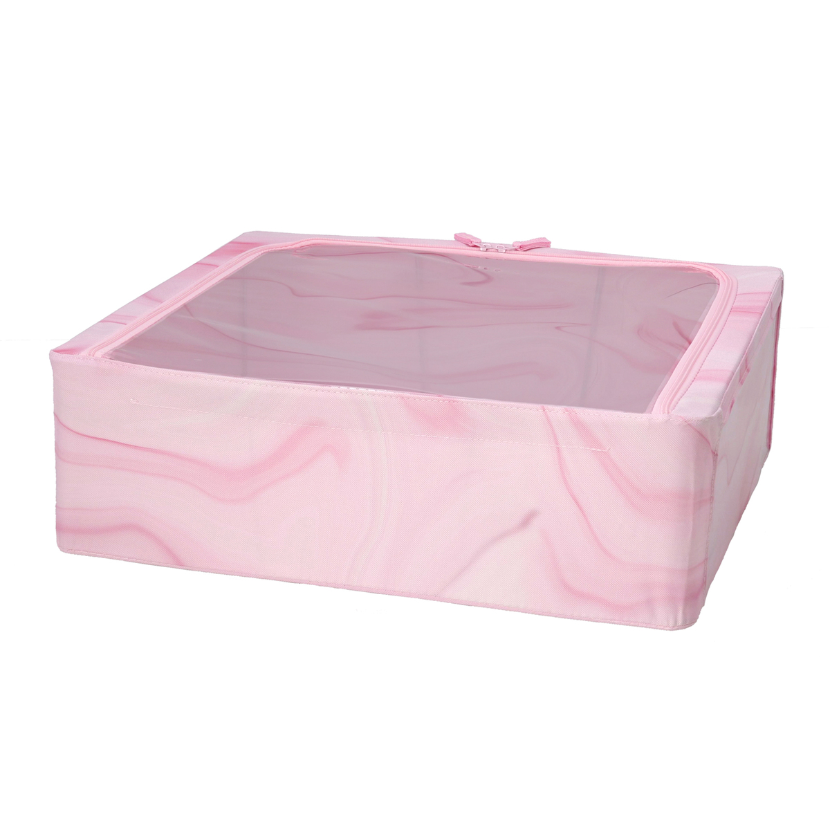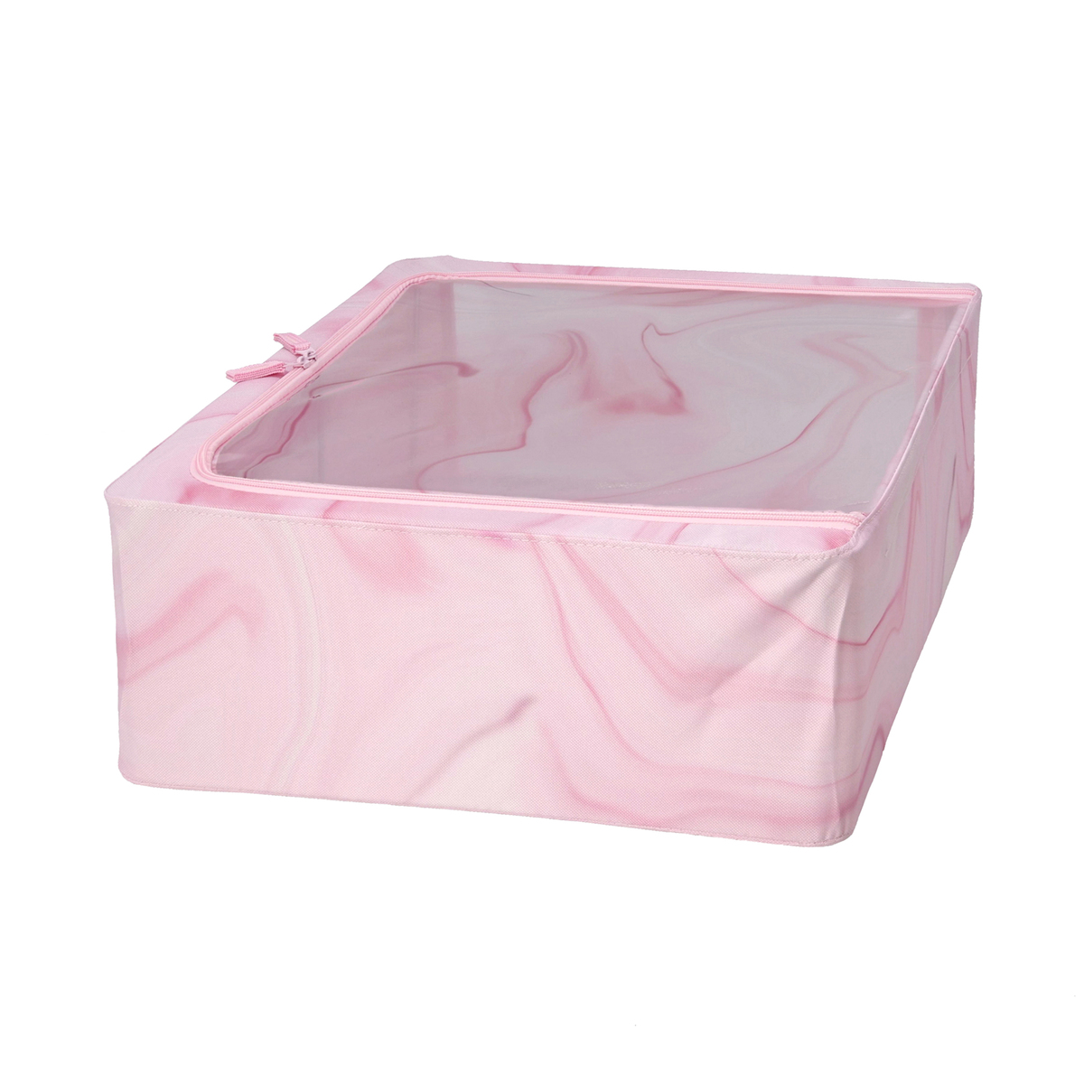 洋服や小物などを入れるのにおすすめの収納ボックスです。天面はファスナー付きで、天面の窓から出し入れ可能。正面には、整理整頓に便利なラベルポケットが付いています