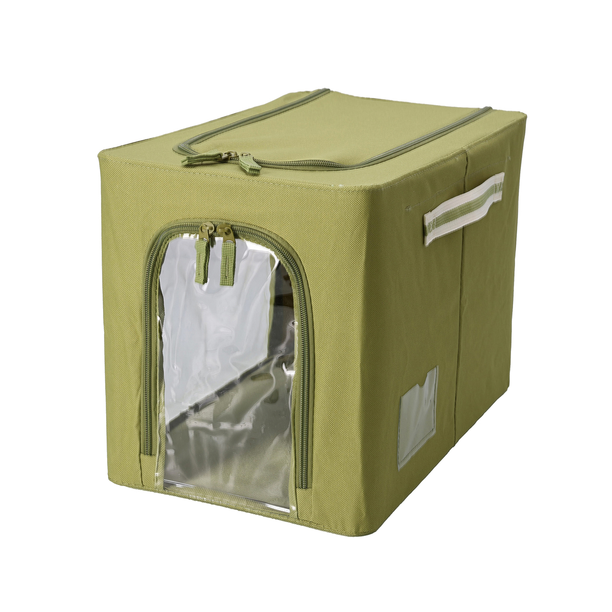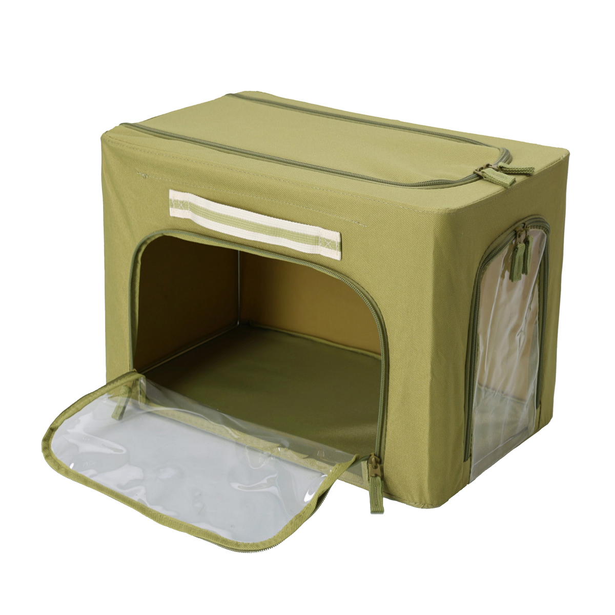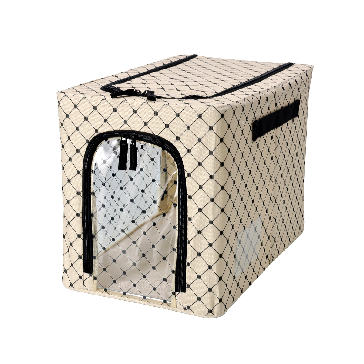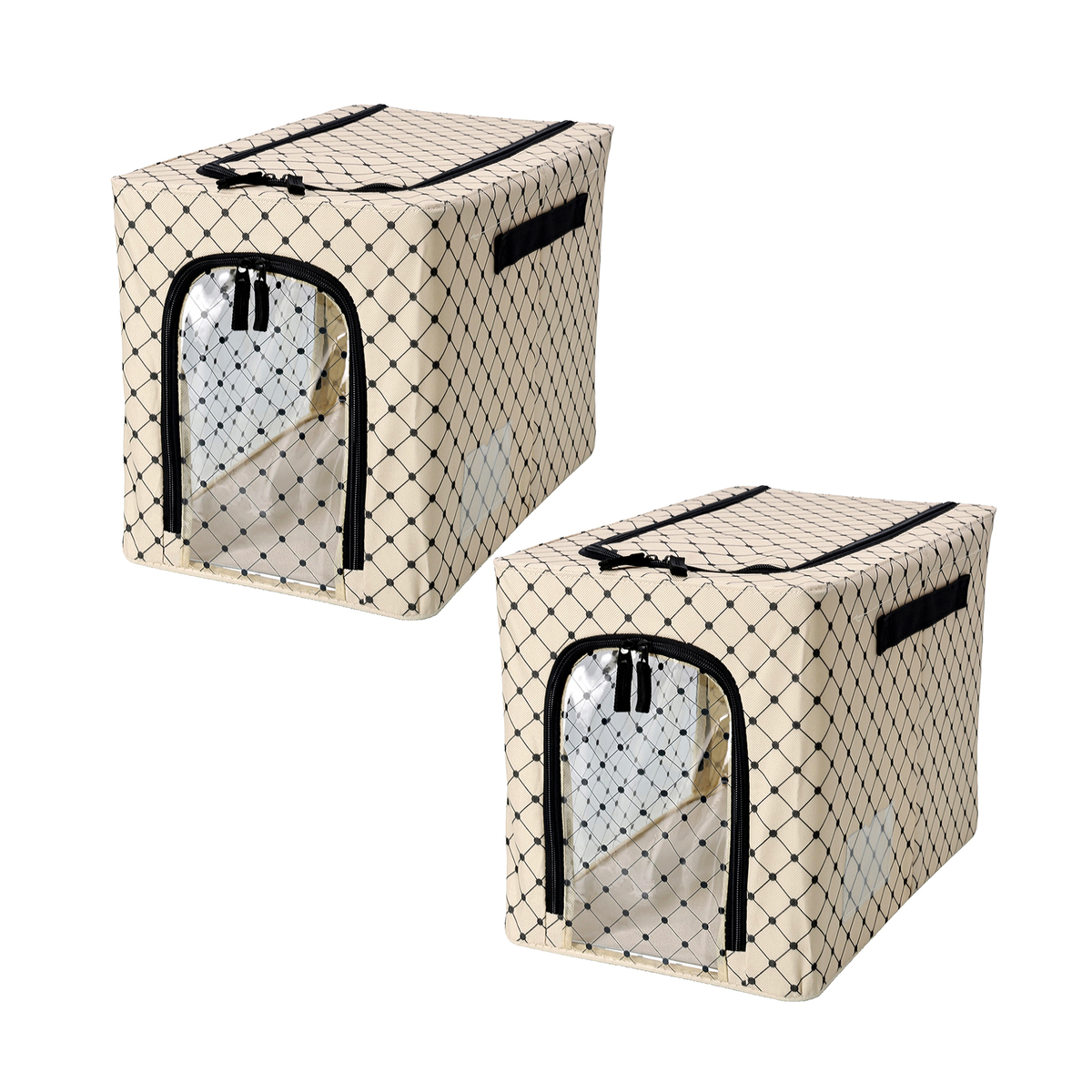 [サイズ] 約 幅24.5×奥行40×高さ28 cm(折り畳み時高さ3cm) [重量] 約 0.75 kg(1個あたり) [材質] 生地:ポリエステル フレーム:スチール(表面加工:クロムめっき) 窓:ポリ塩化ビニル 取っ手:ポリエステル 底面板:MDF(中密度繊維板) [フレーム耐荷重] 約 13 kg ※本製品をスタッキングする場合は角を合わせ、ズレないようにして下さい ※耐荷重量表記は、フレームに対して真下に荷重がかかる条件下によるものです。本製品をスタッキングする場合はご注意下さい ※最下部のボックスにかかる荷重は、フレーム耐荷重量を超えないようにして下さい [使用方法] 1.天面のファスナーを開きます 2.天面を引き上げ、内部が見える状態にします 3.ケースを引き上げます 4.前面と側面を開きます ※ハーフサイズは前面、側面の開閉はできません 5.フレームを開いて固定します 6.前面と側面、天面のファスナーを閉じて完成です [お手入れ] ・水洗いしないで下さい ・汚れた場合は、水で固く絞った布でふき取って下さい。汚れがひどい場合は、中性洗剤を含ませた布でふき取り、水で固く絞った布でふき取り、陰干しして下さい ・漂白剤、ナトリウム、ベンジンおよび他の化学薬品は使用しないで下さい [注意事項] ※破損や事故などを防ぐために、必ずお守り下さい ※本製品は、直射日光が当たる場所や高温または湿気の多い場所で使用しないで下さい ※濡れたものや、刃物類、重量物を収納したり、本製品の上に同製品以外のものを置いたりしないで下さい ※本製品に強い衝撃を与えないで下さい ※開封時は臭いがする場合があります。天気の良い日に1日程度、陰干ししていただくと臭いが和らぎます ※危険ですので、本製品を踏み台として使用しないで下さい ※お子様が本製品で遊ばないように注意して下さい。ケガや破損の恐れがあります ※収納以外の用途に本製品を使用しないで下さい ※組み立て中に指を挟まないように注意して下さい ※広く平らな場所で組み立てて下さい ※組み立て後、ゆるみ、ゆがみなどの異常がないか確認して下さい ■取り扱い説明を充分にご確認の上、ご使用下さい 【中国製】