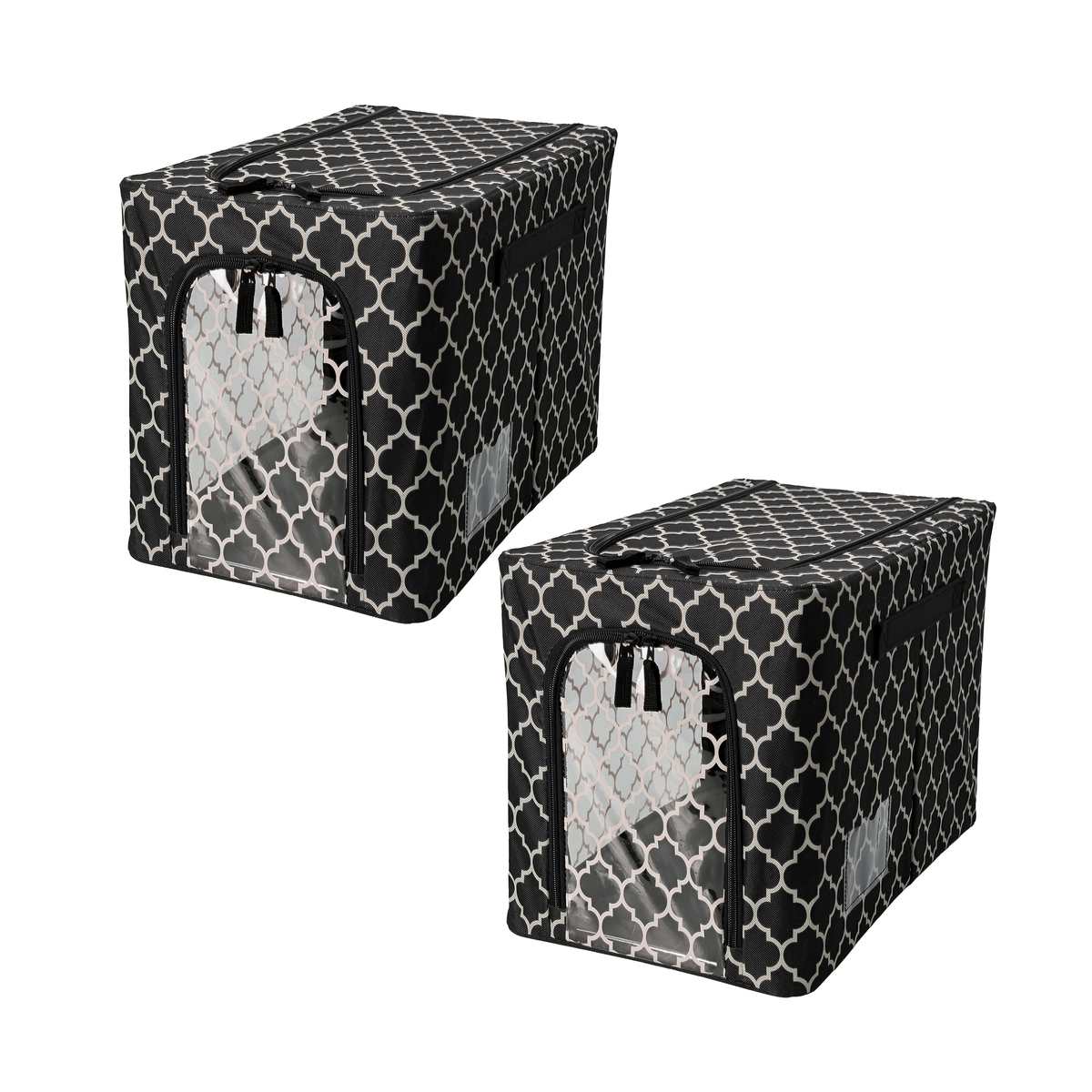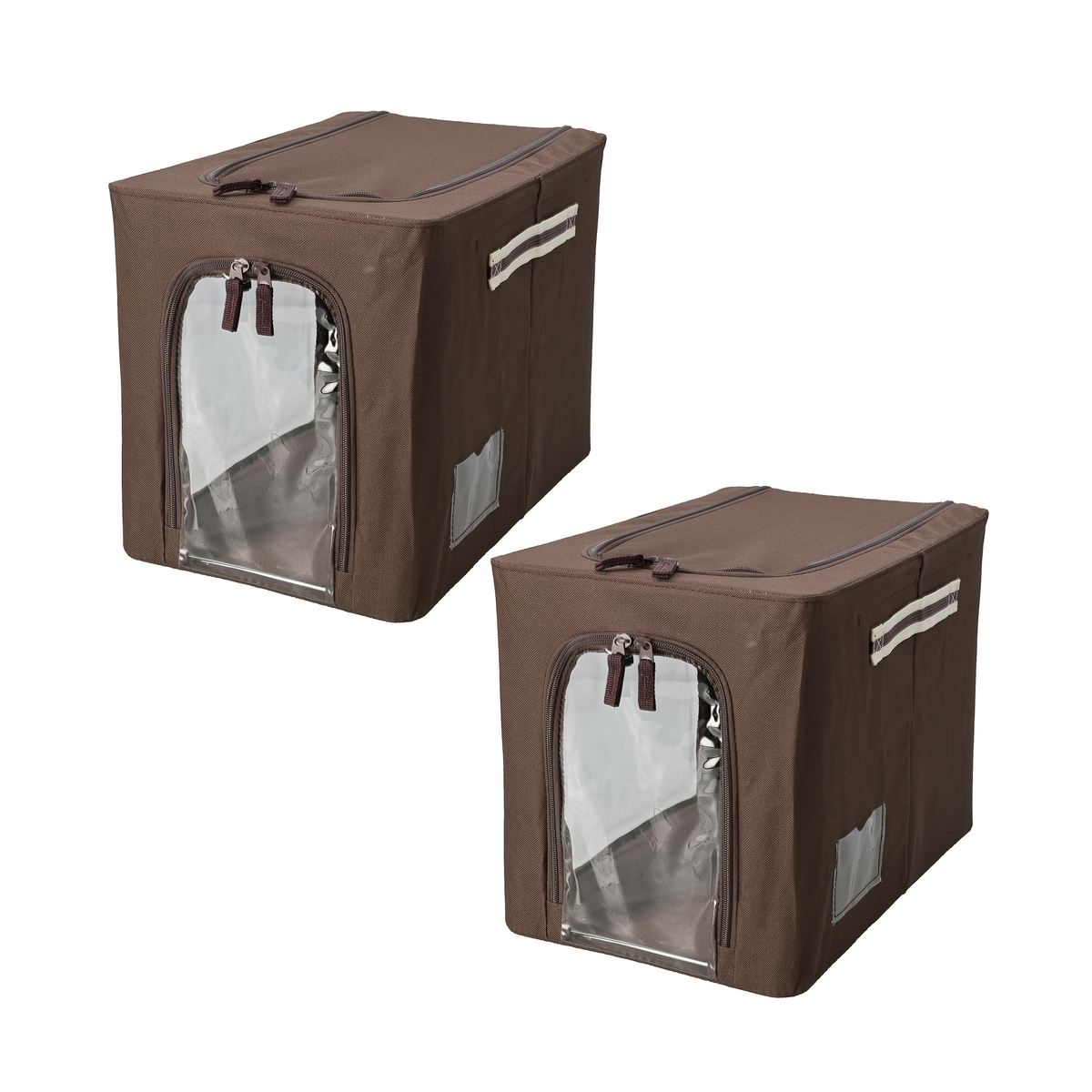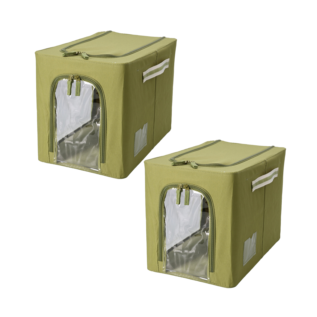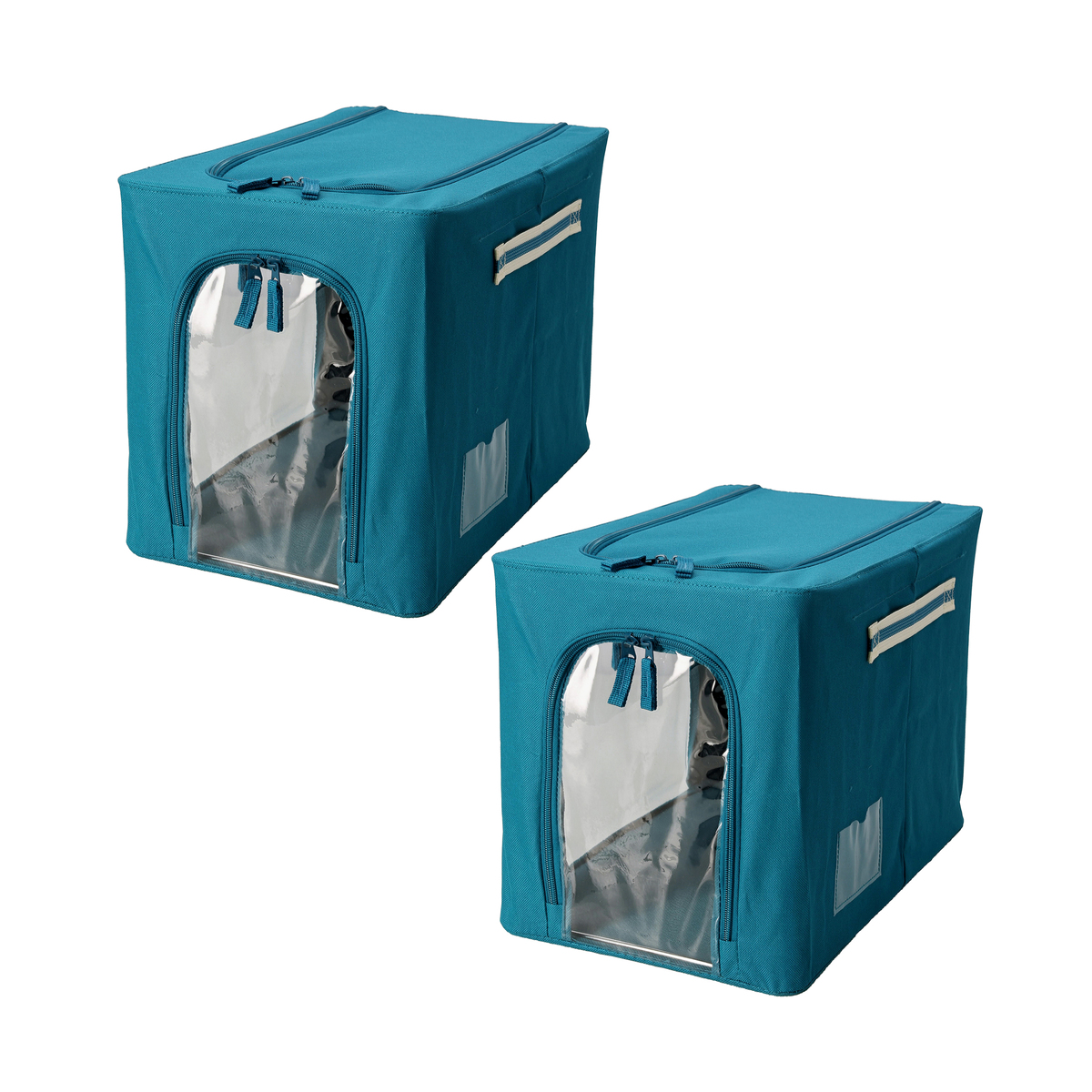 [サイズ] 約 幅24.5×奥行40×高さ28 cm(折り畳み時高さ3cm) [重量] 約 0.75 kg(1個あたり) [材質] 生地:ポリエステル フレーム:スチール(表面加工:クロムめっき) 窓:ポリ塩化ビニル 取っ手:ポリエステル 底面板:MDF(中密度繊維板) [フレーム耐荷重] 約 13 kg ※本製品をスタッキングする場合は角を合わせ、ズレないようにして下さい ※耐荷重量表記は、フレームに対して真下に荷重がかかる条件下によるものです。本製品をスタッキングする場合はご注意下さい ※最下部のボックスにかかる荷重は、フレーム耐荷重量を超えないようにして下さい [使用方法] 1.天面のファスナーを開きます 2.天面を引き上げ、内部が見える状態にします 3.ケースを引き上げます 4.前面と側面を開きます ※ハーフサイズは前面、側面の開閉はできません 5.フレームを開いて固定します 6.前面と側面、天面のファスナーを閉じて完成です [お手入れ] ・水洗いしないで下さい ・汚れた場合は、水で固く絞った布でふき取って下さい。汚れがひどい場合は、中性洗剤を含ませた布でふき取り、水で固く絞った布でふき取り、陰干しして下さい ・漂白剤、ナトリウム、ベンジンおよび他の化学薬品は使用しないで下さい [注意事項] ※破損や事故などを防ぐために、必ずお守り下さい ※本製品は、直射日光が当たる場所や高温または湿気の多い場所で使用しないで下さい ※濡れたものや、刃物類、重量物を収納したり、本製品の上に同製品以外のものを置いたりしないで下さい ※本製品に強い衝撃を与えないで下さい ※開封時は臭いがする場合があります。天気の良い日に1日程度、陰干ししていただくと臭いが和らぎます ※危険ですので、本製品を踏み台として使用しないで下さい ※お子様が本製品で遊ばないように注意して下さい。ケガや破損の恐れがあります ※収納以外の用途に本製品を使用しないで下さい ※組み立て中に指を挟まないように注意して下さい ※広く平らな場所で組み立てて下さい ※組み立て後、ゆるみ、ゆがみなどの異常がないか確認して下さい ■取り扱い説明を充分にご確認の上、ご使用下さい 【中国製】