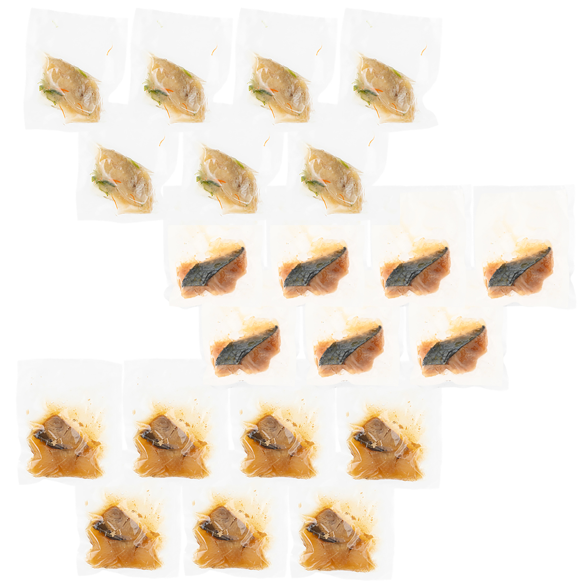 [アレルギー物質特定原材料8品目] 小麦、乳 [商品内容] ・ぶり大根(50g) 7袋 ・アジの南蛮漬(50g) 7袋 ・さわらの煮付け(40g) 7袋 [賞味期限] 出荷時点で賞味期限まで35日以上ある商品をお届けします [保存方法] 開封前:要冷凍(ー18℃以下)で保存してください 開封後:一度解凍された商品は、必ずその日のうちにお召し上がり下さい [お召し上がり方] 自然解凍方法: 冷凍庫から冷蔵庫に移し約7〜8時間で解凍します ※常温での自然解凍は劣化の可能性がございますのでお避け下さい 湯煎方法→おすすめ調理 凍ったまま沸騰したお湯にパックの封を切らずにパックごと入れ、約5分間煮沸させて温めて下さい。お鍋に入れるパック数量によって調理時間は変化します。湯煎で調理することにより、ふっくらとした仕上がりになります [注意事項] ※一度解凍されたものを再び凍らせますと、品質が著しく低下しますのでご遠慮ください ※本品は冷凍品でございます。商品到着後はすみやかに冷凍庫にて保管して頂けますようお願い致します ※湯煎調理後は、製品が大変熱くなっておりますので、取り出しの際には十分ご注意ください ※魚等の形状には固体差がございますのでご了承下さい [原料原産地] ぶり大根:ぶり(国産) アジの南蛮漬:あじ(タイ) さわらの煮付け:さわら(中国) [原産国] 日本 [原材料] ぶり大根: ぶり(国産)、大根、醤油、砂糖、醸造調味料、清酒、風味調味料(かつお)/調味料(アミノ酸等)、着色料(カラメル)、甘味料(甘草)、(一部に小麦・さば・大豆を含む) アジの南蛮漬け: あじ(タイ)、醸造酢、片栗粉、玉葱、砂糖、食用植物油脂、ピーマン、醤油、醸造調味料、食塩、人参、風味調味料(かつお)/調味料(アミノ酸等)、(一部に小麦・乳成分・大豆を含む) さわらの煮付け: さわら(中国)、煮付けの出汁(砂糖、醤油、醸造調味料、清酒、風味調味料(かつお))/糊料(加工澱粉)、調味料(アミノ酸等)、(一部に小麦・さば・大豆を含む)