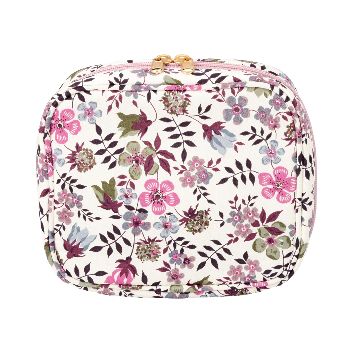 リバティプリントとは、英国リバティ社がデザインするオリジナルファブリックの事。繊細なフラワープリントが有名で、100年以上にわたり世界中の人々から愛され続けています。ご紹介するのは、華やかで優しいリバティプリントのポーチです