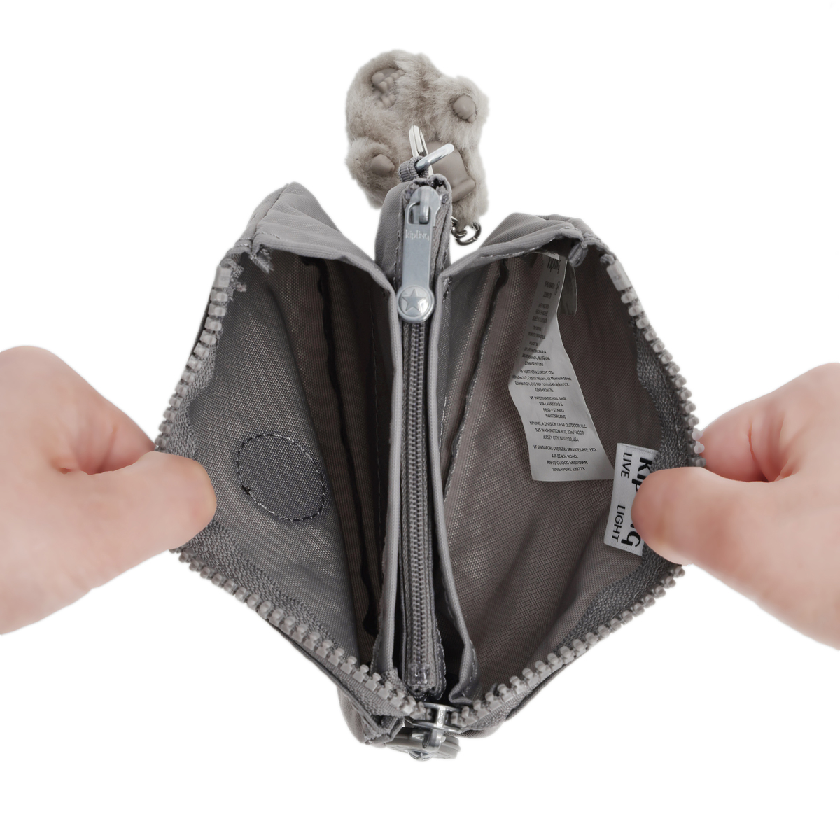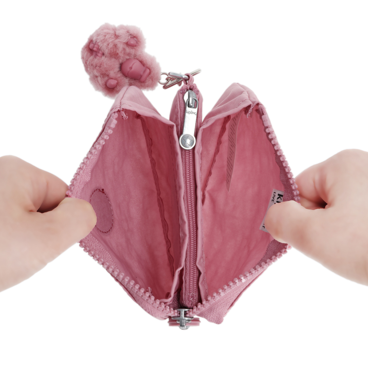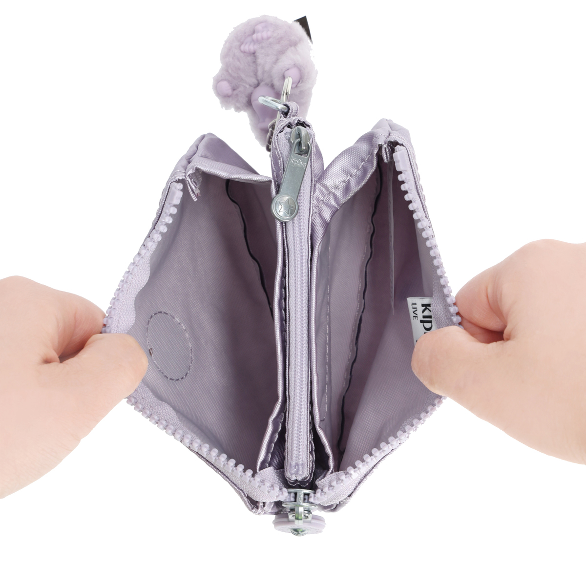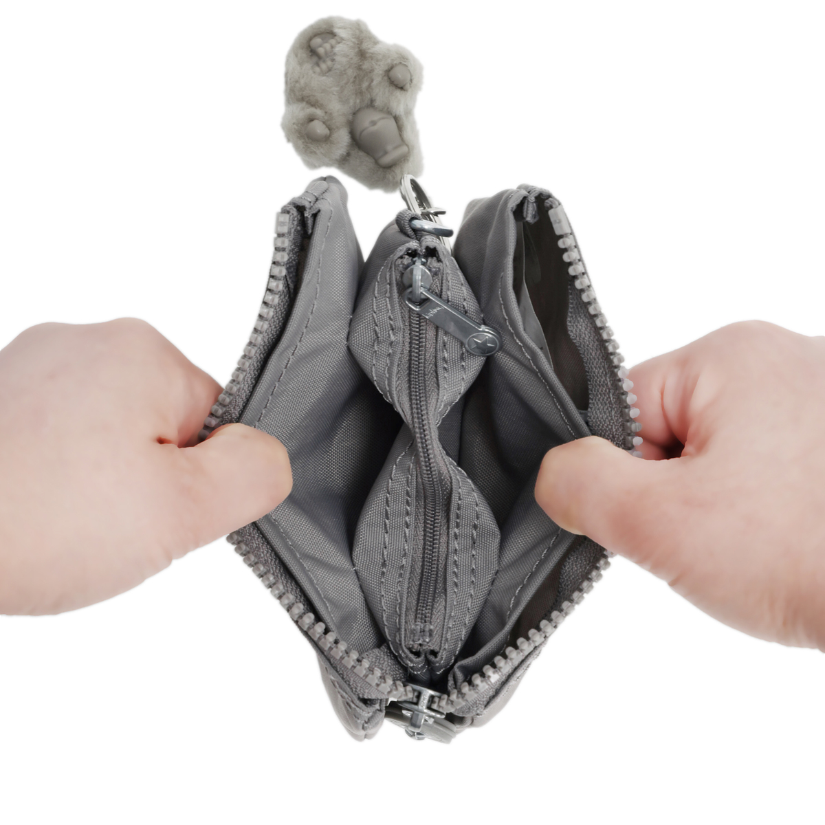 [サイズ(約)] 縦10×横14.5×厚み4cm [重量(約)] 50g(付属品含む) [素材] ダークフェザー:ポリエステル ダークフェザー以外:ナイロン ※裏地無 [仕様] 付属(取り外し可):チャーム×1 開閉:ファスナー式 [ポケット] 内側:仕切り兼用ファスナーポケット×1、オープンポケット×2 外側:無 [注意事項] ※直射日光や蛍光灯の影響で変色する場合がありますのでご了承ください 【コスモピンク以外:インドネシア製、コスモピンク:中国製】