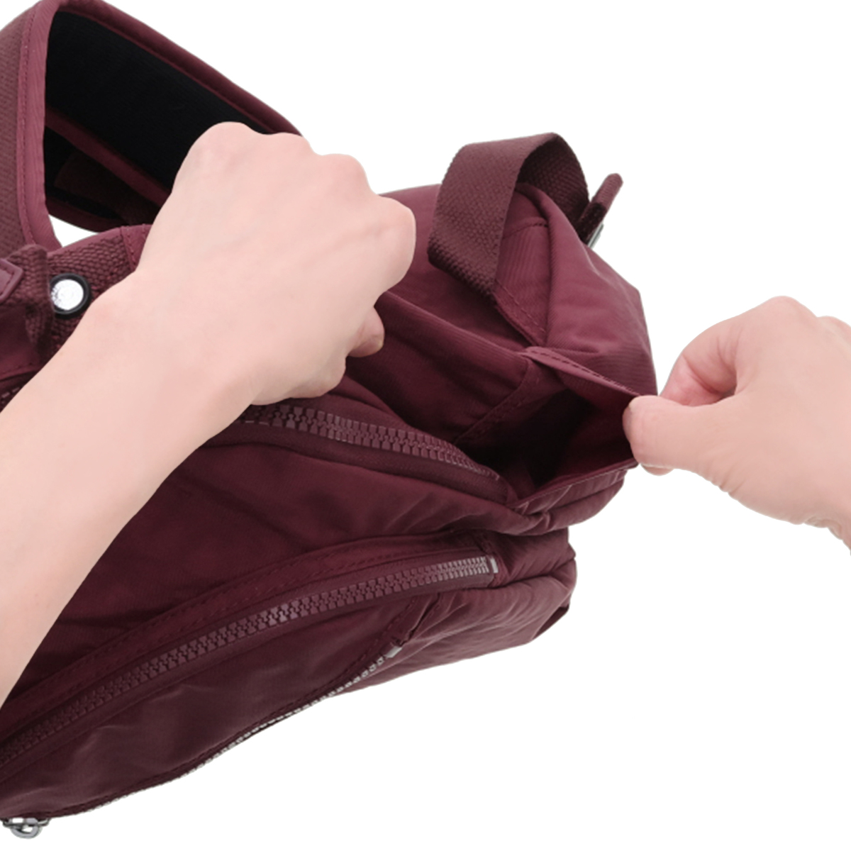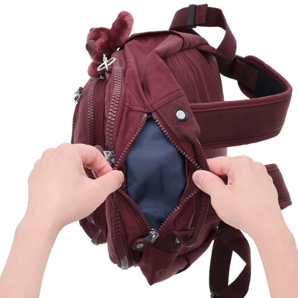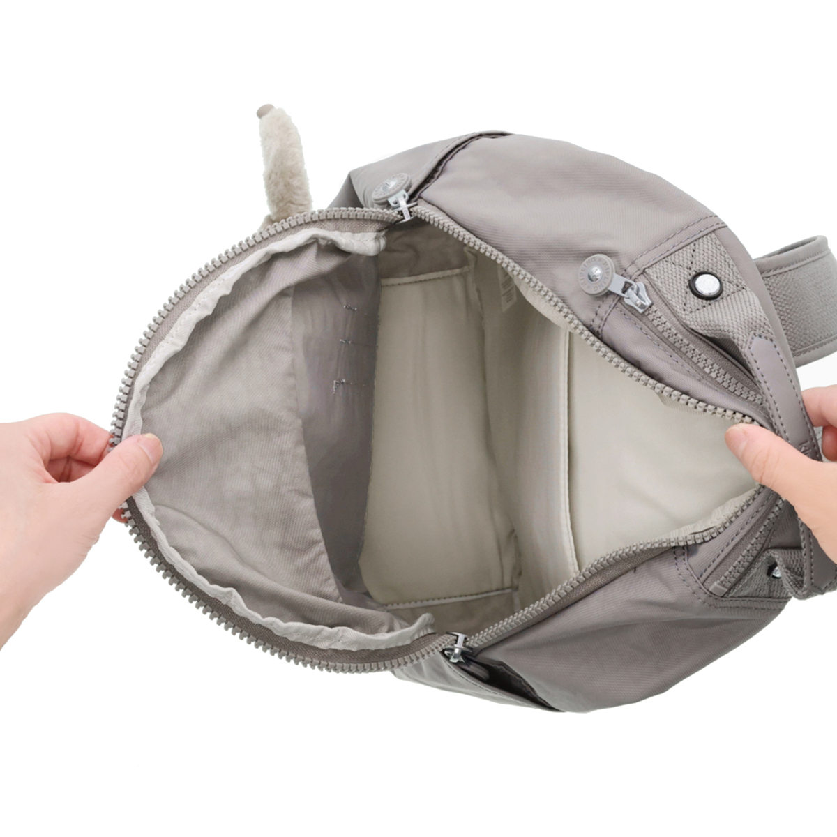 [サイズ(約)] 縦34.5×横28(最大)×マチ14cm ショルダーベルト長さ:42〜84cm ハンドル立ち上り5cm [重量(約)] 460g(付属品含む) [素材] ナイロン ※裏地有 [仕様] 付属(取り外し可):チャーム×1 開閉:ダブルファスナー式 底ビョウ:無 [ポケット] <内側> オープンポケット×1(クッション入り) <外側> 前面:ファスナーポケット×2(内1つにオープンポケット×1、ペン挿し×2) 天面:ファスナーポケット×1 側面:オープンポケット×2 [注意事項] ※直射日光や蛍光灯の影響で変色する場合がありますのでご了承ください 【ラウンジワイン以外:バングラデシュ製、ラウンジワイン:中国製】