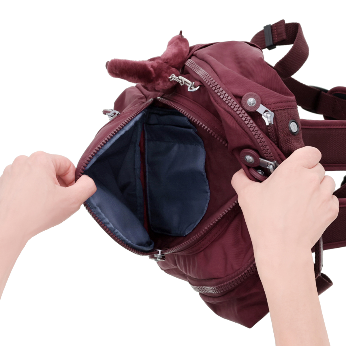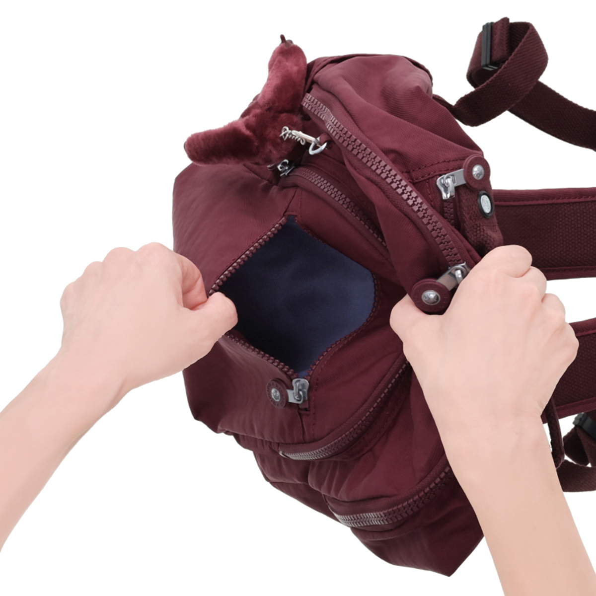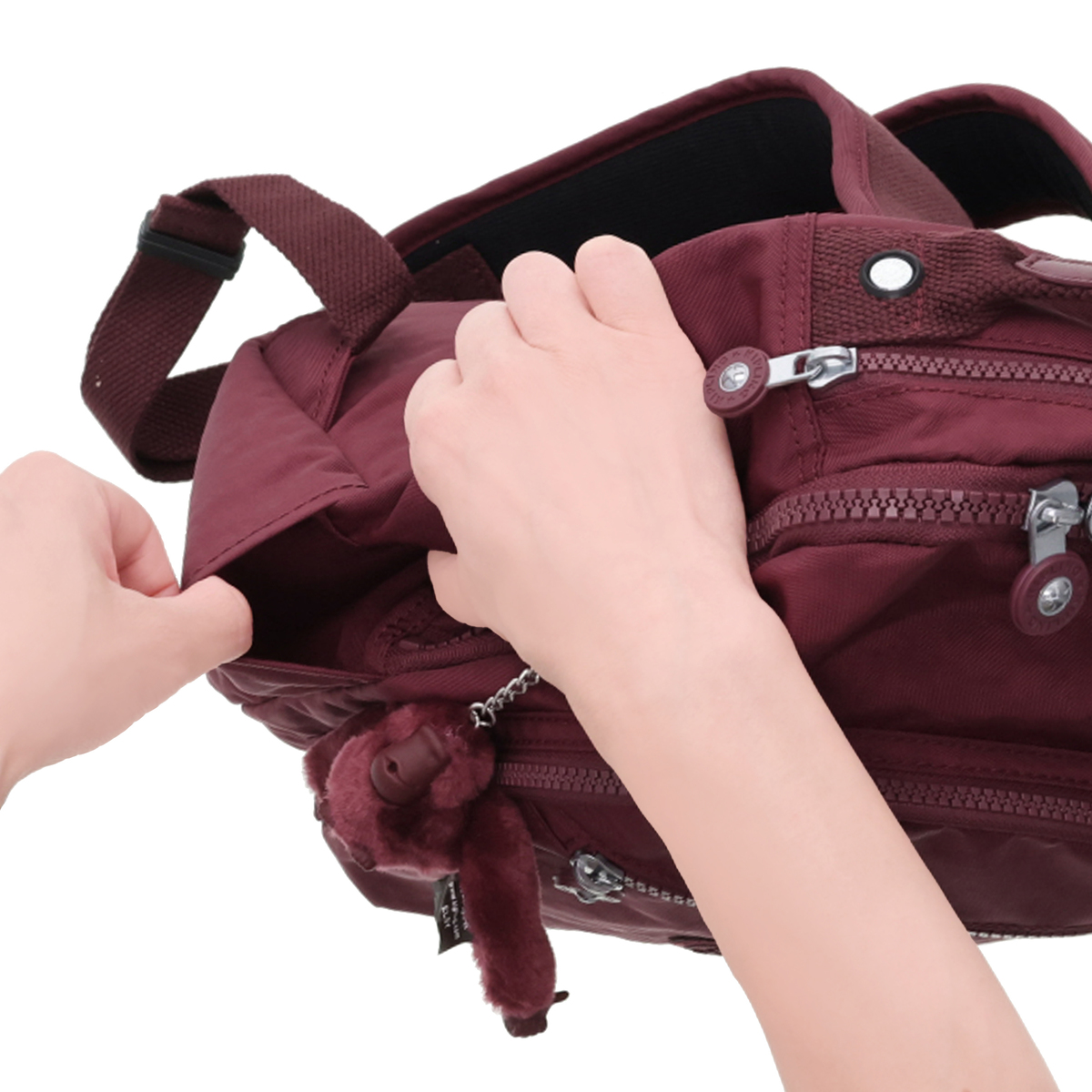 [サイズ(約)] 縦34.5×横28(最大)×マチ14cm ショルダーベルト長さ:42〜84cm ハンドル立ち上り5cm [重量(約)] 460g(付属品含む) [素材] ナイロン ※裏地有 [仕様] 付属(取り外し可):チャーム×1 開閉:ダブルファスナー式 底ビョウ:無 [ポケット] <内側> オープンポケット×1(クッション入り) <外側> 前面:ファスナーポケット×2(内1つにオープンポケット×1、ペン挿し×2) 天面:ファスナーポケット×1 側面:オープンポケット×2 [注意事項] ※直射日光や蛍光灯の影響で変色する場合がありますのでご了承ください 【ラウンジワイン以外:バングラデシュ製、ラウンジワイン:中国製】