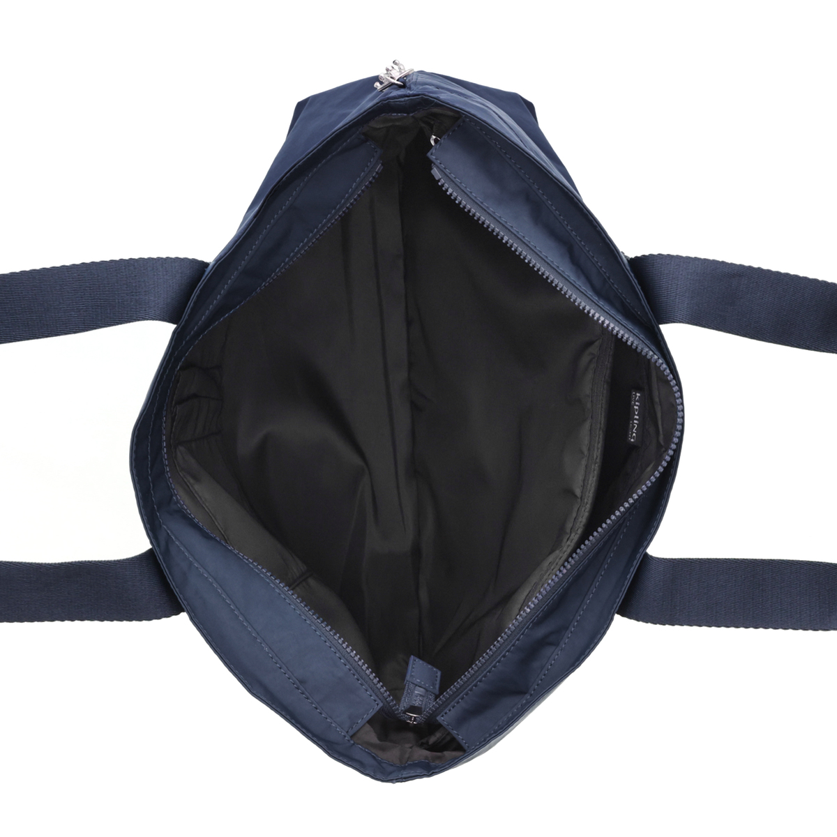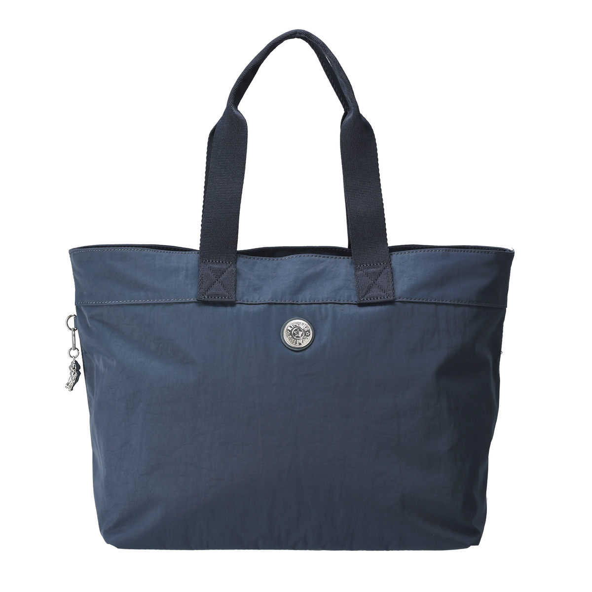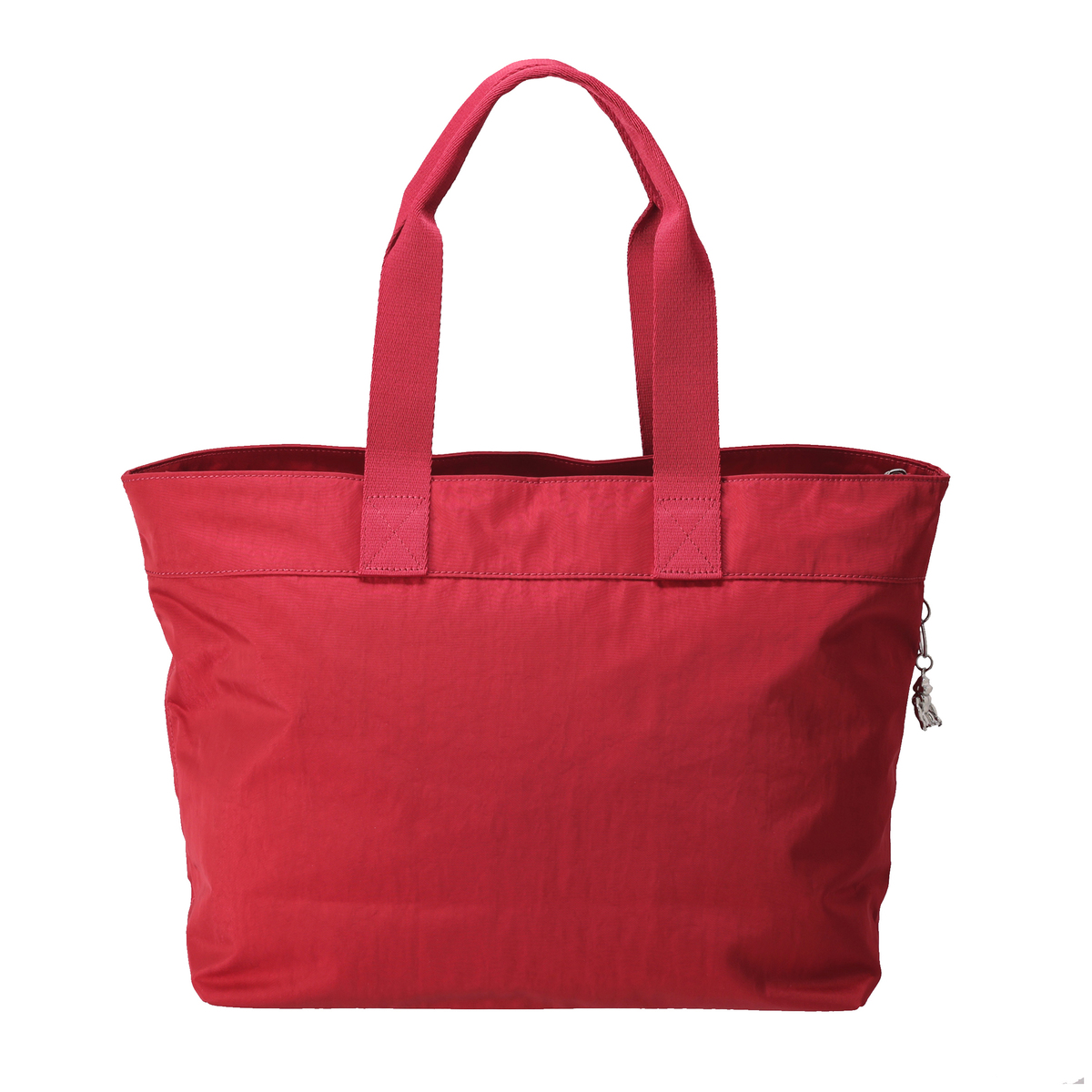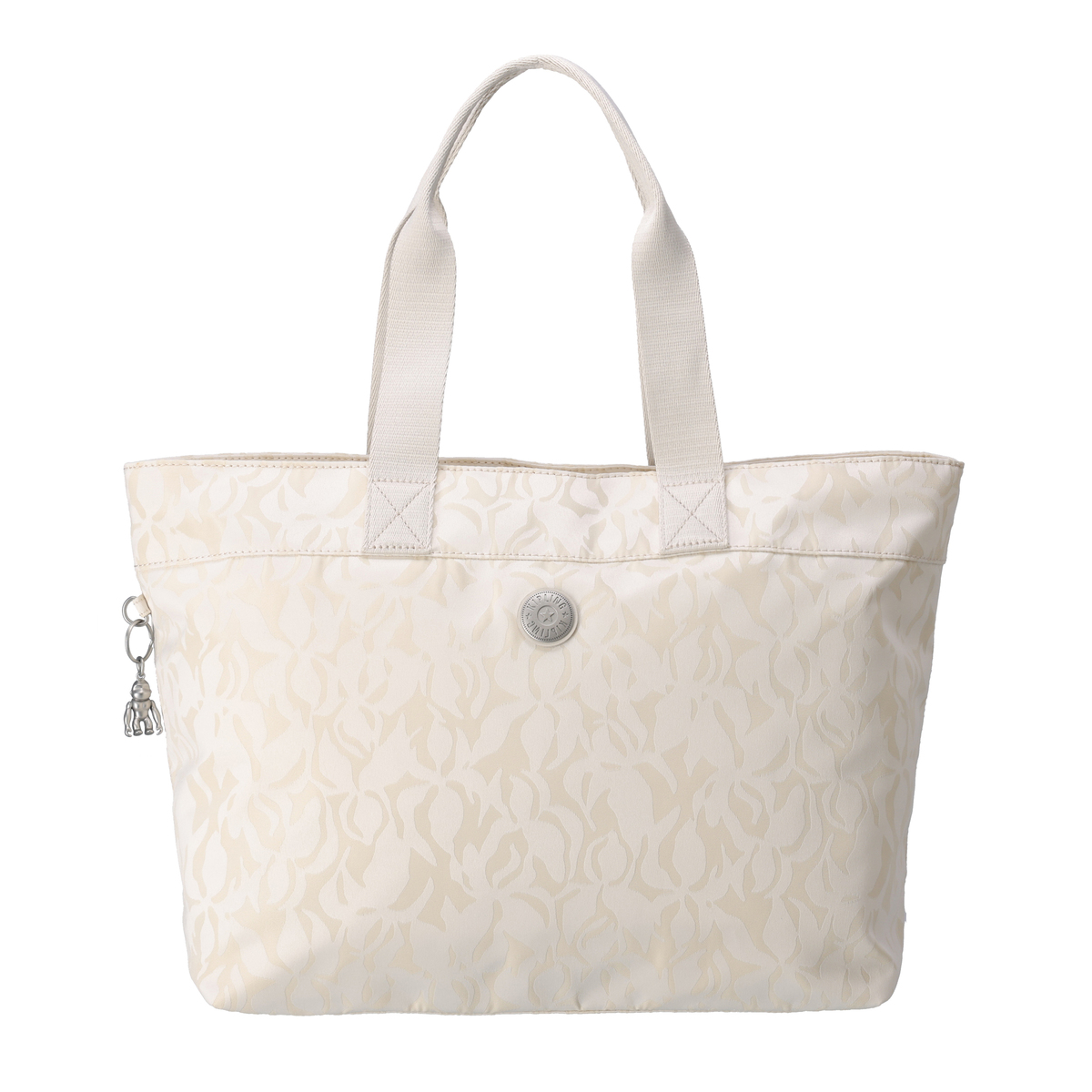 シンプルなスクエアシルエットで、大きめのトートバッグ。ハンドル立ち上がりに余裕があり、肩下げも可能です。キプリングの持つ機能性はそのままに、光沢のある生地にメタルパーツを組合せた、特別感のあるコレクションです