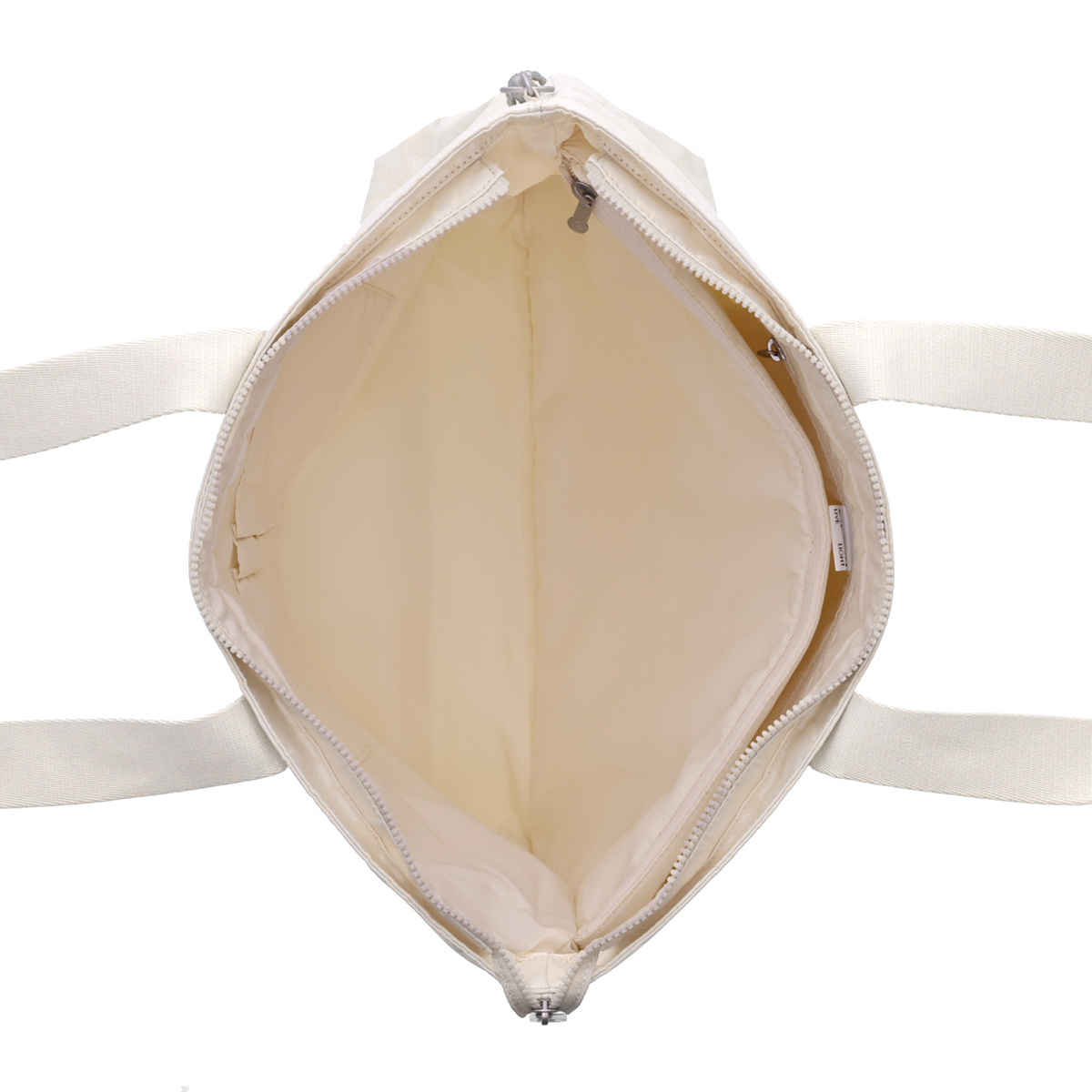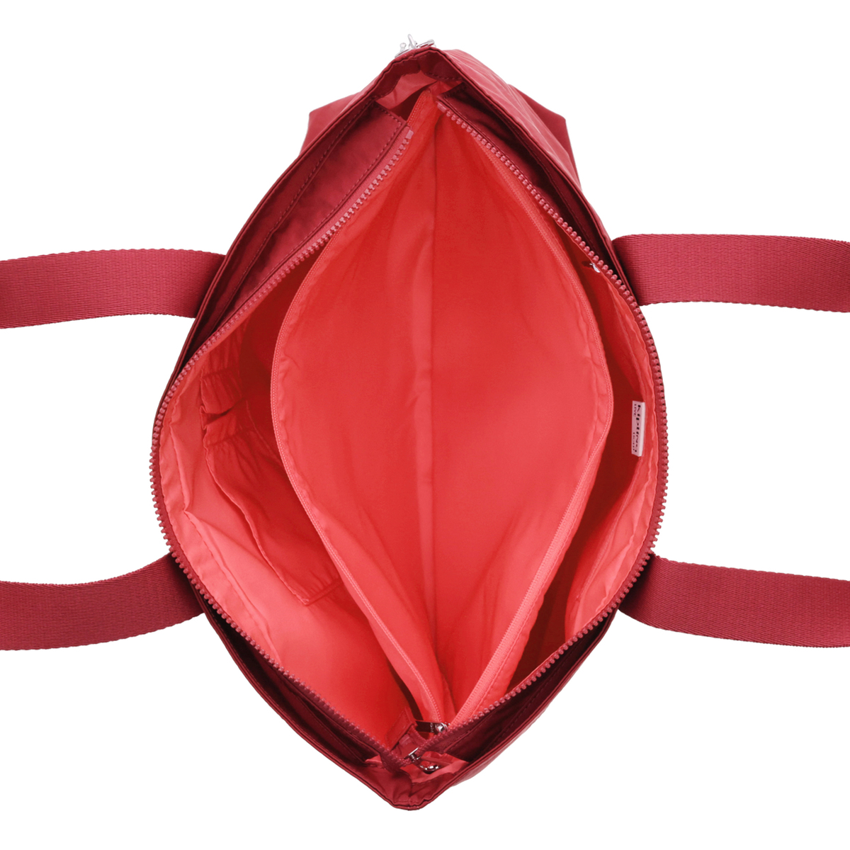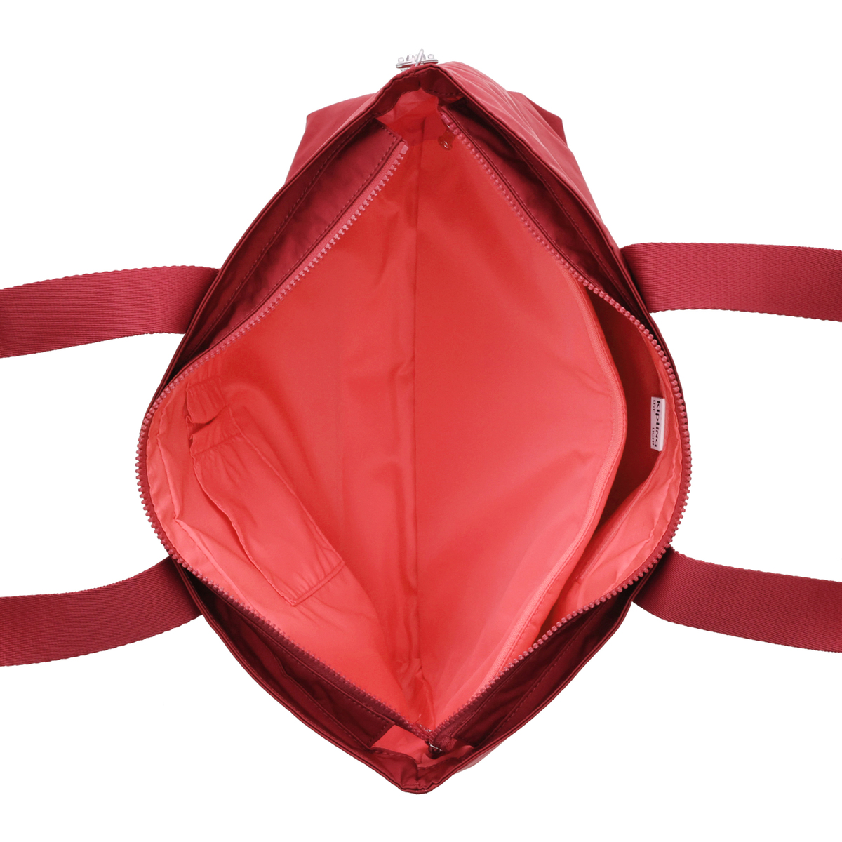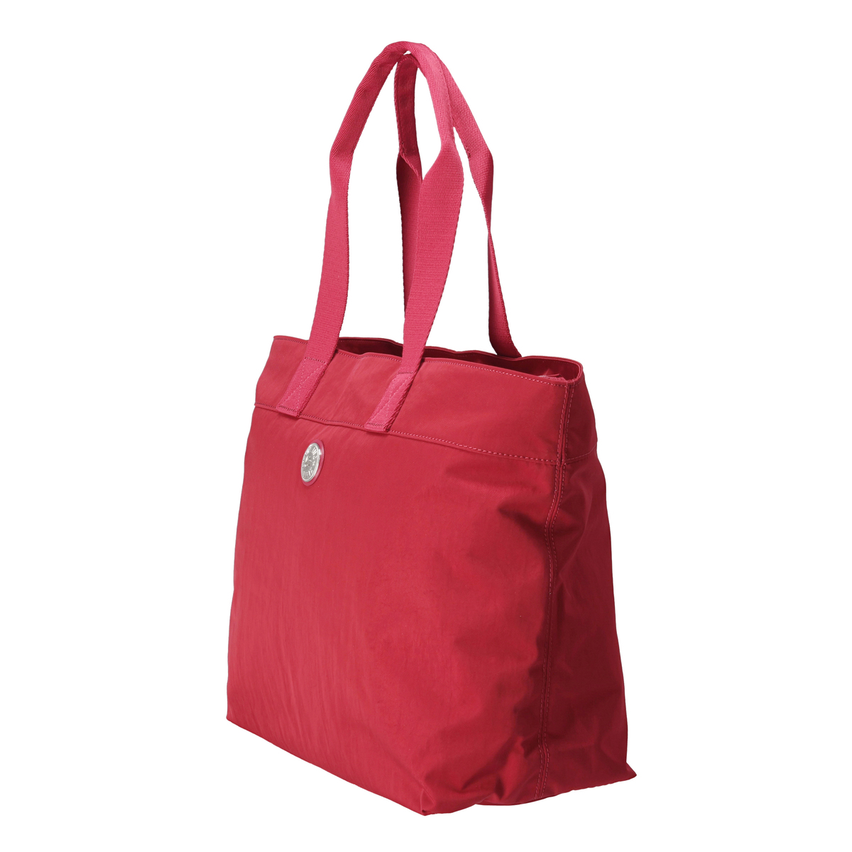 シンプルなスクエアシルエットで、大きめのトートバッグ。ハンドル立ち上がりに余裕があり、肩下げも可能です。キプリングの持つ機能性はそのままに、光沢のある生地にメタルパーツを組合せた、特別感のあるコレクションです