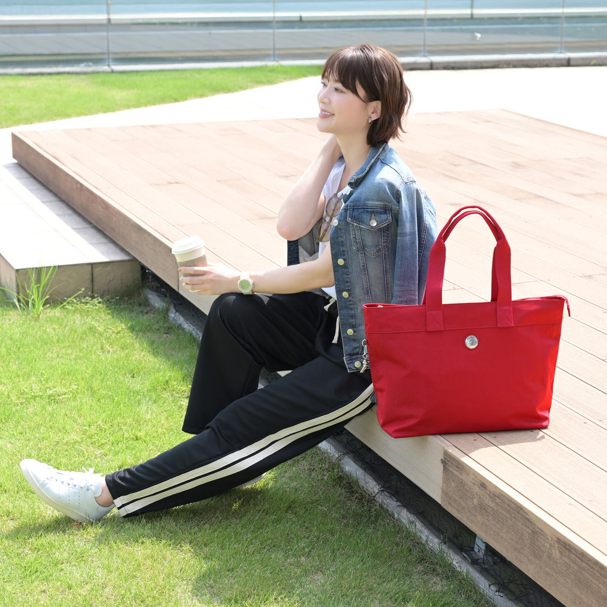 [サイズ(約)] 縦32×横50×マチ15cm ハンドル立ち上がり:23cm [重量(約)] 430g(付属品含む) [素材] サインノワール、パームベージュ:ポリエステル エンドレスブルー、レッドワイン:ナイロン ※裏地有 [仕様] 付属(取り外し可):チャーム×1 開閉:ファスナー式 底ビョウ:無 [ポケット] 内側:仕切り兼ファスナーポケット×1、オープンポケット×2、ファスナーポケット×1、ペン挿し×2、キーフック×1 外側:無 [注意事項] ※直射日光や蛍光灯の影響で変色する場合がありますのでご了承ください 【サインノワール、エンドレスブルー:中国製、レッドワイン:カンボジア製、パームベージュ:インドネシア製】