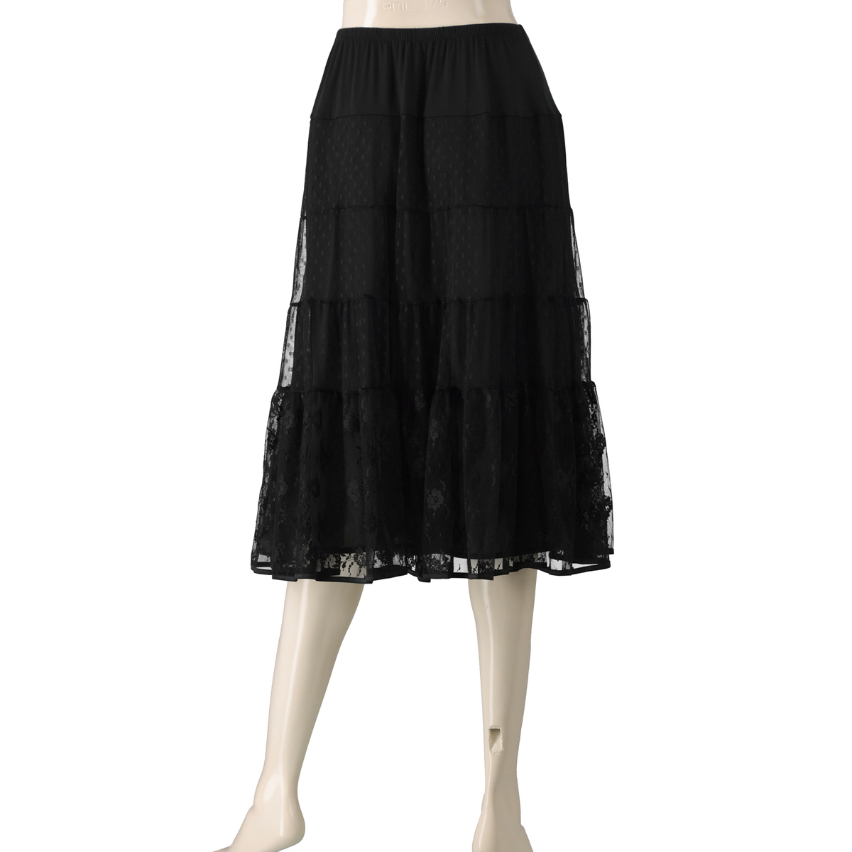 [商品寸法(ヌード)cm] サイズ ウエスト S〜LL:(58〜85) [素材] 表地:レーヨン95% ポリウレタン5% レース部分:ナイロン100% 裏地 :ポリエステル100% [お手入れ] 洗濯機洗い可 [注意事項] ※濃色商品は、染色の性質上、洗濯すると色落ちする事があります。淡色や白物と組み合わせての着用や洗濯はお避け下さい ※長時間濡れたままで放置しないで下さい。淡色製品には蛍光増白剤入り洗剤を使用しないで下さい ※洗濯により多少縮むことがあります。洗濯の際は商品を裏返した上、クリーニングネットをご使用下さい ※手絞りの場合は弱く、脱水は短時間で行って下さい ※素材の特性上、毛羽立ち、毛玉が生じることがあります ※繊細なレースを使用している為、引っ掛かりなどには十分ご注意下さい 【中国製】