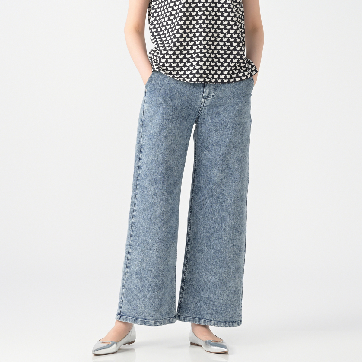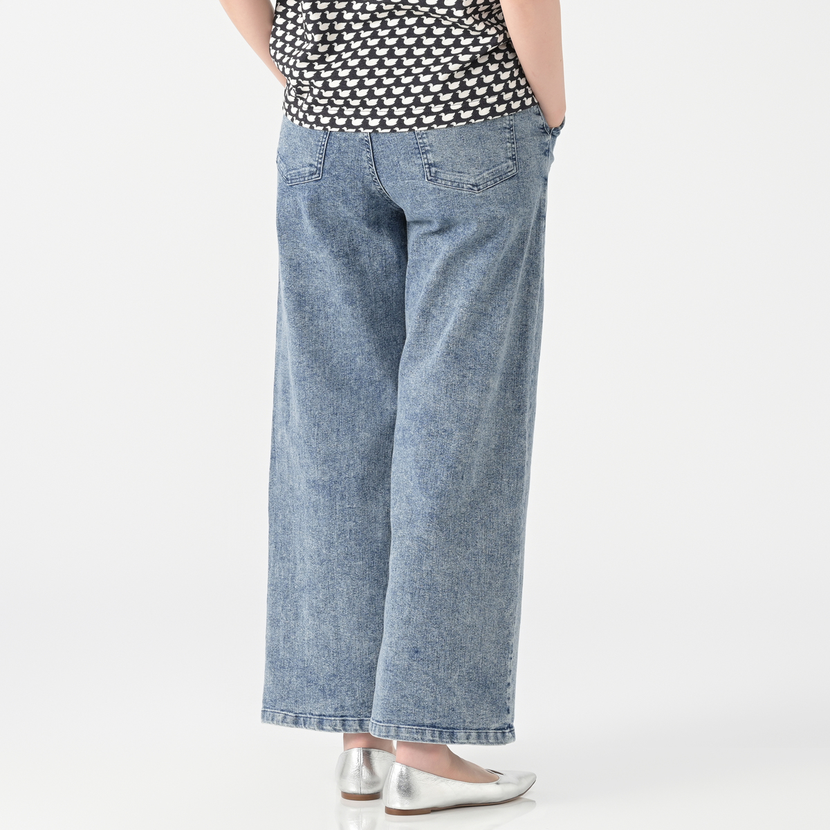 ケミカルウォッシュの絶妙な色落ちが特徴のデニムワイドパンツ。キレイめシルエットでラフすぎず、カジュアルにもきれいめにも着回せる1本です