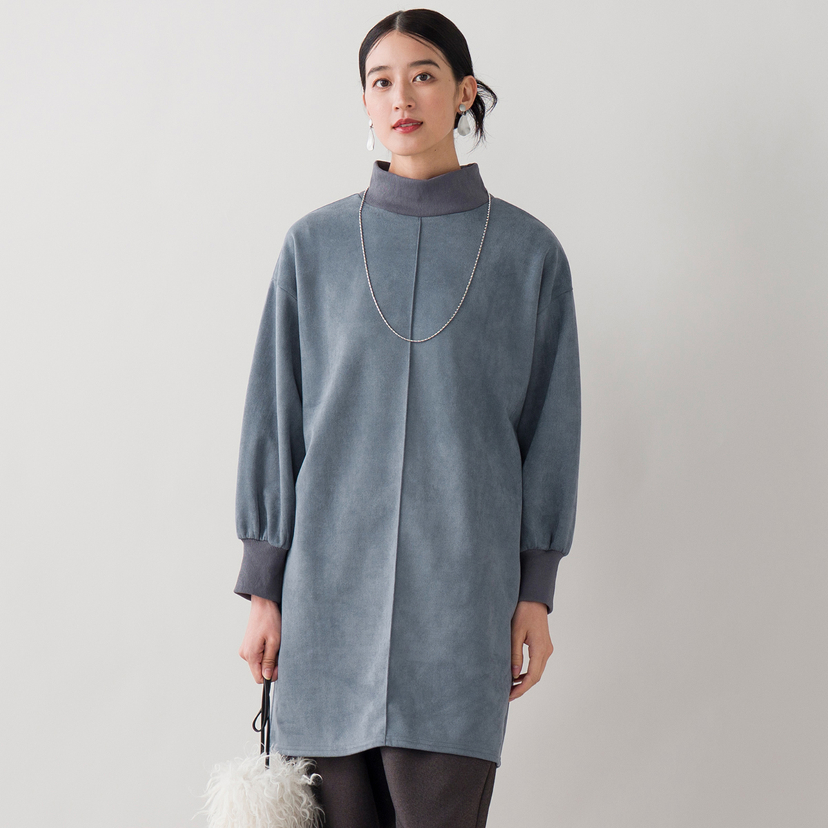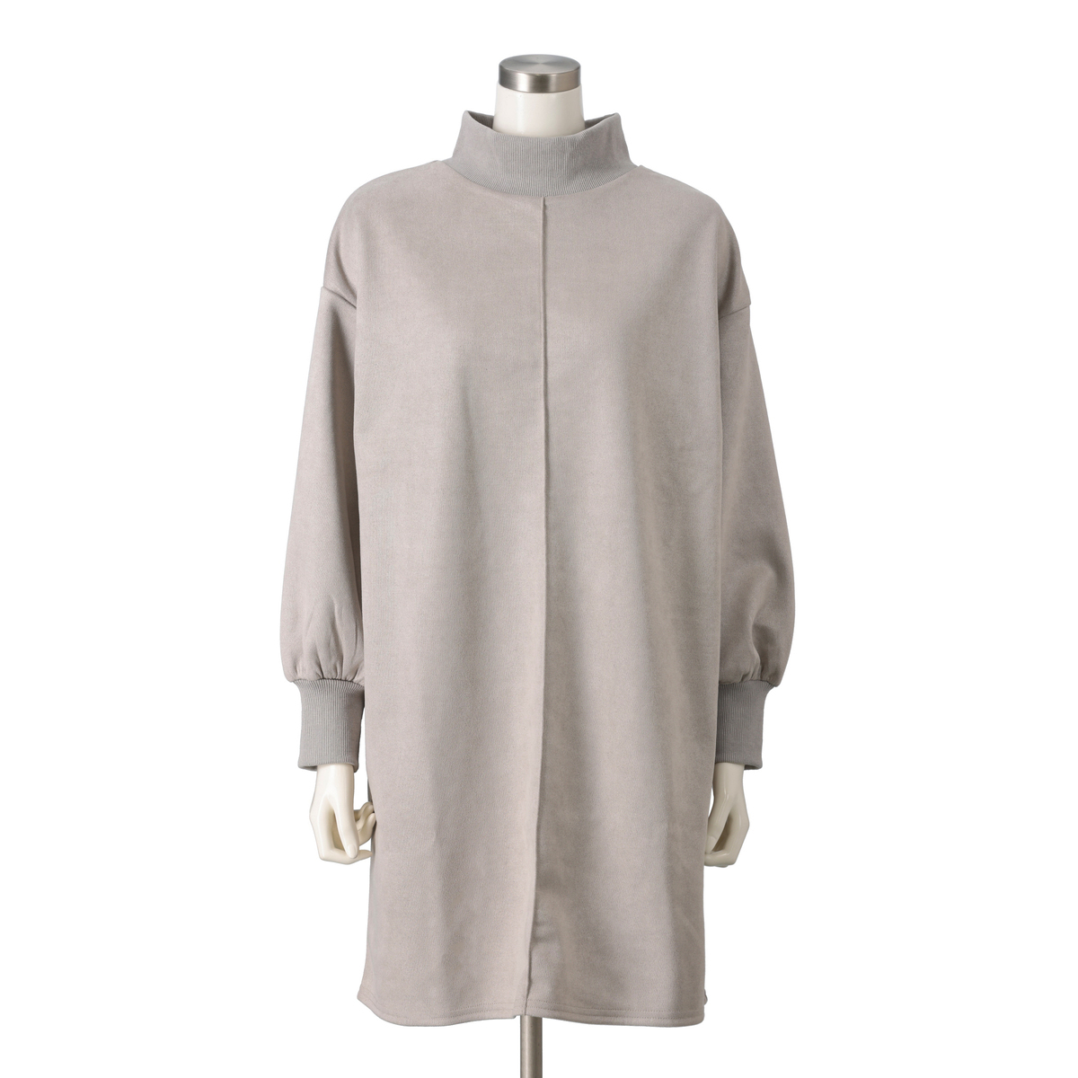 微起毛感のあるスエードタッチのハイテンションジャージー素材を使用したロングチュニック。暖かみがあり、ゆったりとしたボクシーシルエットでラクな着心地です