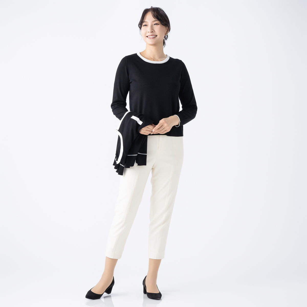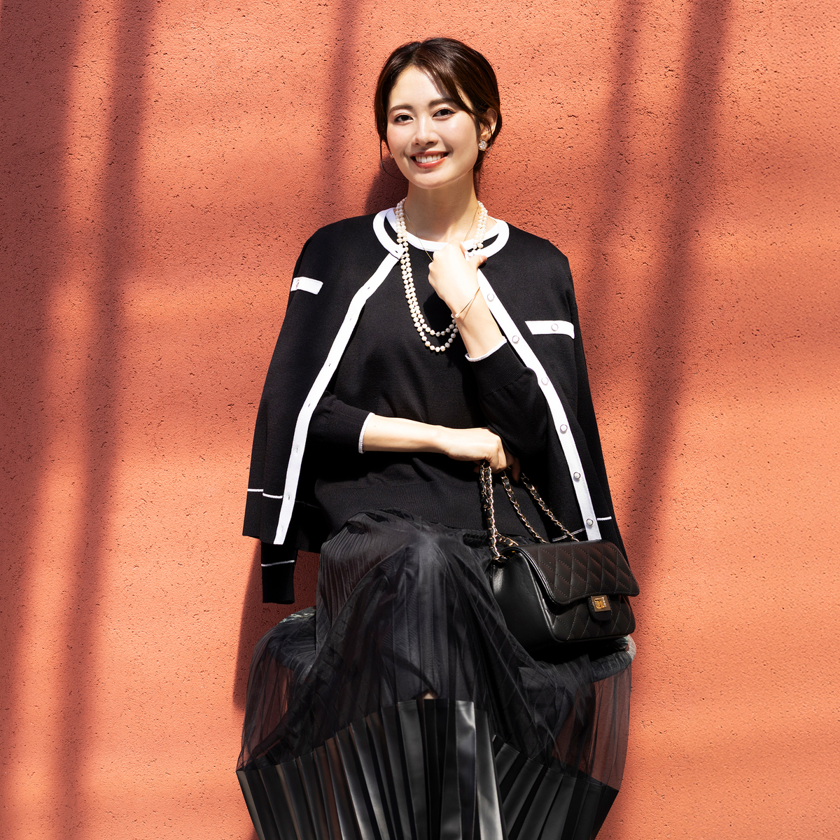 シンプルなデザインで様々なスタイリングに合わせやすく、フェミニンな品のあるコーディネートが完成。アンサンブルではもちろん、それぞれ単品でも活躍し、着回しの幅が広がります